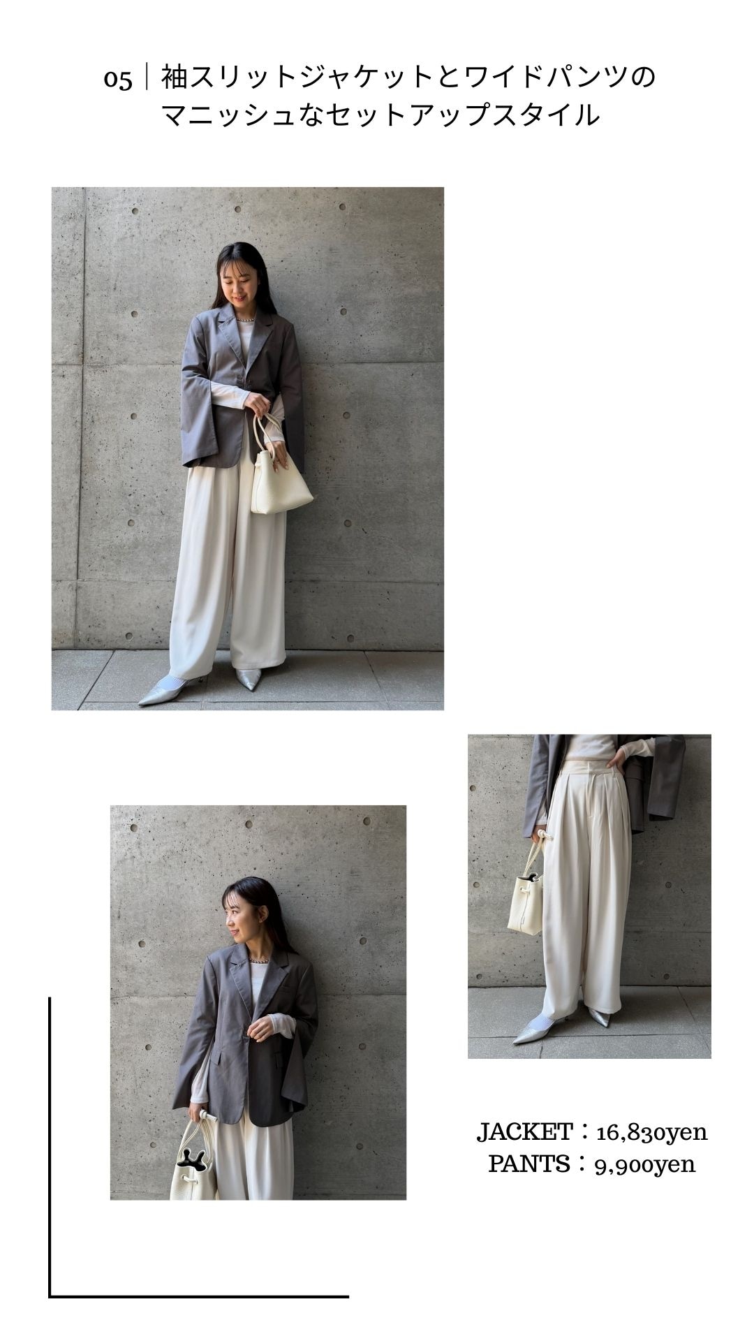 一着持っていると幅広いシーンで頼れる、タイムレスなオケージョンコーデです。