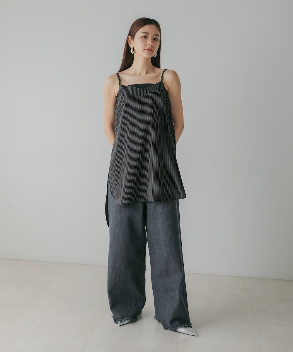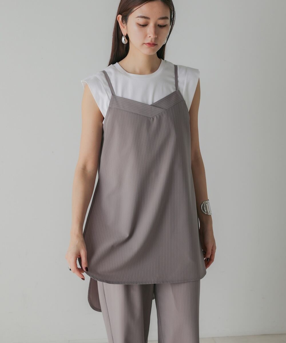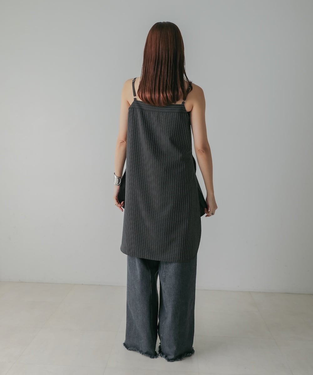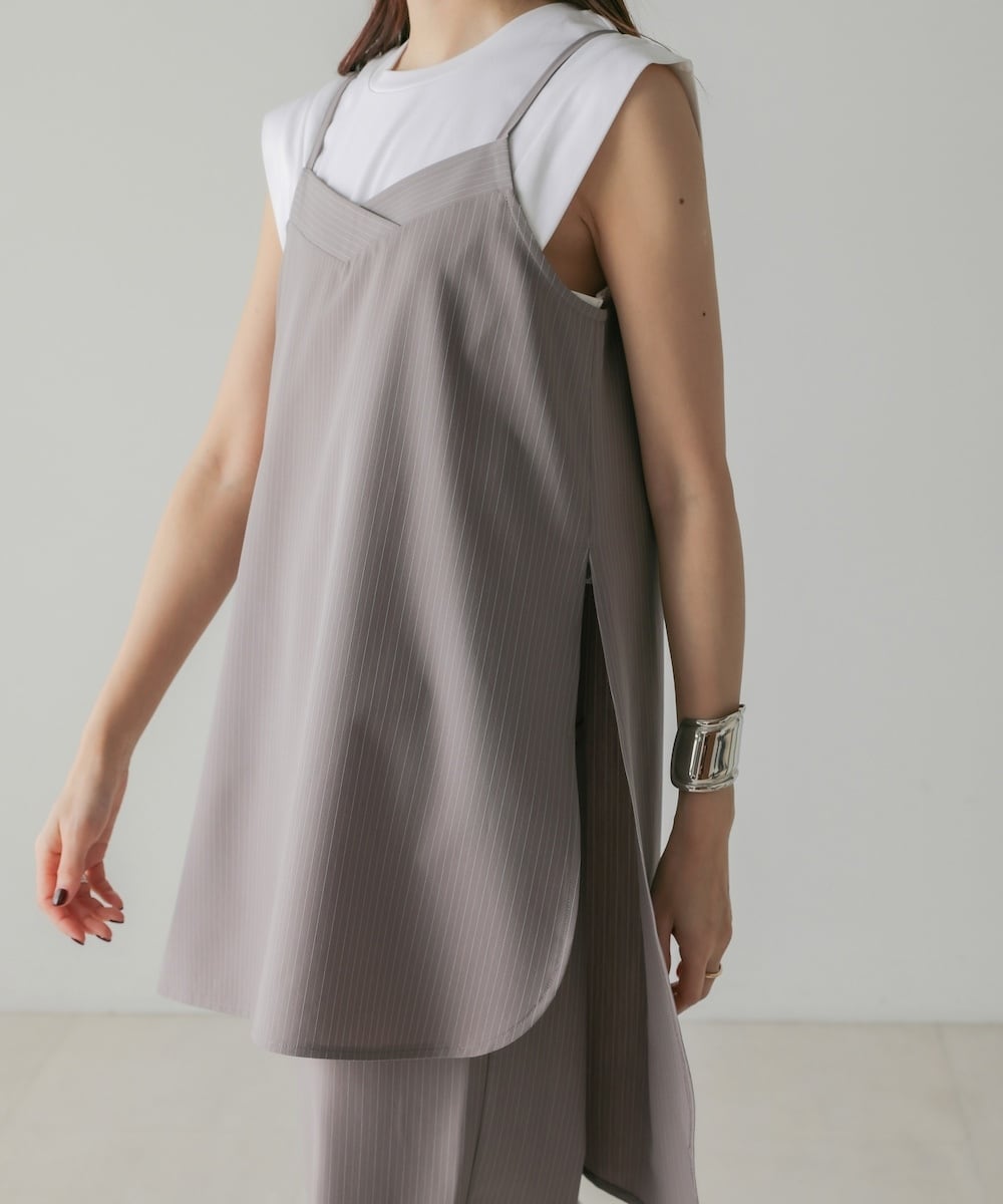 トレンド感のあるレイヤードスタイルを作り上げるキャミチュニック。細身のストライプ柄で上品な印象に仕上げたアイテムです。ストラップはアジャスタブル仕様なので、真夏は一枚でも着用可能。深めのサイドスリットが印象的な一枚です。