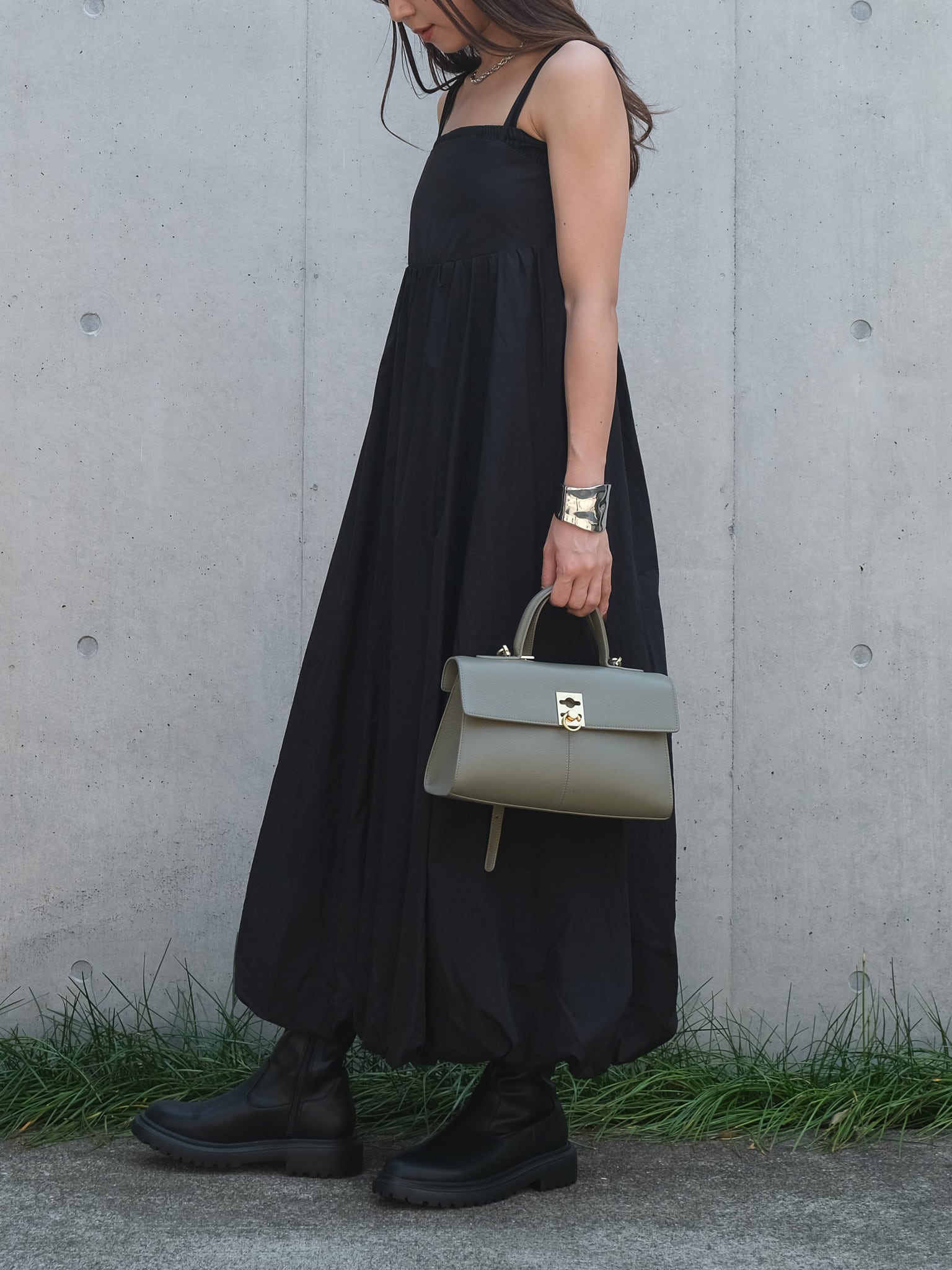 ベーシックなキャミソールの形にバルーンシルエットを取り入れた、トレンド感ある着映えワンピース。適度に落ち感のあるナイロン素材が甘さを抑え、大人っぽい印象になります。フェミニンすぎずカジュアルに着られるのが嬉しいポイントです。軽やかで薄手のため暑い季節にも快適です。