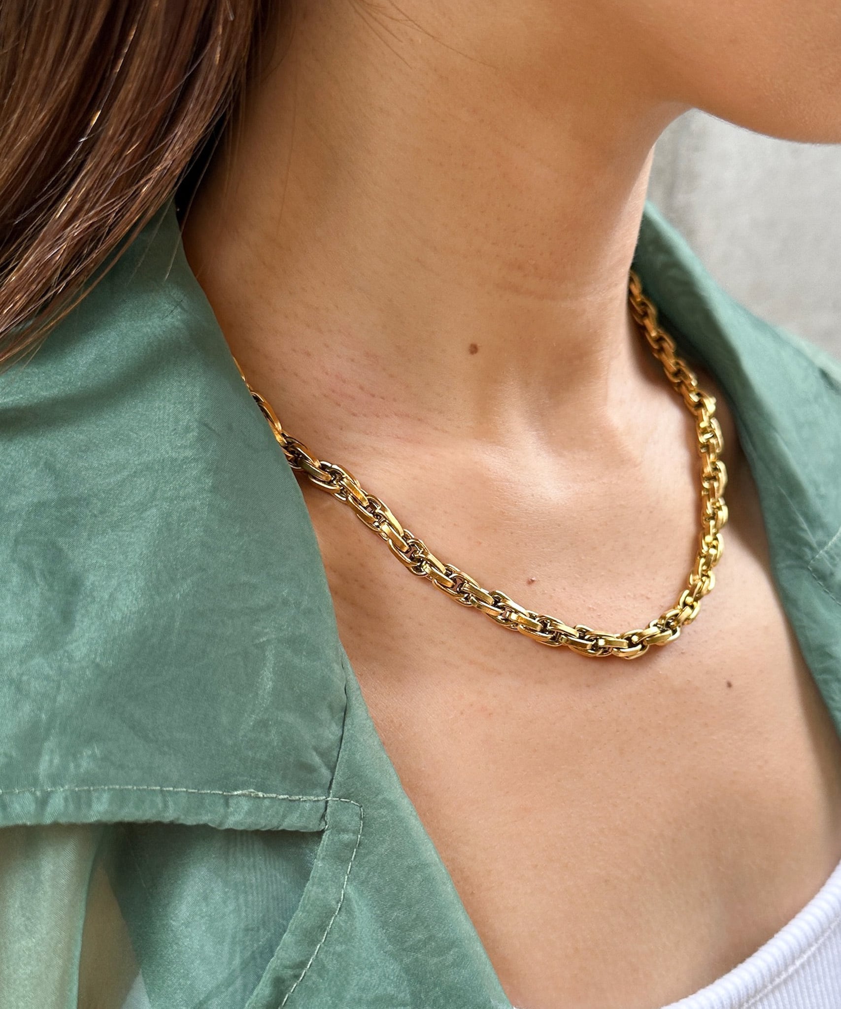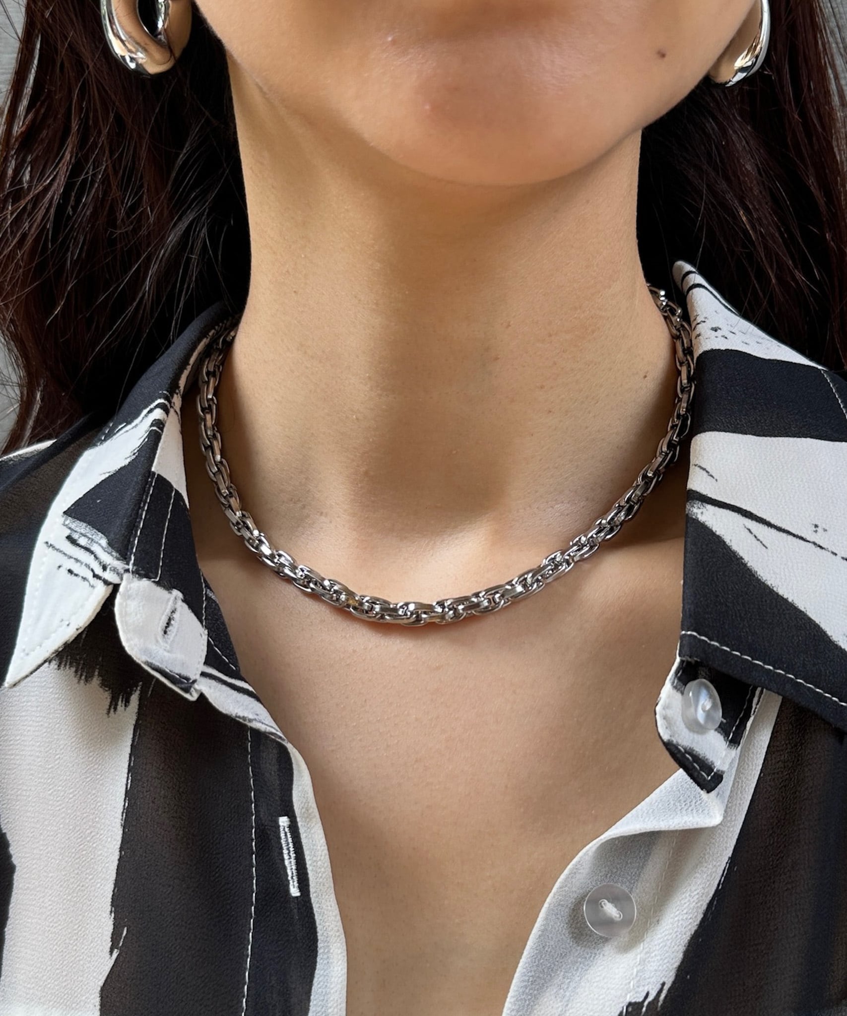 トレンドライクな太めのチェーンネックレスが登場。シンプルながらも存在感があり、普段の着こなしにプラスするだけでアクセントに。どんなスタイリングにも取り入れやすい為、幅広くお使いいただけます。