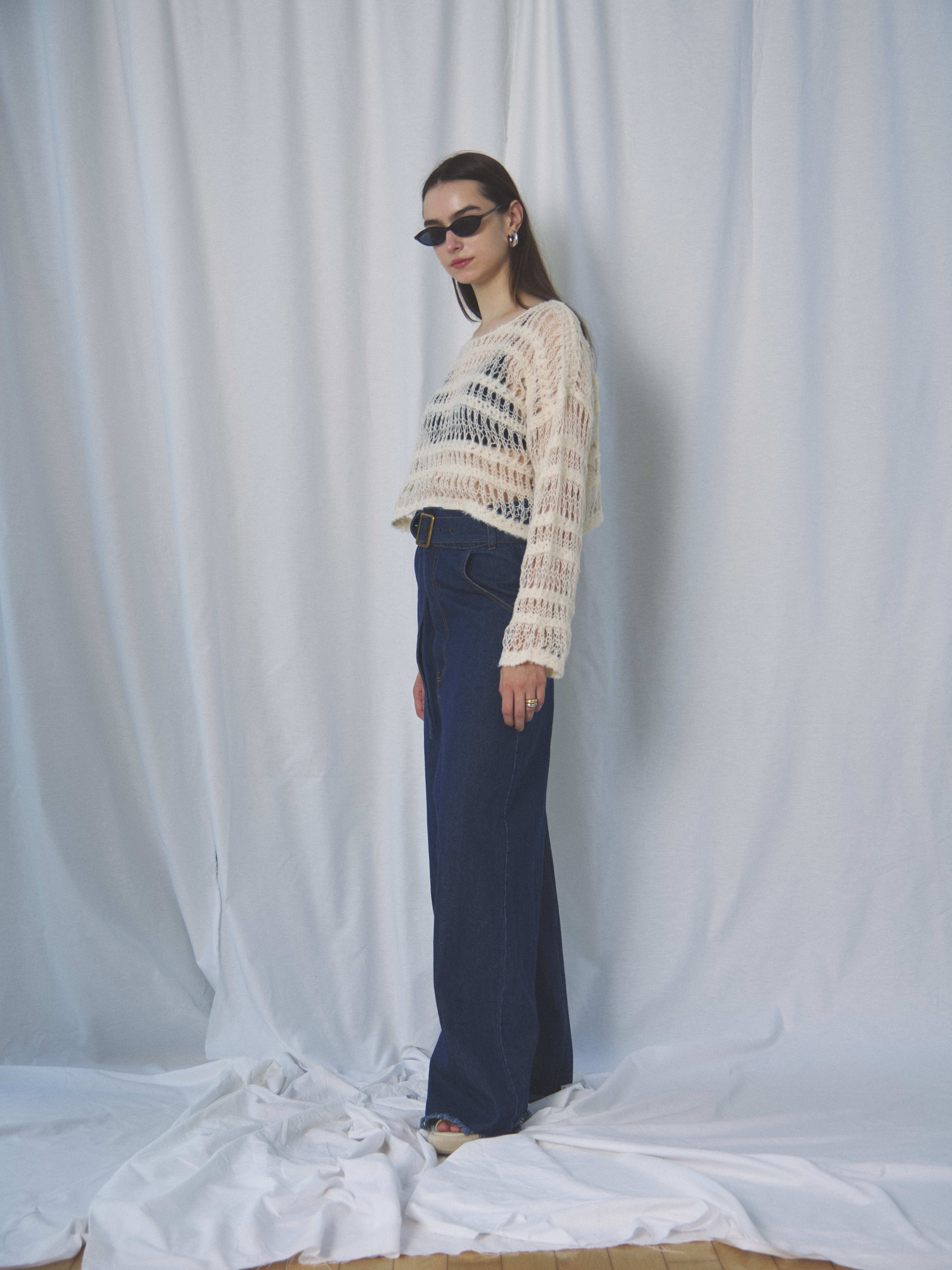 抜け感のあるメッシュ編みニット。ざっくりとした網目のクロップド丈で、こなれ感があり足長効果満載。インナー次第でロングシーズンお楽しみいただける為、季節の変わり目にもぴったりなアイテムです。