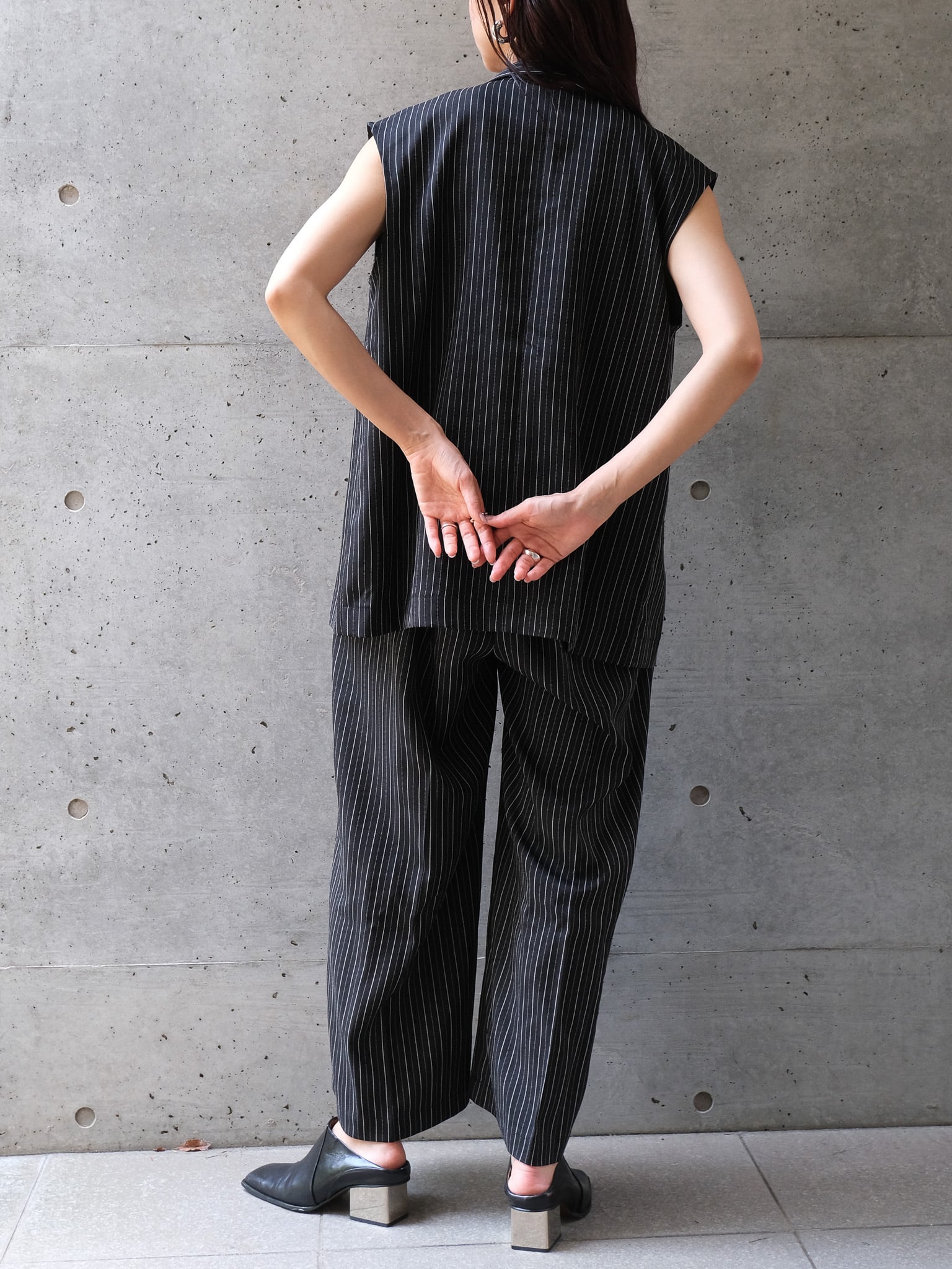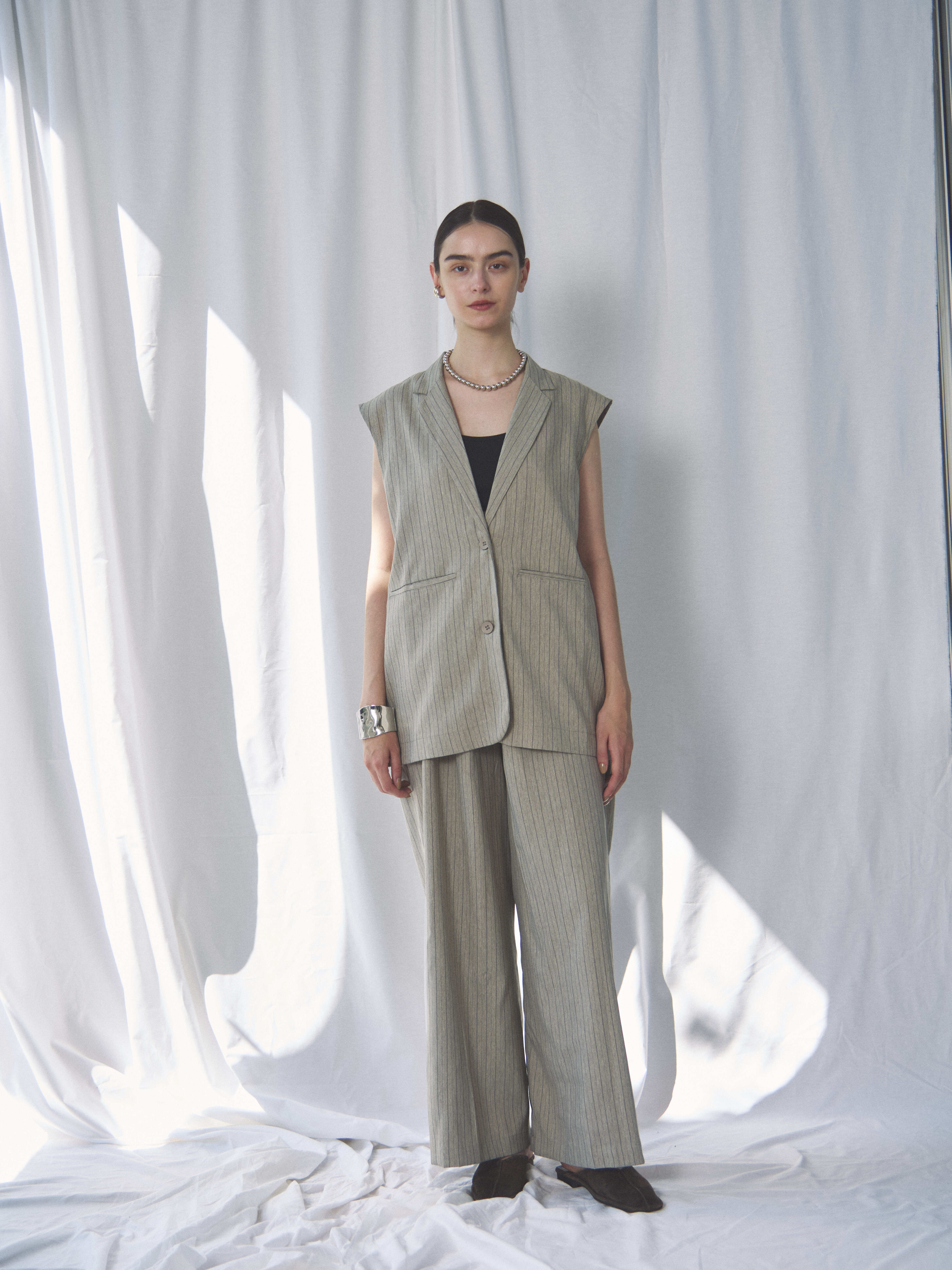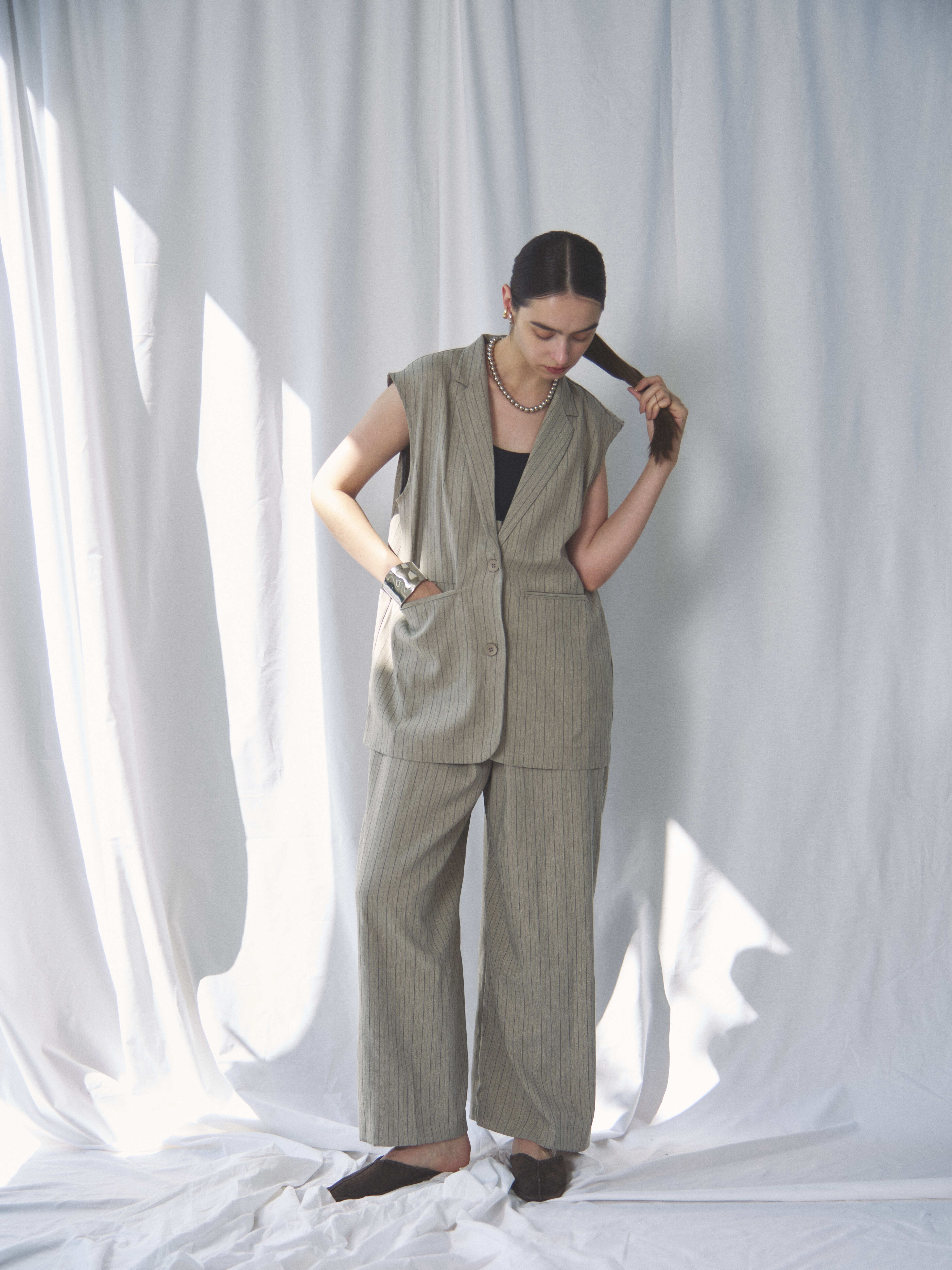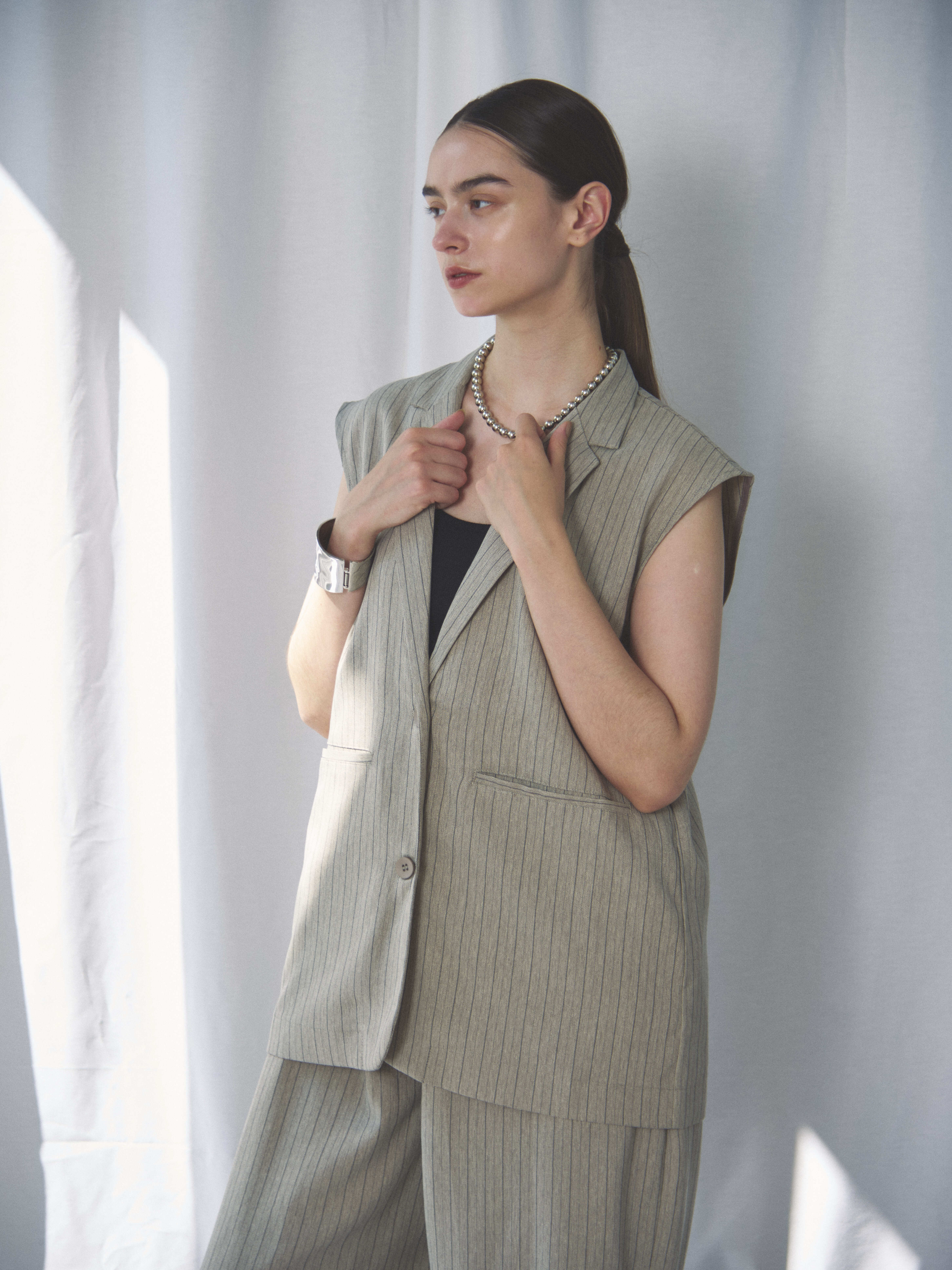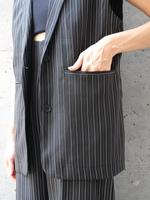 HERRINGBONE STRIPED SLEEVELESS JACKET(ヘリンボーンストライプスリーブレスジャケット)【7533217】