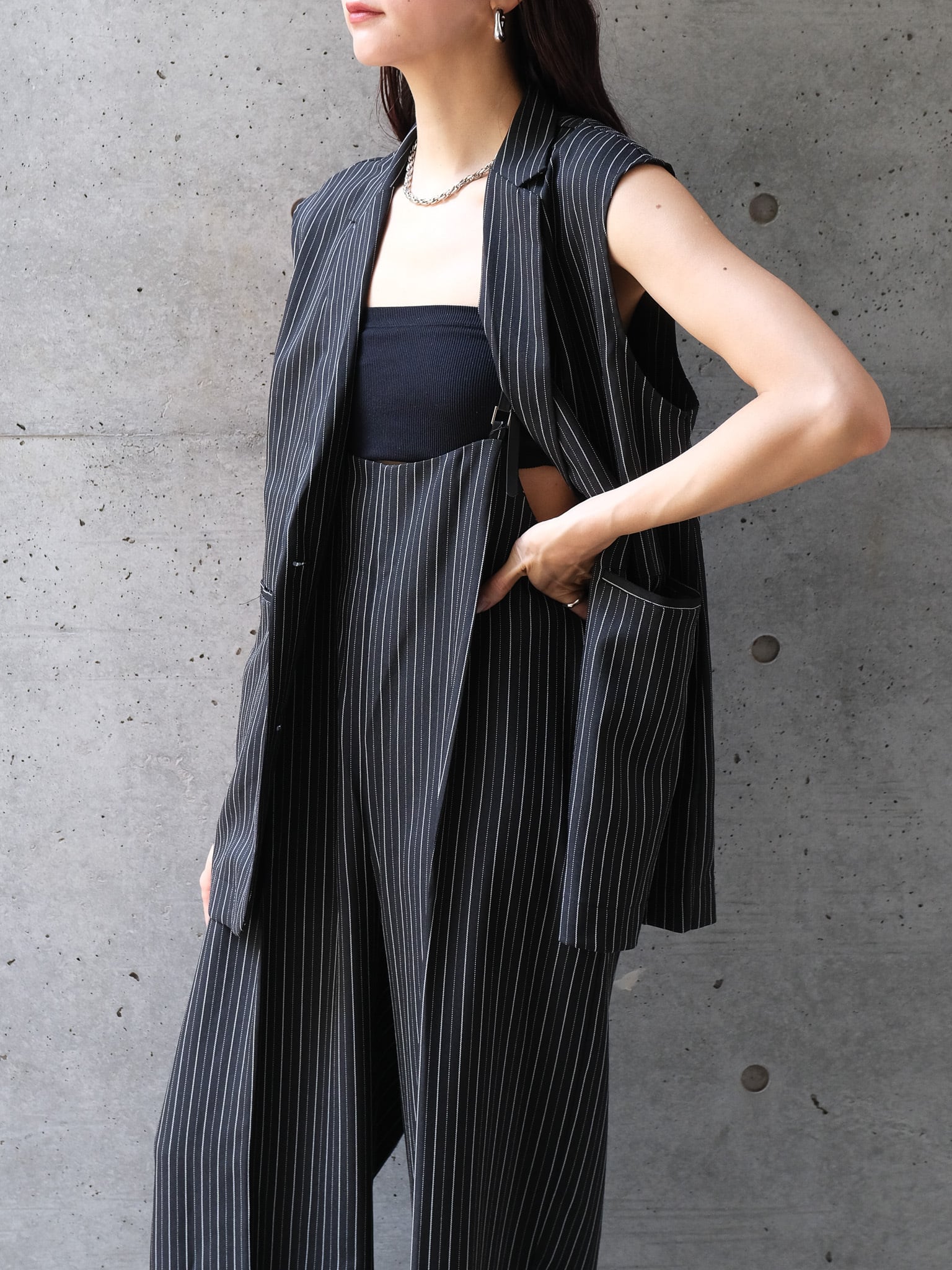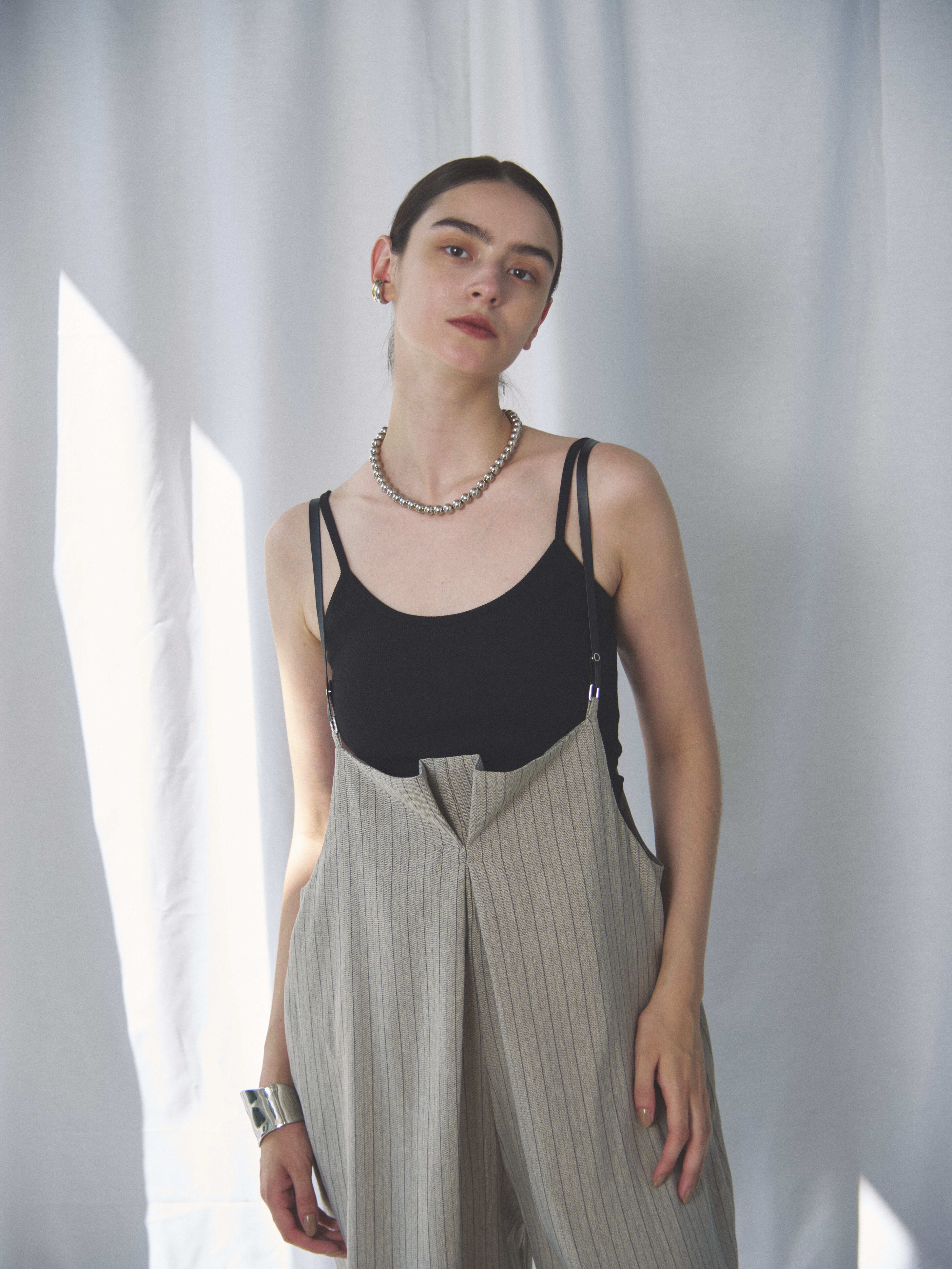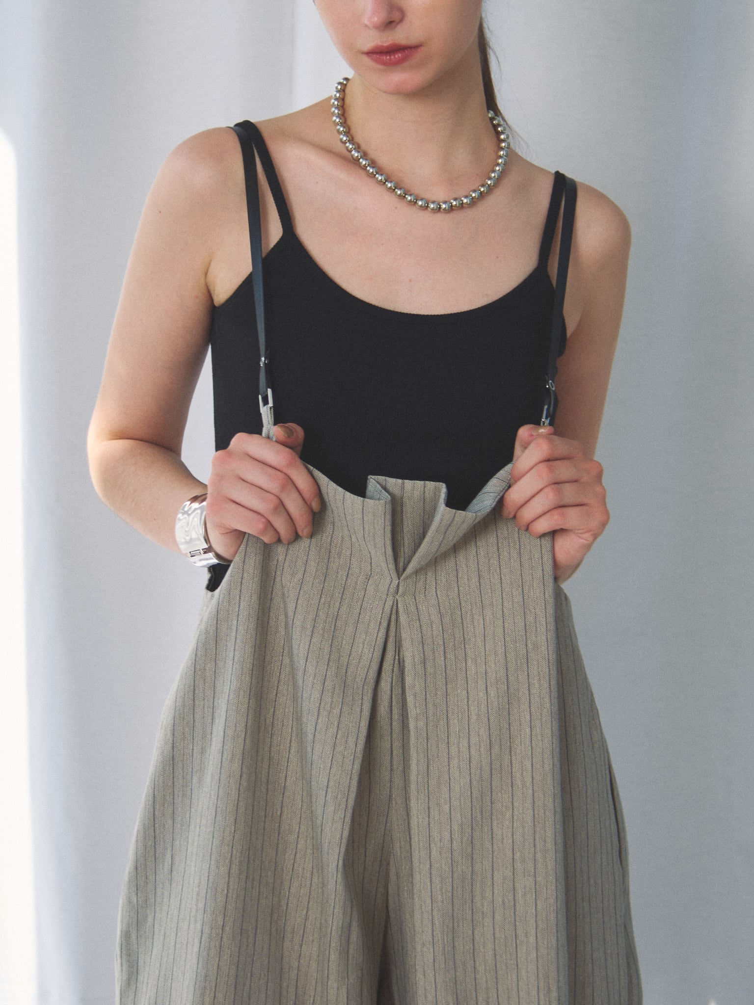 マニッシュな印象のヘリンボーンストライプ柄をあしらったサロペット。ワイドシルエットで体のラインを拾わずリラックスした着心地を叶えながらも、縦ラインを強調しスタイルアップ効果も。インナー次第でロングシーズンお楽しみいただけます。シンプルなトップスを合わせるだけでスタイリングが完成するのも嬉しいポイント。