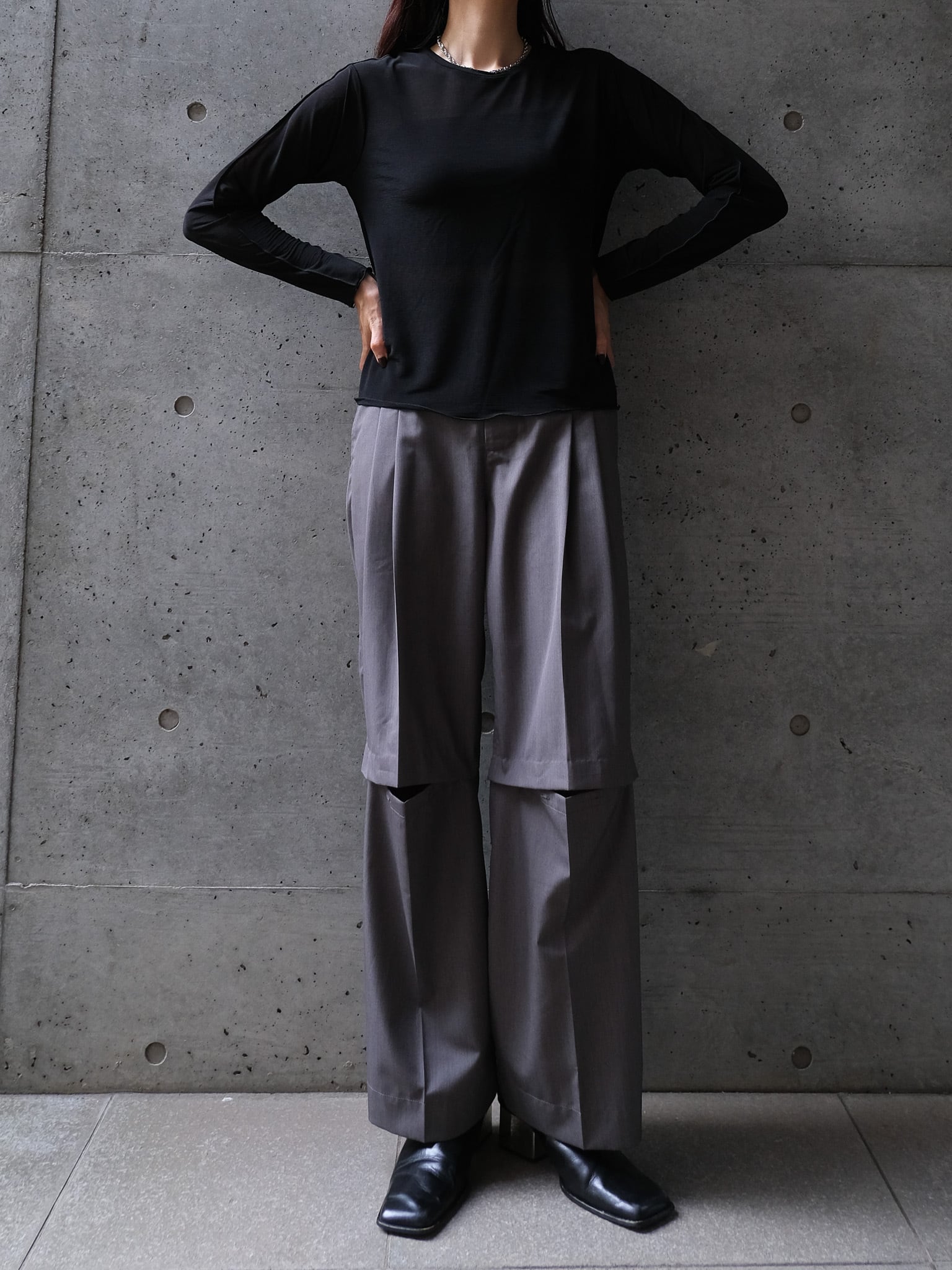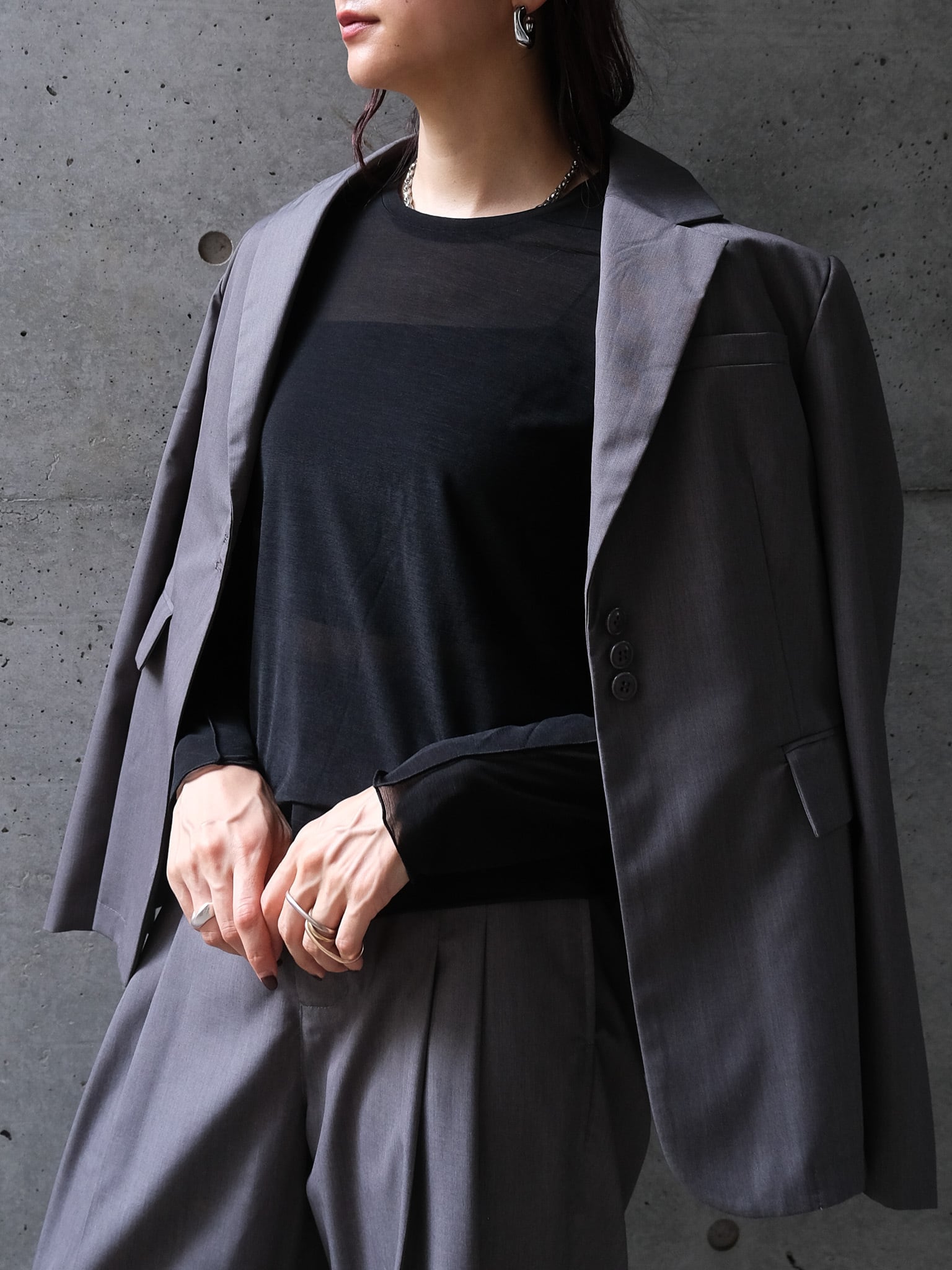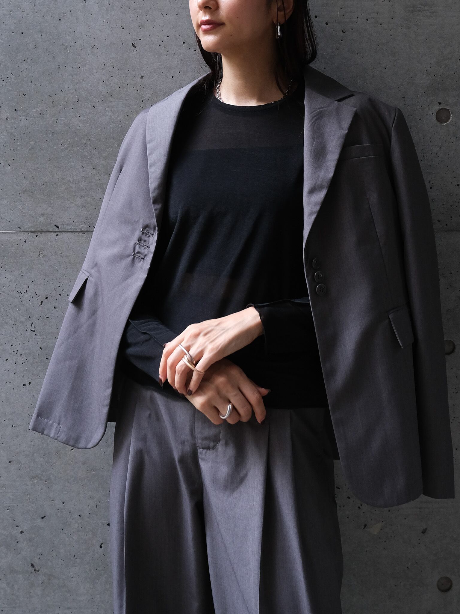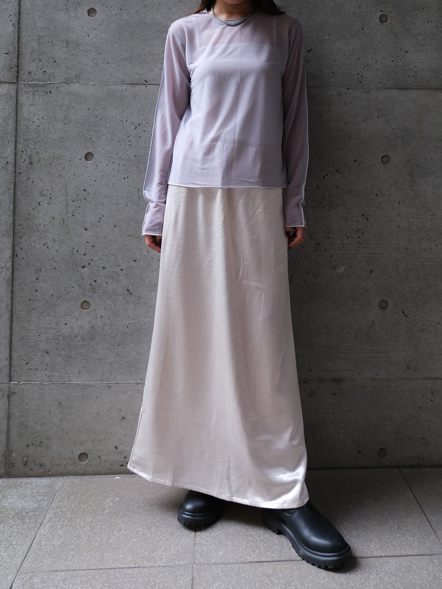 程よく透けるシアー素材を使用しています。やや伸縮で性もあり着心地良く着用いただきます。ご自宅でホームケアしていただけます。