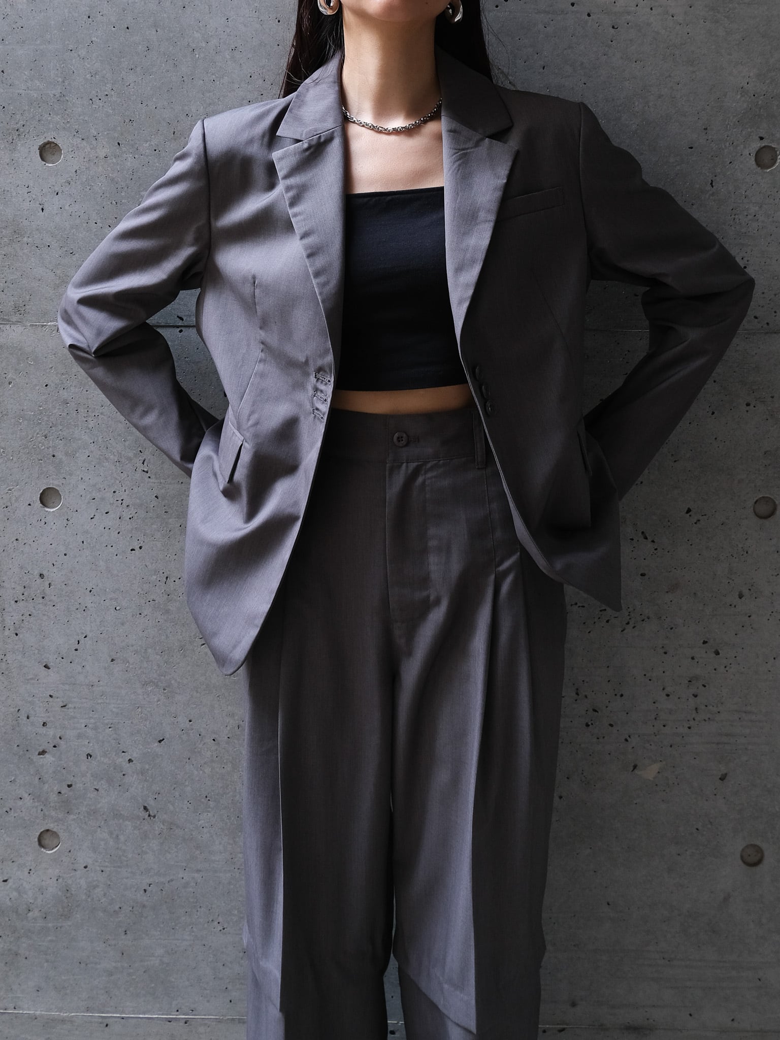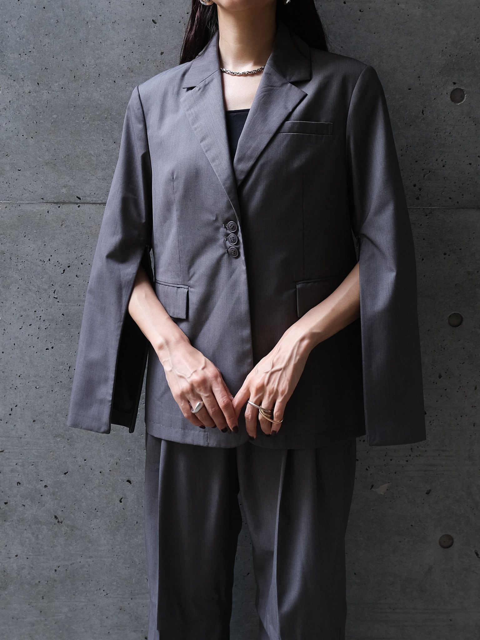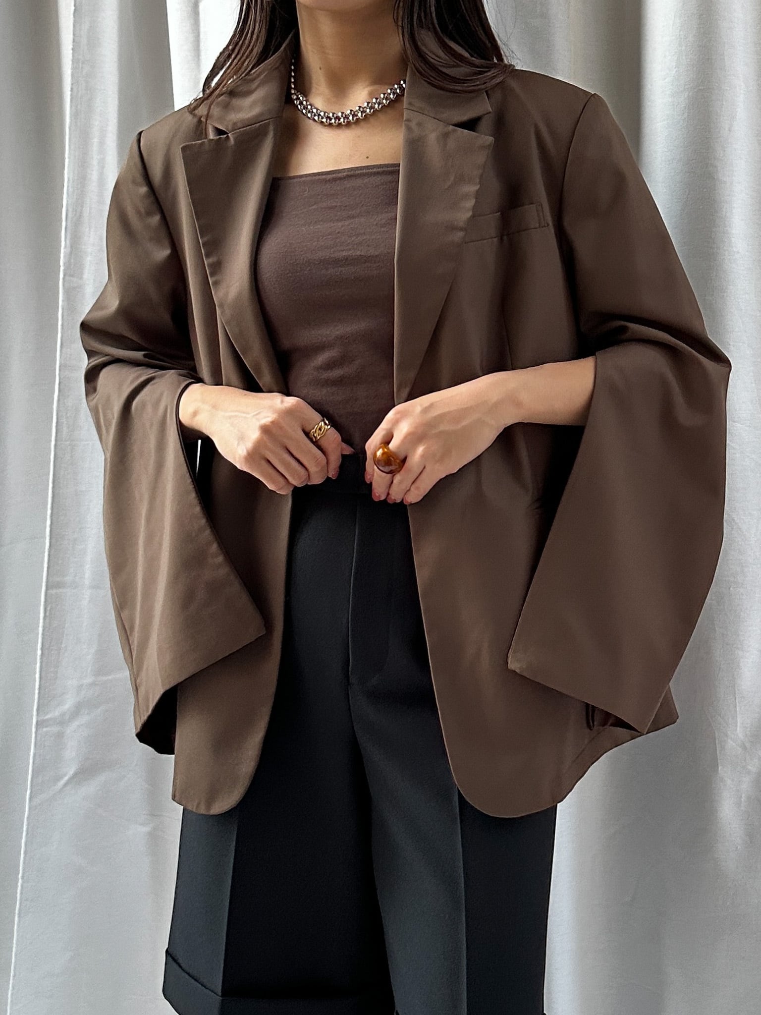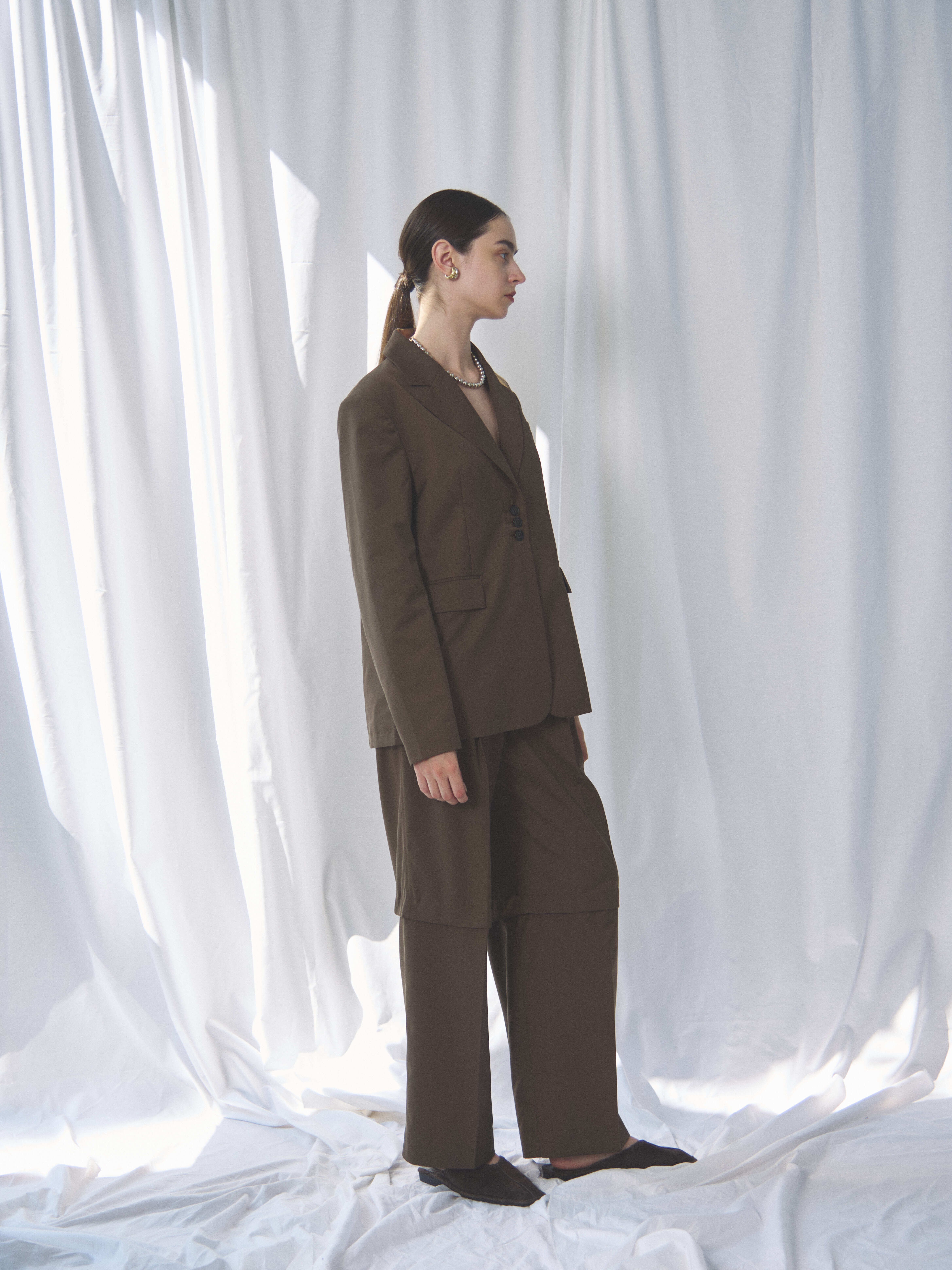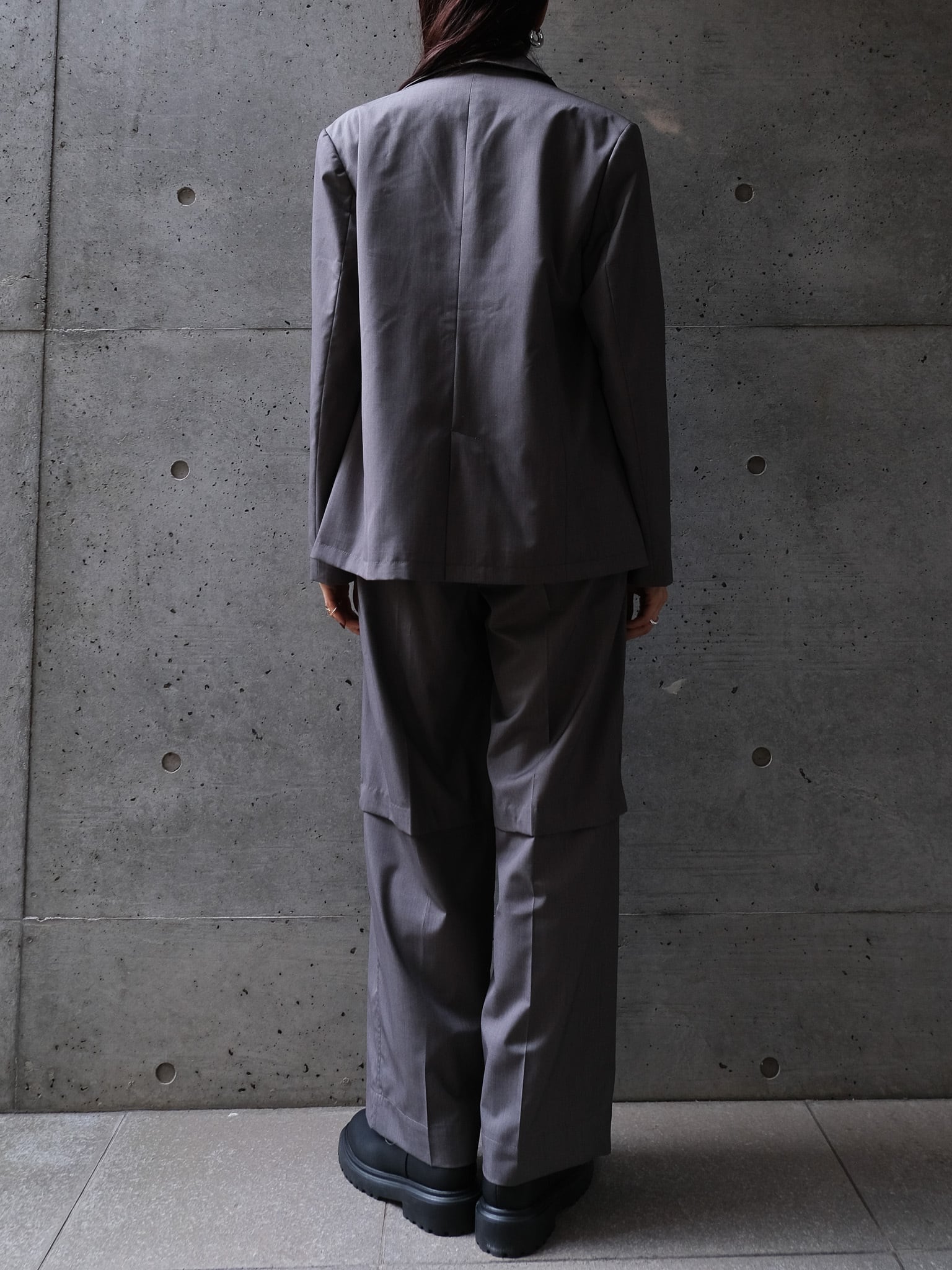 ジャケットスタイルはお手のものなストレートタイプさん。いつものコーディネートにさっと羽織れば即こなれスタイルが完成します!同素材の3WAY CUTOUT TROUSERS(スリーウェイカットアウトトラウザー)【5533637】と合わせるのもメンズライクにキマりおすすめです。