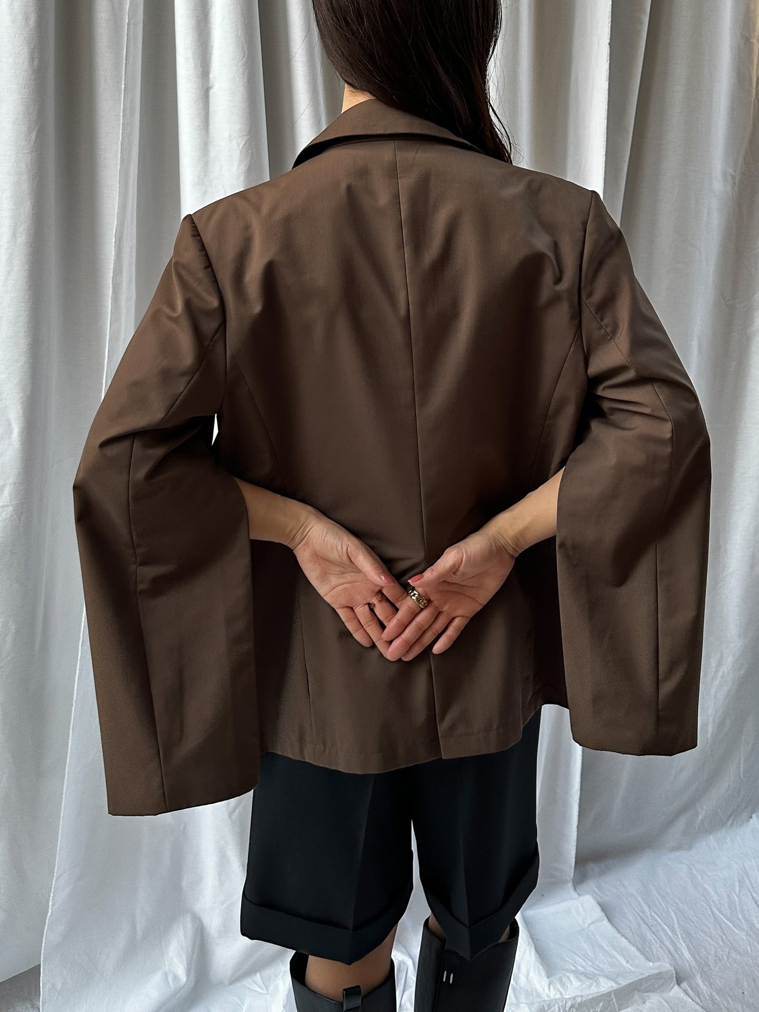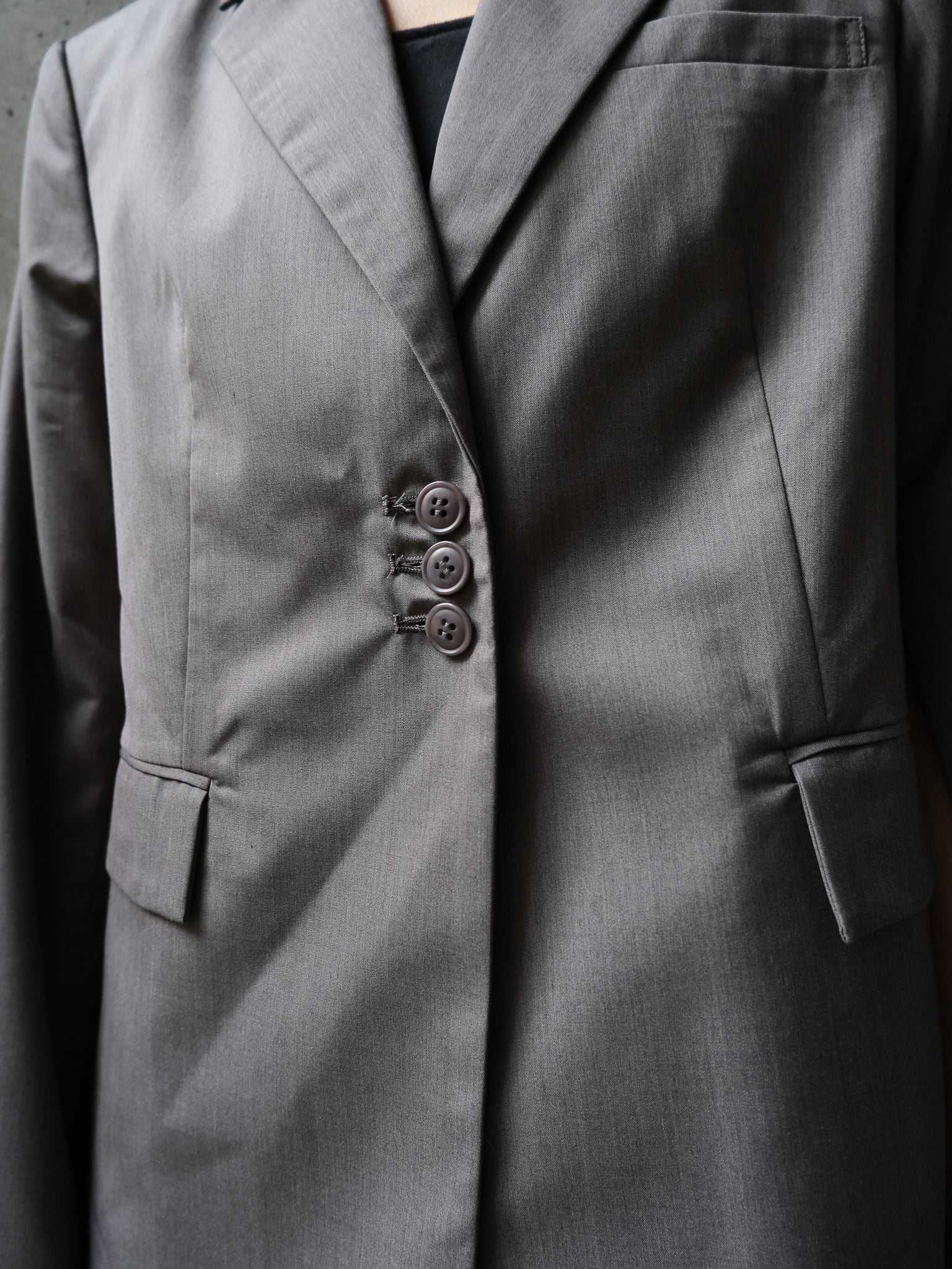 CIEL'AIRらしさが詰まったデザインジャケット。お袖のカットアウトやぐっと集まったボタンがキャッチーな、ディティールの冴えるアイテムです。ポケットのフラップは出し入れ可能。きっちりとしたオフィスシーンではもちろんのこと、パーティーシーンやOFFシーンまで華やかに演出してくれます。