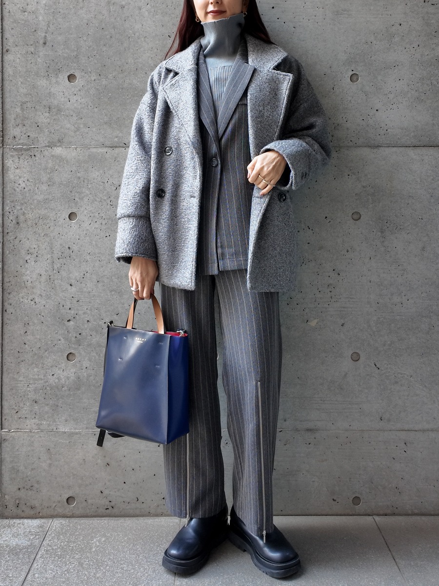 STRIPED SIDE SLIT JKT(ストライプサイドスリットJKT)【5543017】とのセットアップスタイリングがおすすめです。ジャケットとの合わせはもちろんのこと、オーバーサイズのニットやスウェットと合わせたカジュアルスタイルやワンピースとのレイヤードスタイルなど、幅広いシーンで活躍してくれます。