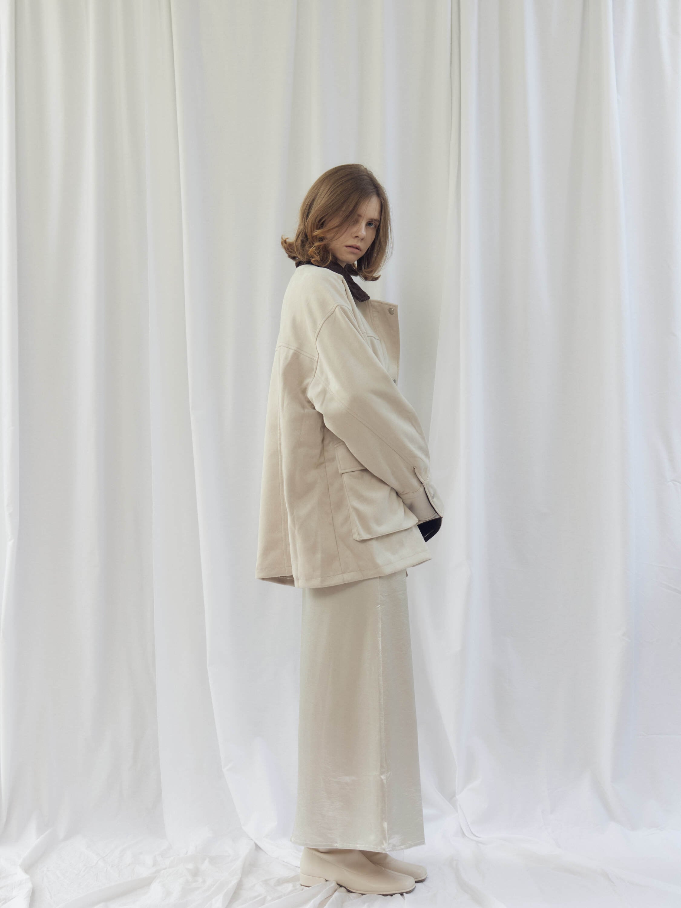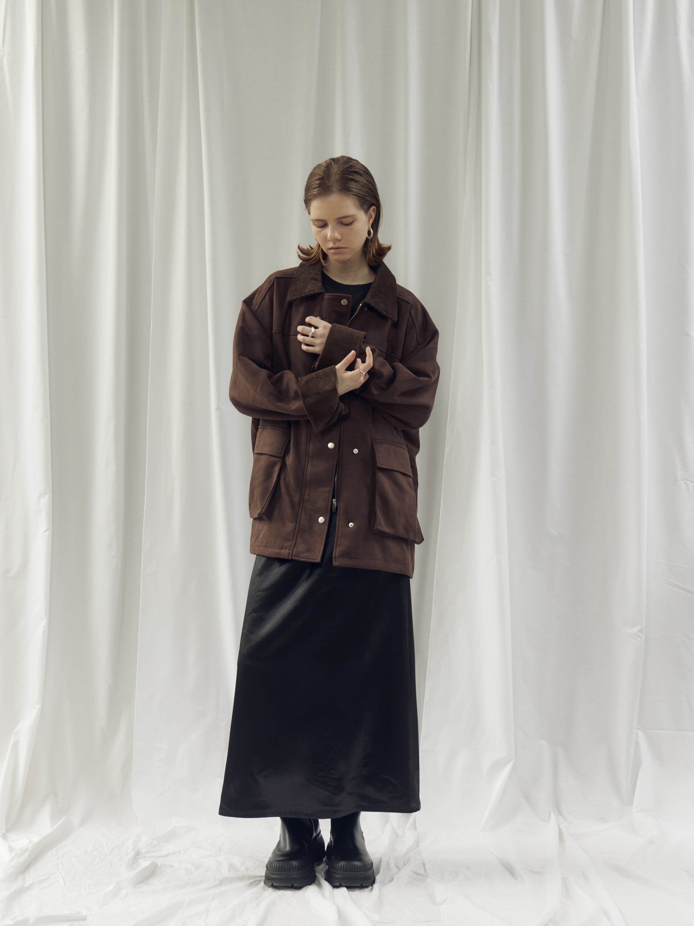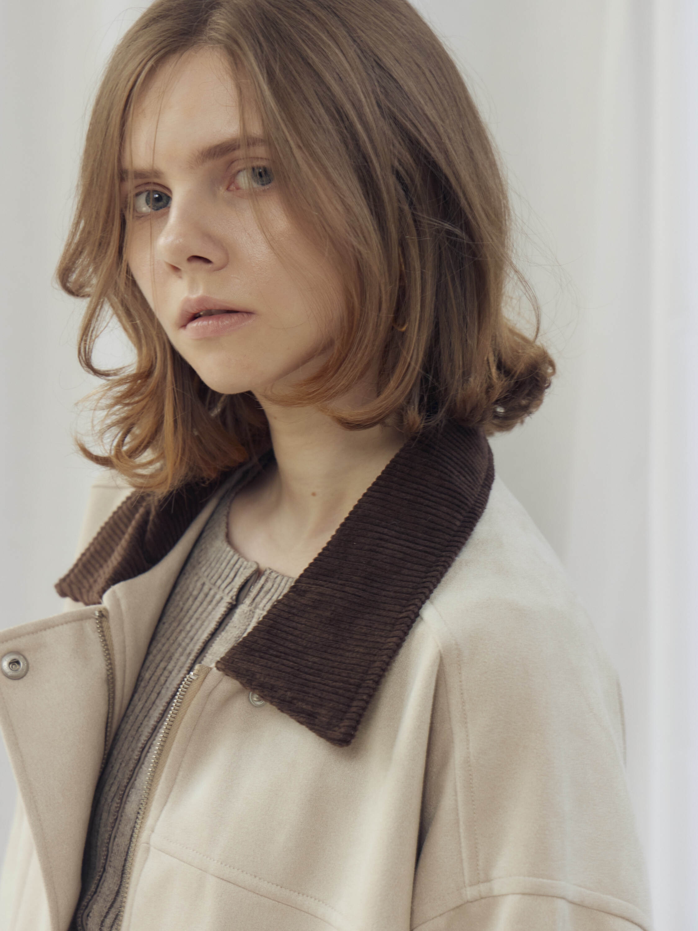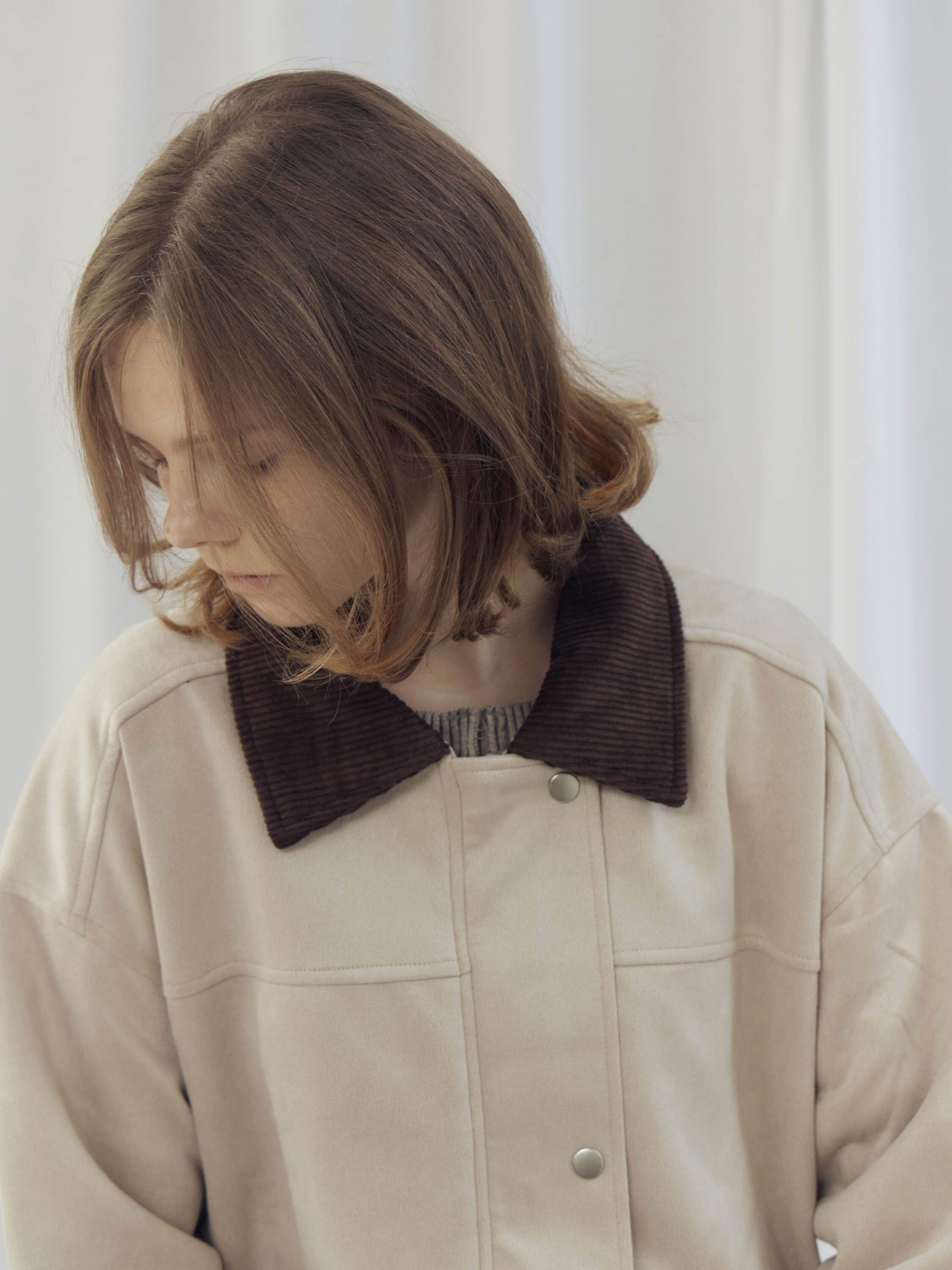衿とカフスの異素材ミックスが印象的なスエードジャケット。フェイクスエードを使用した秋冬らしい素材です。ゆったりとしたサイズ感で、厚手のニットを仕込んでロングシーズン着用可能。フロントの大きめなポケットが目を惹き、デザイン性と利便性を兼ね備えたアイテムです。