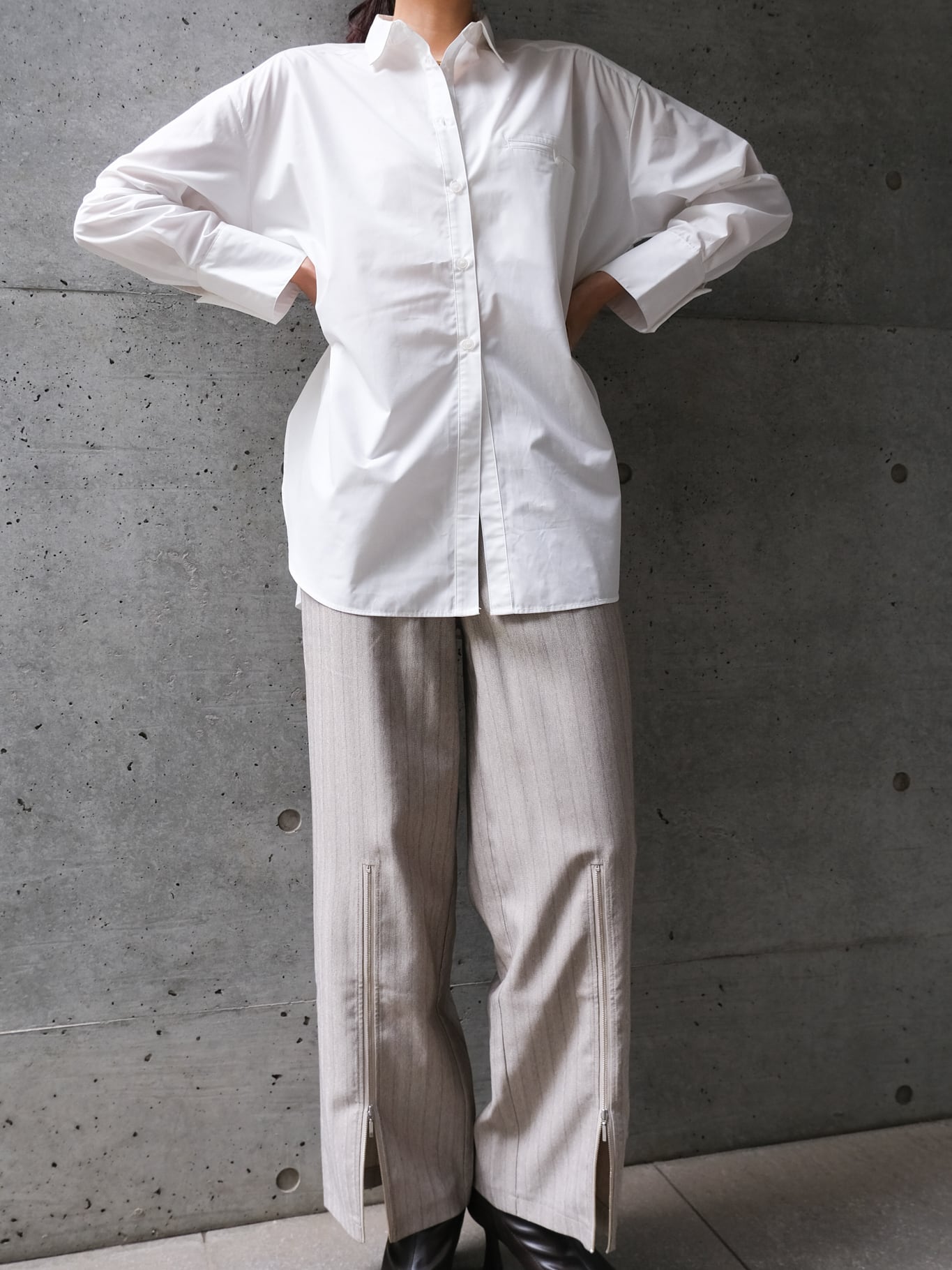 使いまわし抜群のロングシャツが登場しました!シンプルなデザインになっているのでベストやビスチェなどと相性抜群になっています。また、冬にはスウェットの下に着てレイヤードをお楽しみいただけます。1枚持っておくと様々なスタイリングにアクセントとして重宝するタイムレスなアイテムになっています。