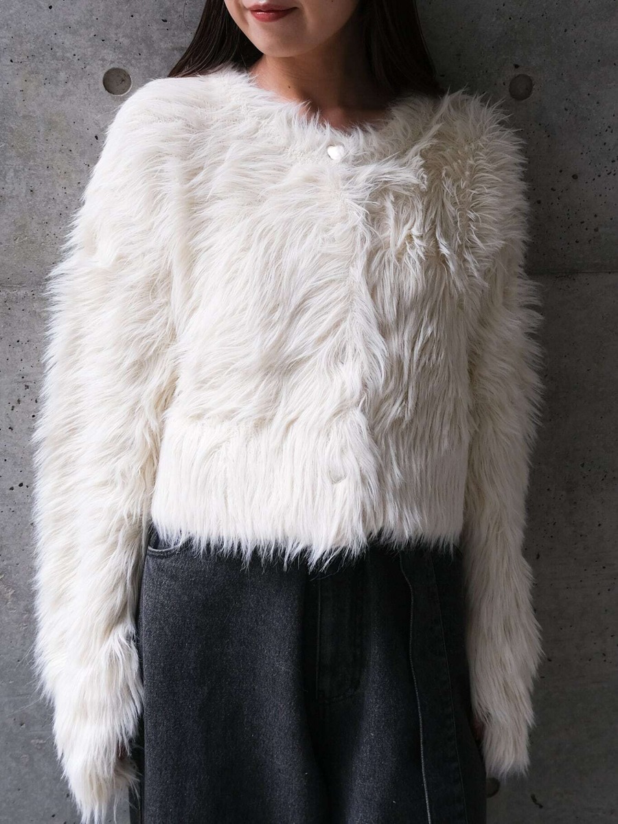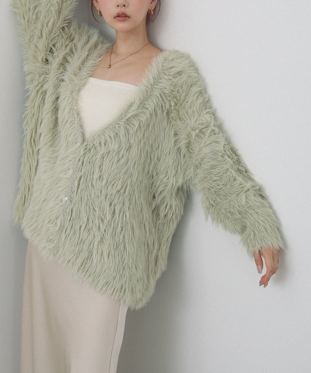 ふわっと柔らかく、高級感のある着心地のいいシャギーカーディガンです。