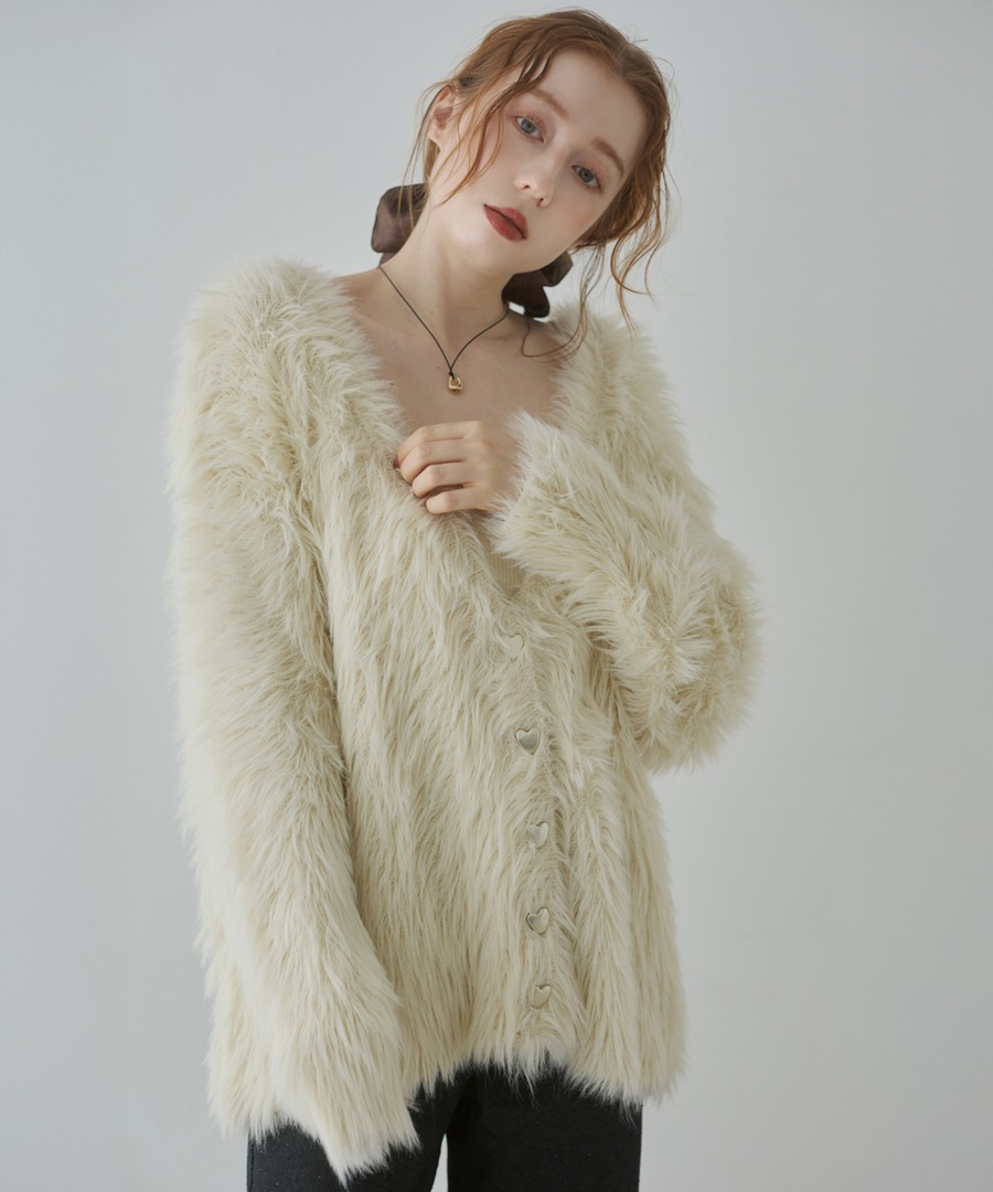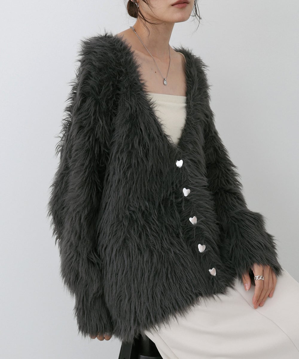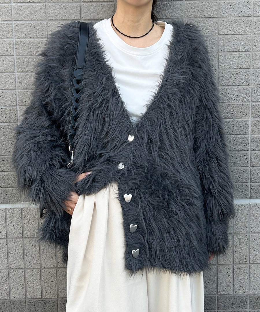 HEART BUTTON SHAGGY KNIT CARDIGAN(ハートニットシャギーカーディガン)【5540002】select by Bab