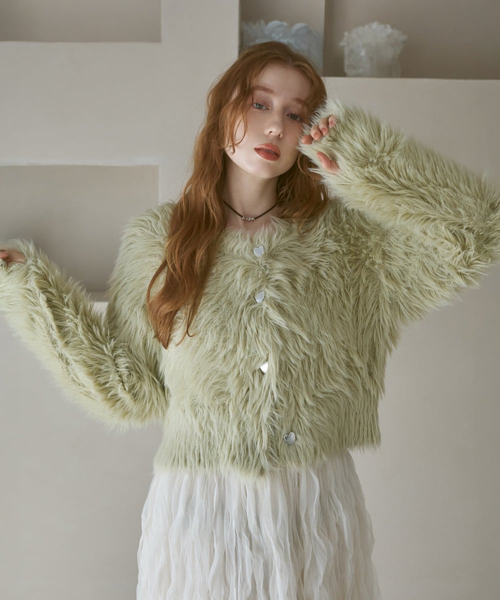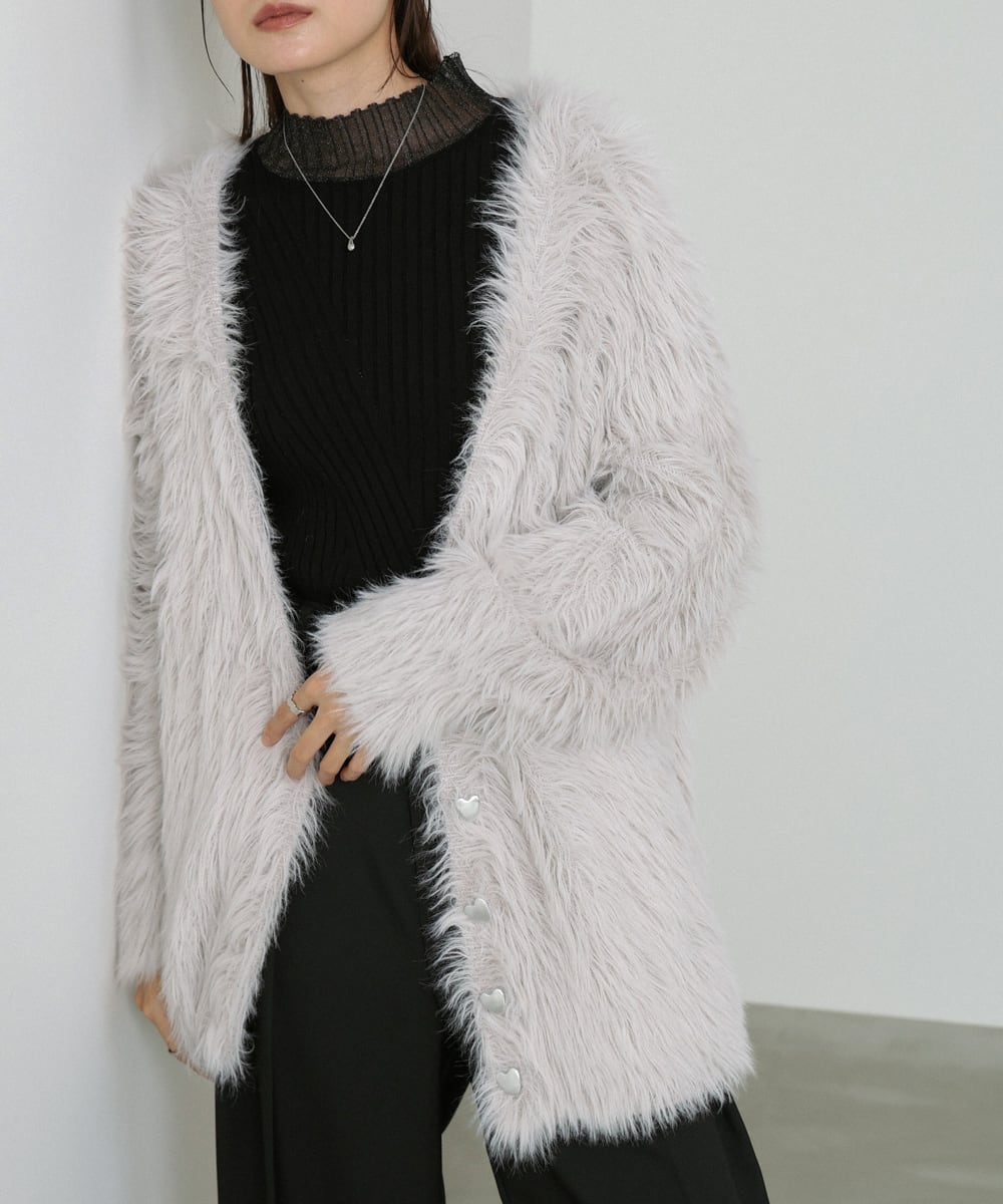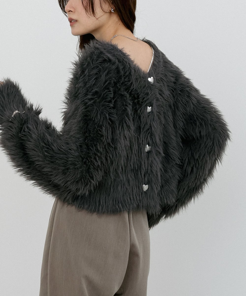 HEART BUTTON SHAGGY KNIT CARDIGAN(ハートニットシャギーカーディガン)【5540002】select by Bab