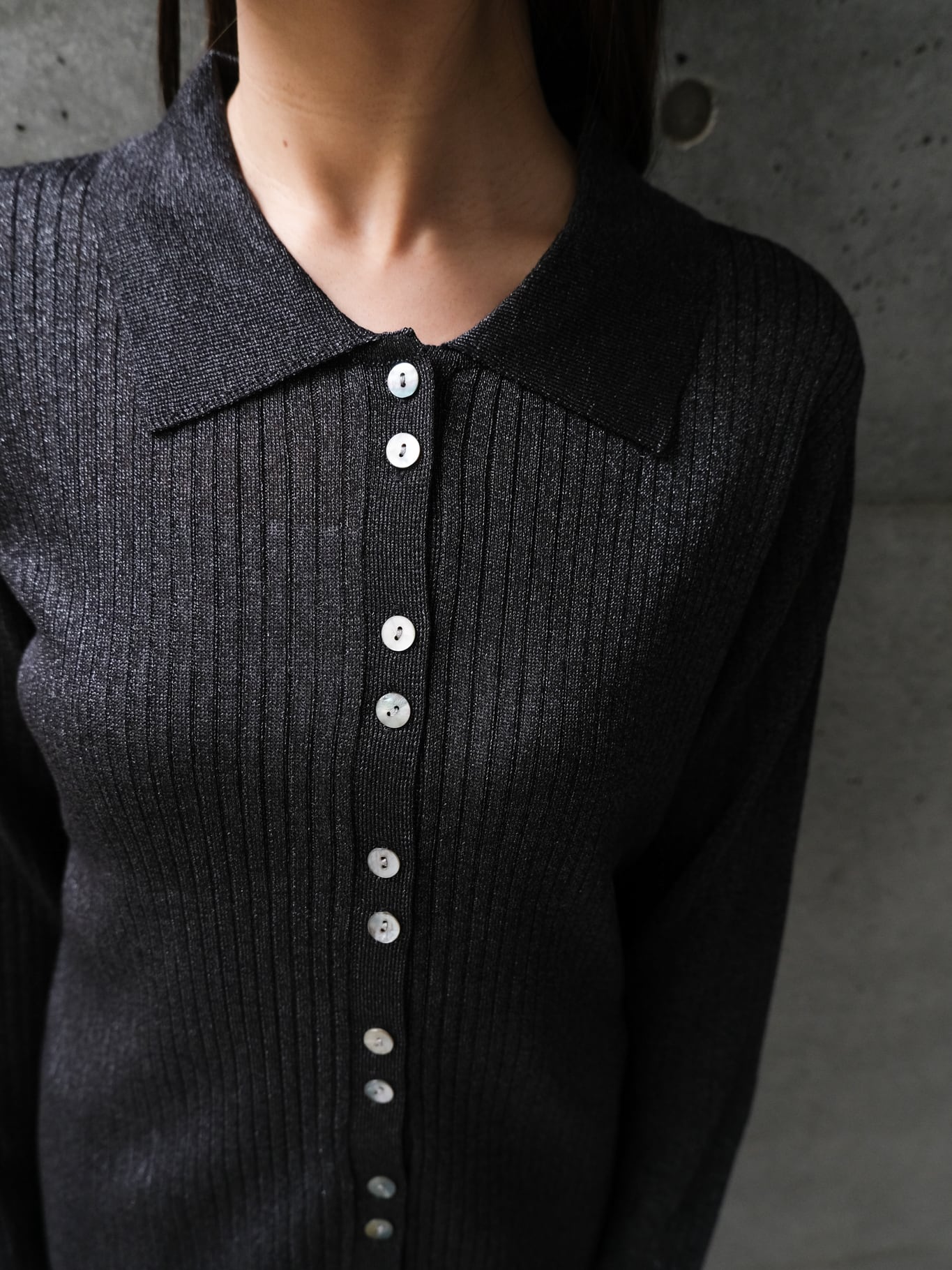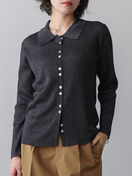 ポロ衿デザインで上品な印象をプラスしつつ、前を開ければ軽やかなカーディガンとしても使える2way仕様。 等間隔に並んだ2つずつの貝ボタンが、さりげなく視線を集めるアクセントに。 細めのリブ編みが体のラインをすっきり見せ、上品な透け感が大人の抜け感を演出します。