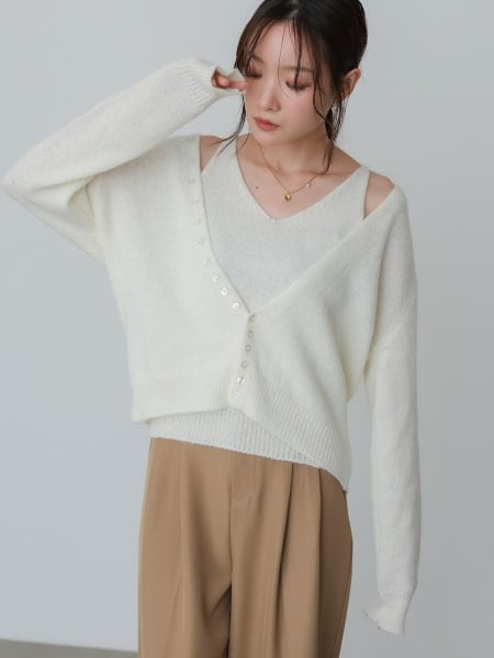 BUTTON DESIGN CAMI SET KNIT(ボタンデザインキャミセットニット)【6536082】select by Bab