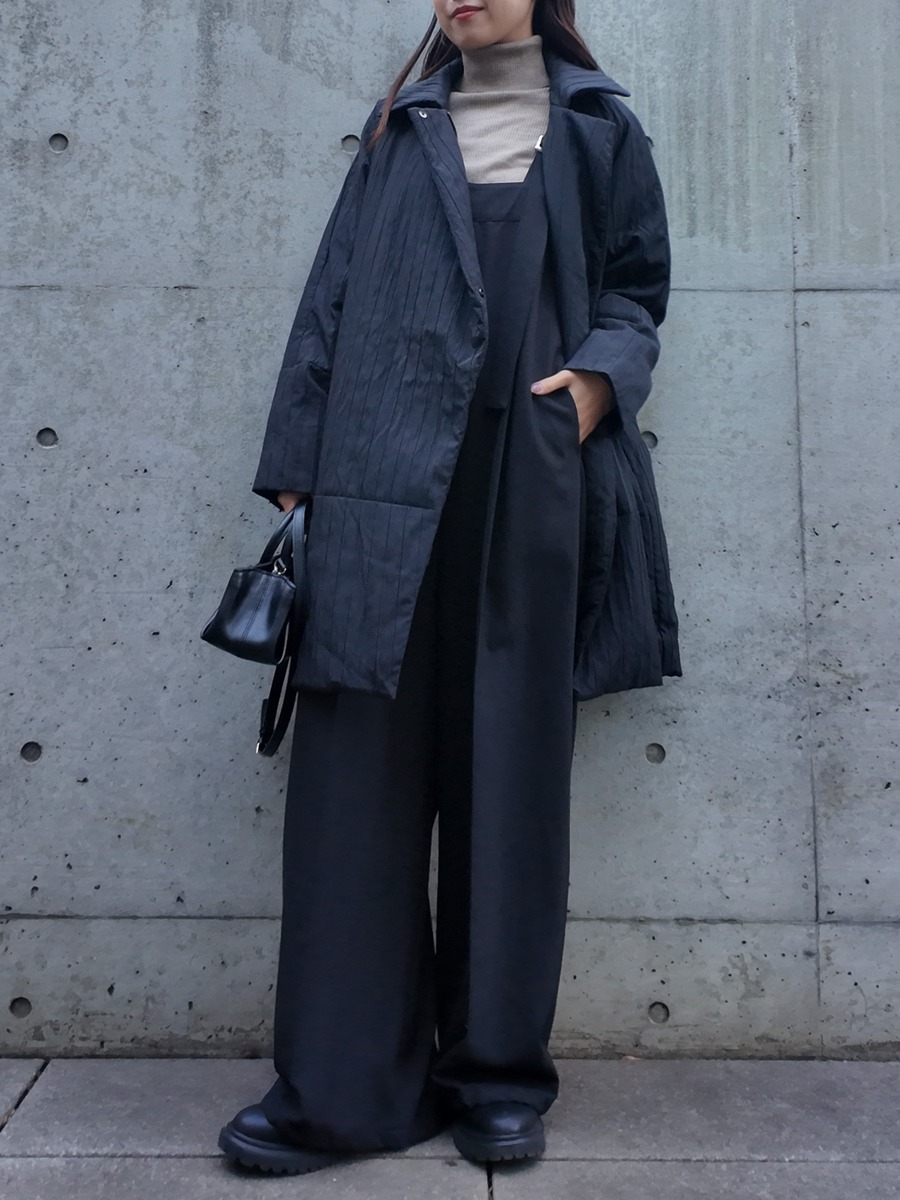 ハイウエストのボトムを合わせたり、着丈の短めなインナーを合わせるとバランスの取れたスタイリングに◎