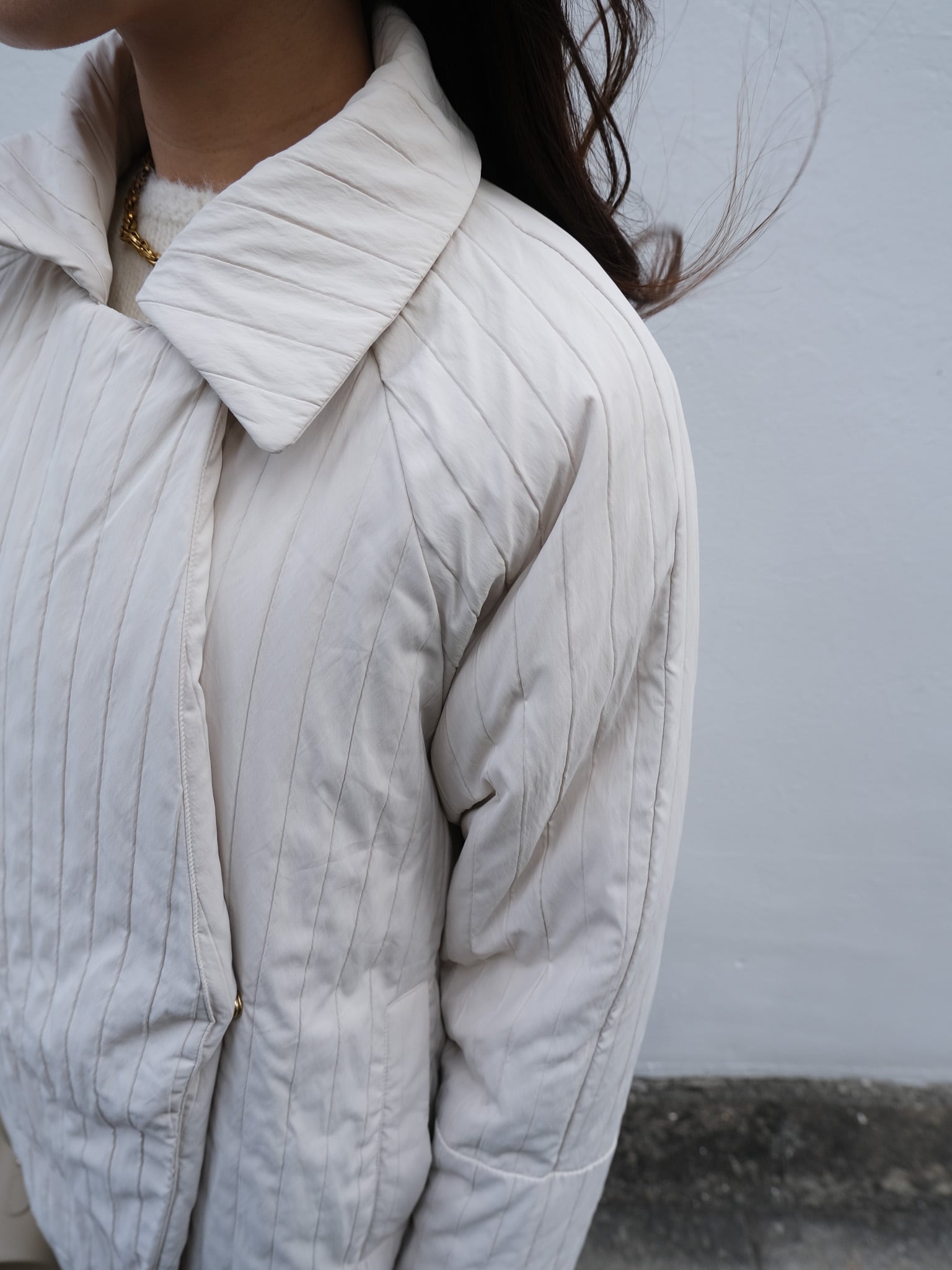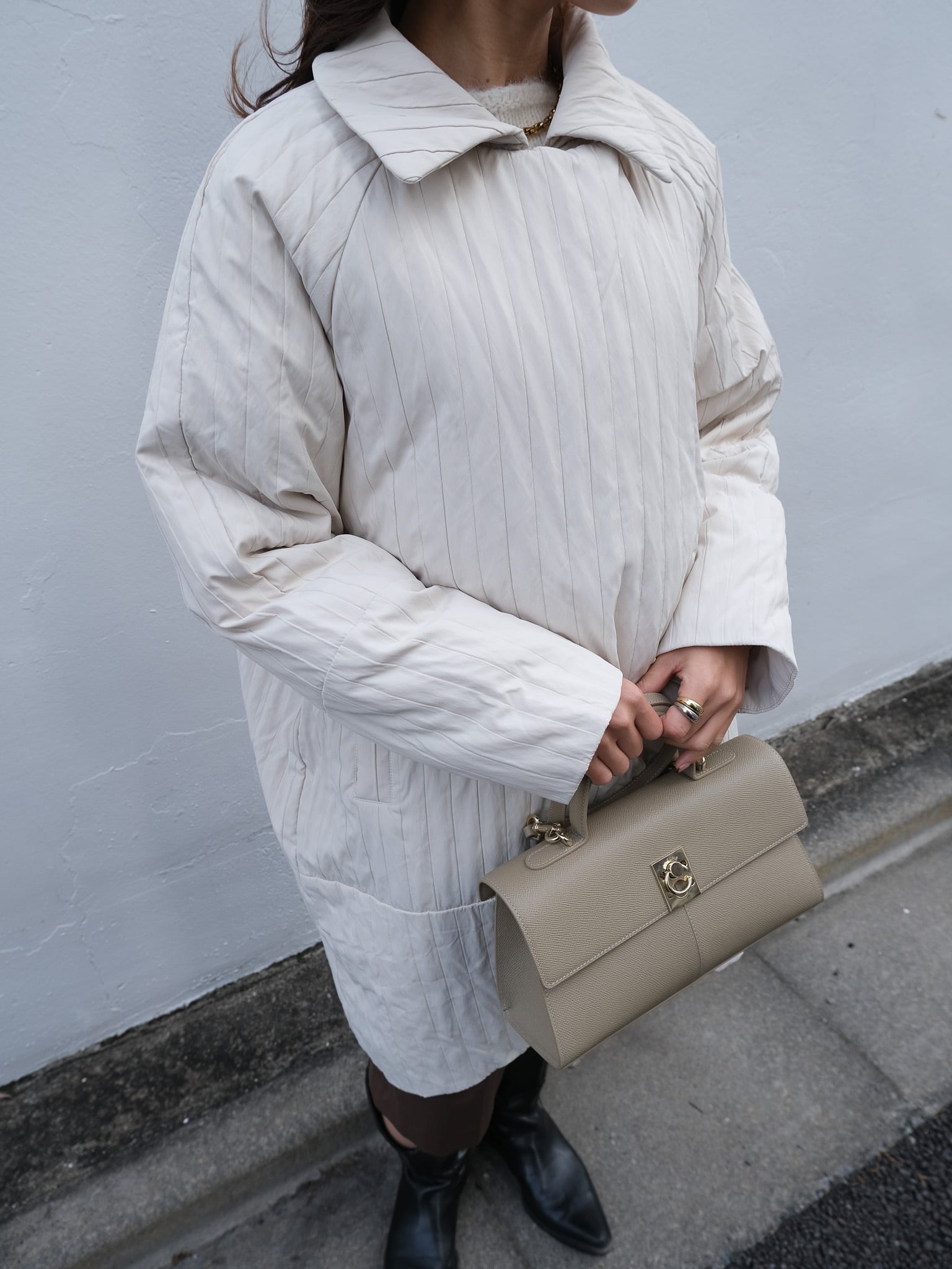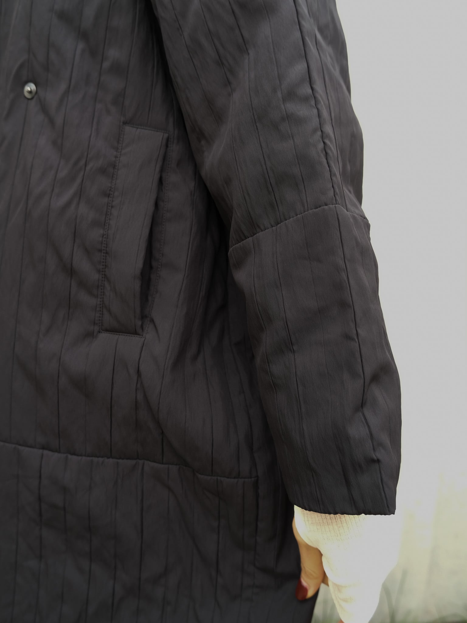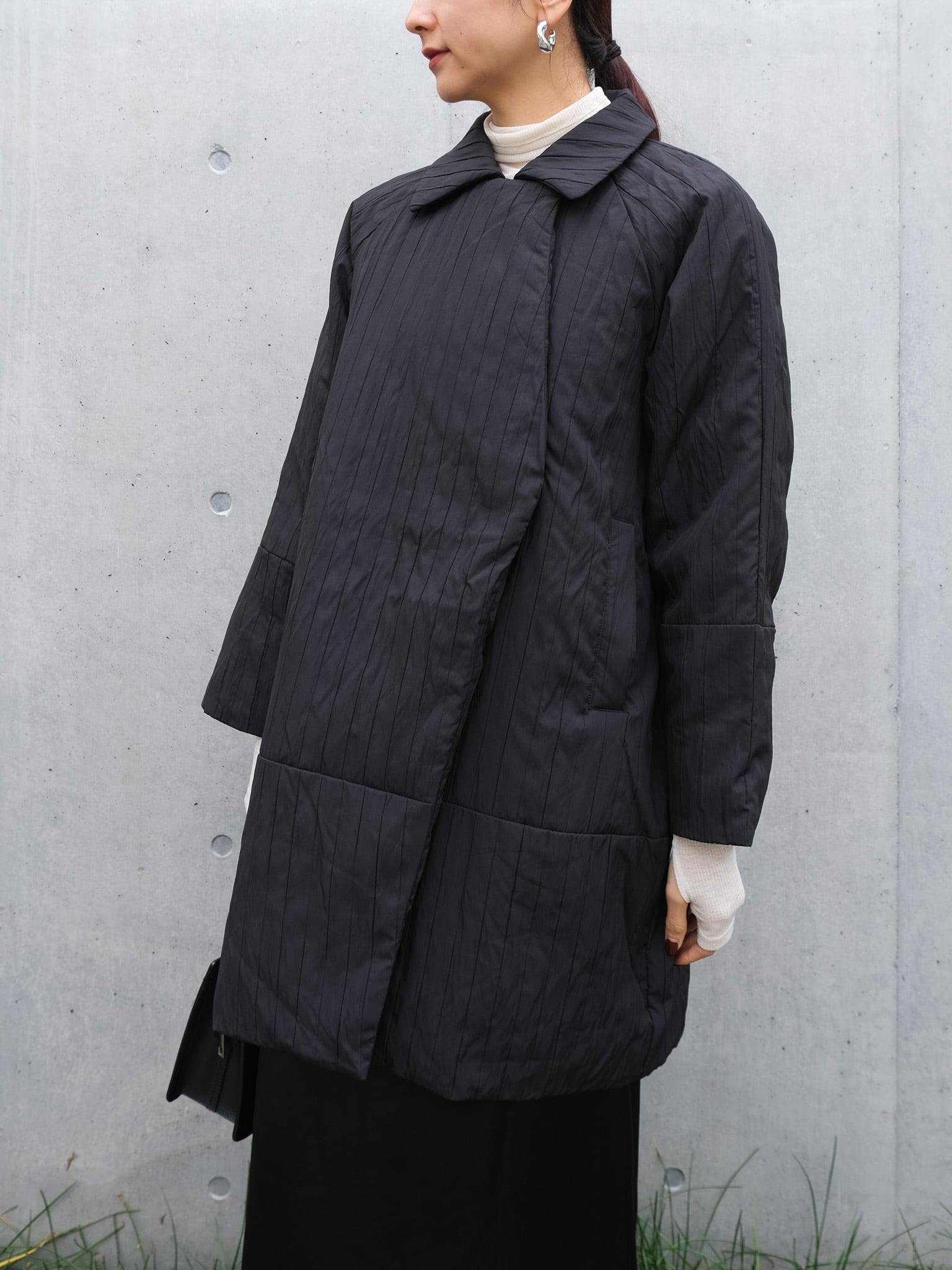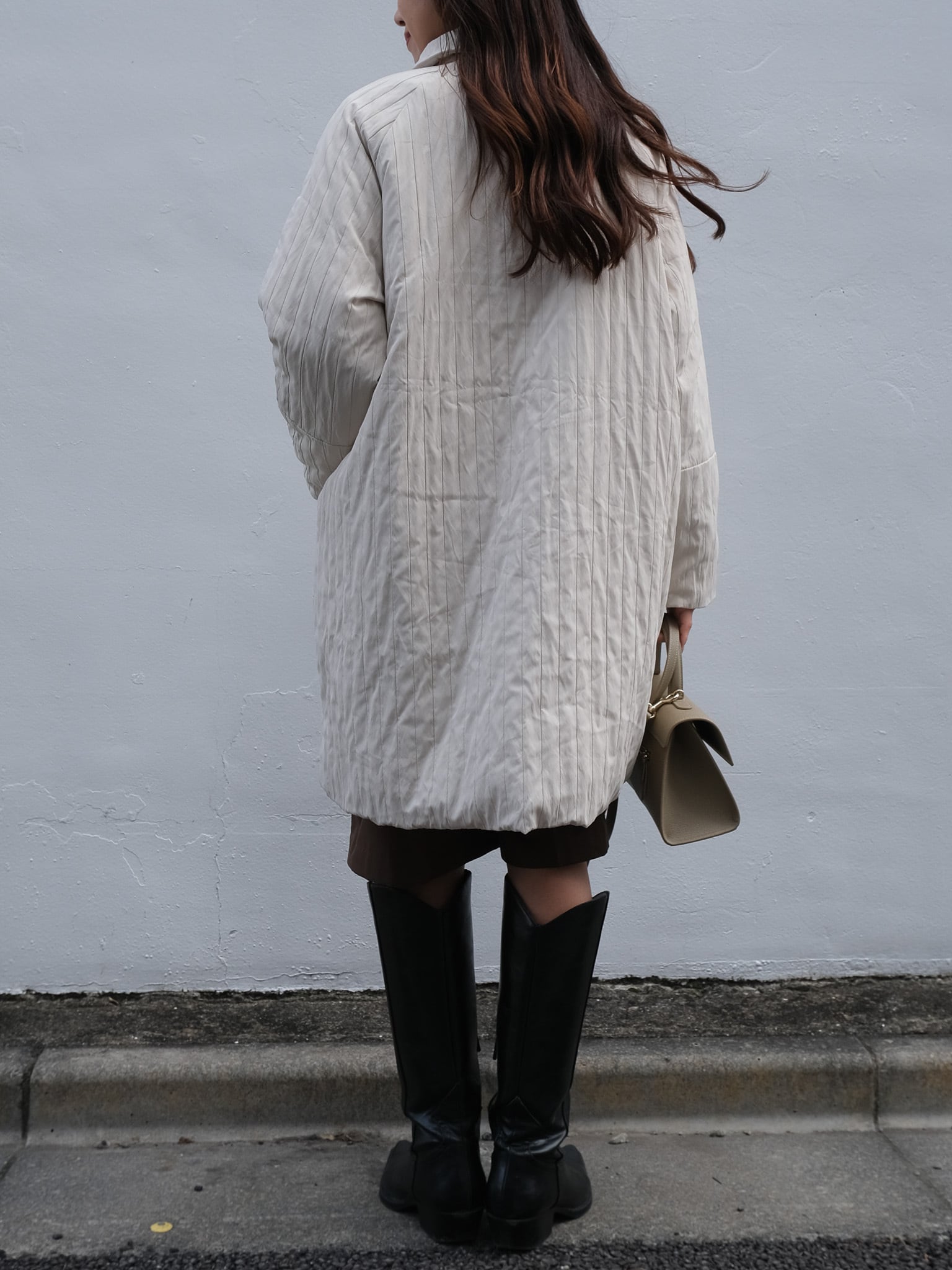 ダウン50%・フェザー50%を使用した、軽量で暖かいキルティングコート。ウェーブデザインが特徴的なフロントデザインと縦ラインを意識したステッチで、すっきり見えを叶えます。 カジュアルからきれいめまで幅広いコーディネートに対応し、冬のスタイルを女性らしく引き立てる一枚です。