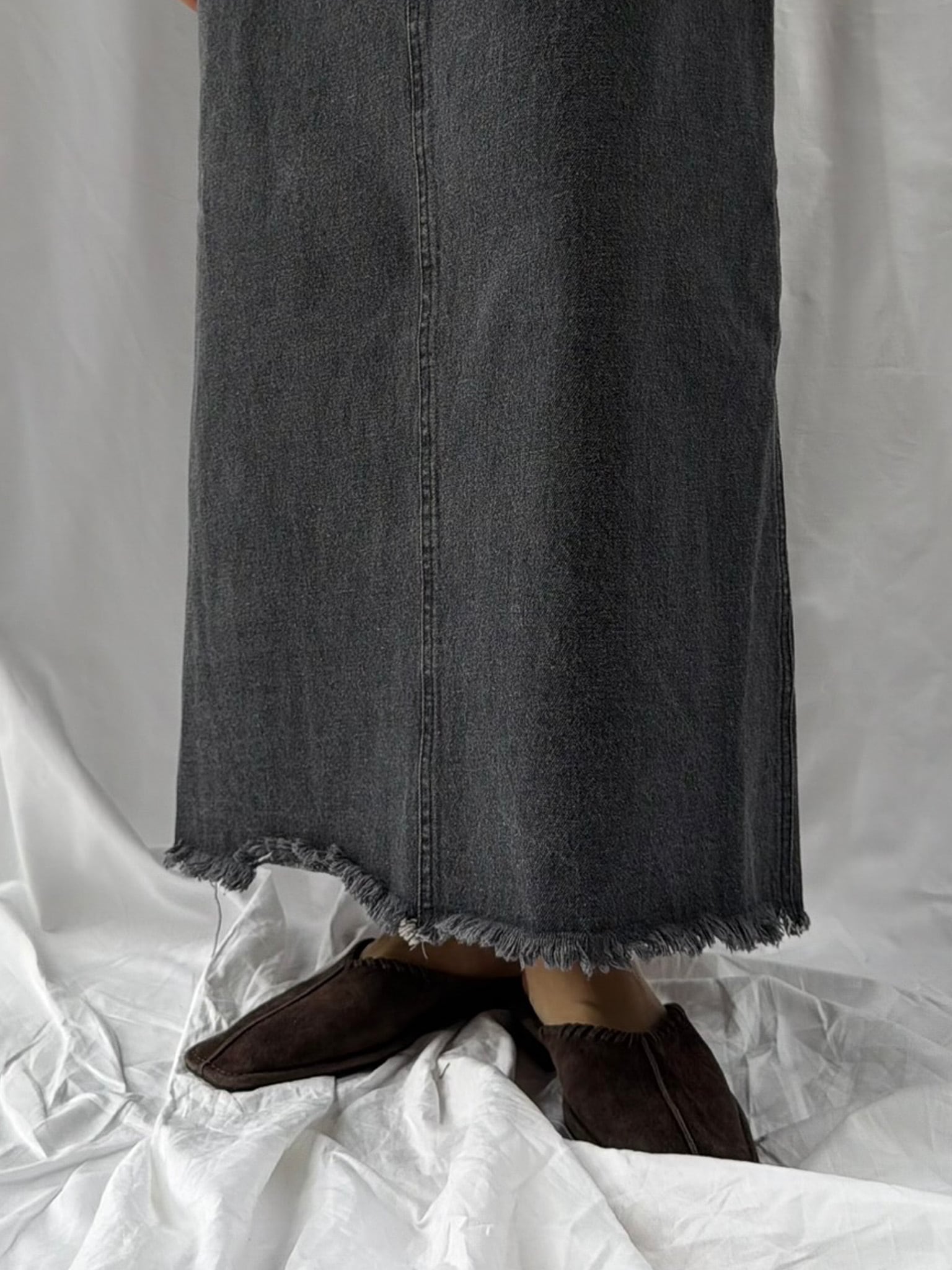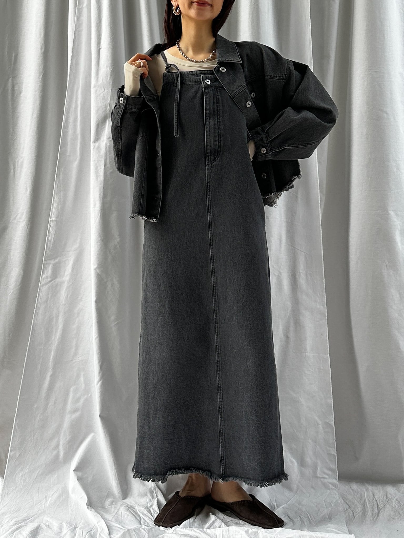 FRINGED DENIM JUMPER SKIRT(スソフリンジジャンスカ)【5613027】