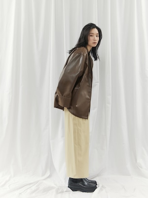 レザー素材の程よいラフさがナチュラルタイプさんにマッチ。オーバーサイズトップスやボリューム感のあるアイテムと合わせて、こなれた着こなしがおすすめです。