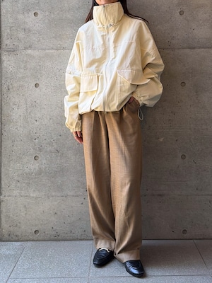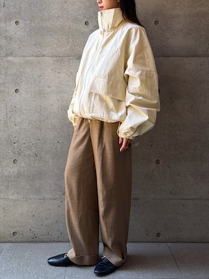 スラックスやIラインスカートと合わせて、すっきりとした大人スタイルに。足元はローファーやフラットシューズがおすすめです。ワンピースやスカートの上に羽織ることで、ブルゾンのメンズライクさが女性らしさを引き立てます。デニムやワイドパンツと合わせた、抜け感のある着こなしも◎ドローコードを絞ってシルエットに変化をつけるのもおすすめです。