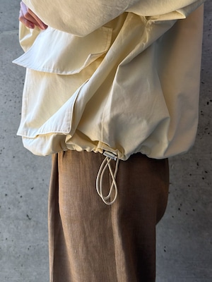 ドローコードでシルエット調整ができるため、重心バランスが取りやすい一着。柔らかい素材のインナーやフェミニンアイテムとのミックススタイルが◎