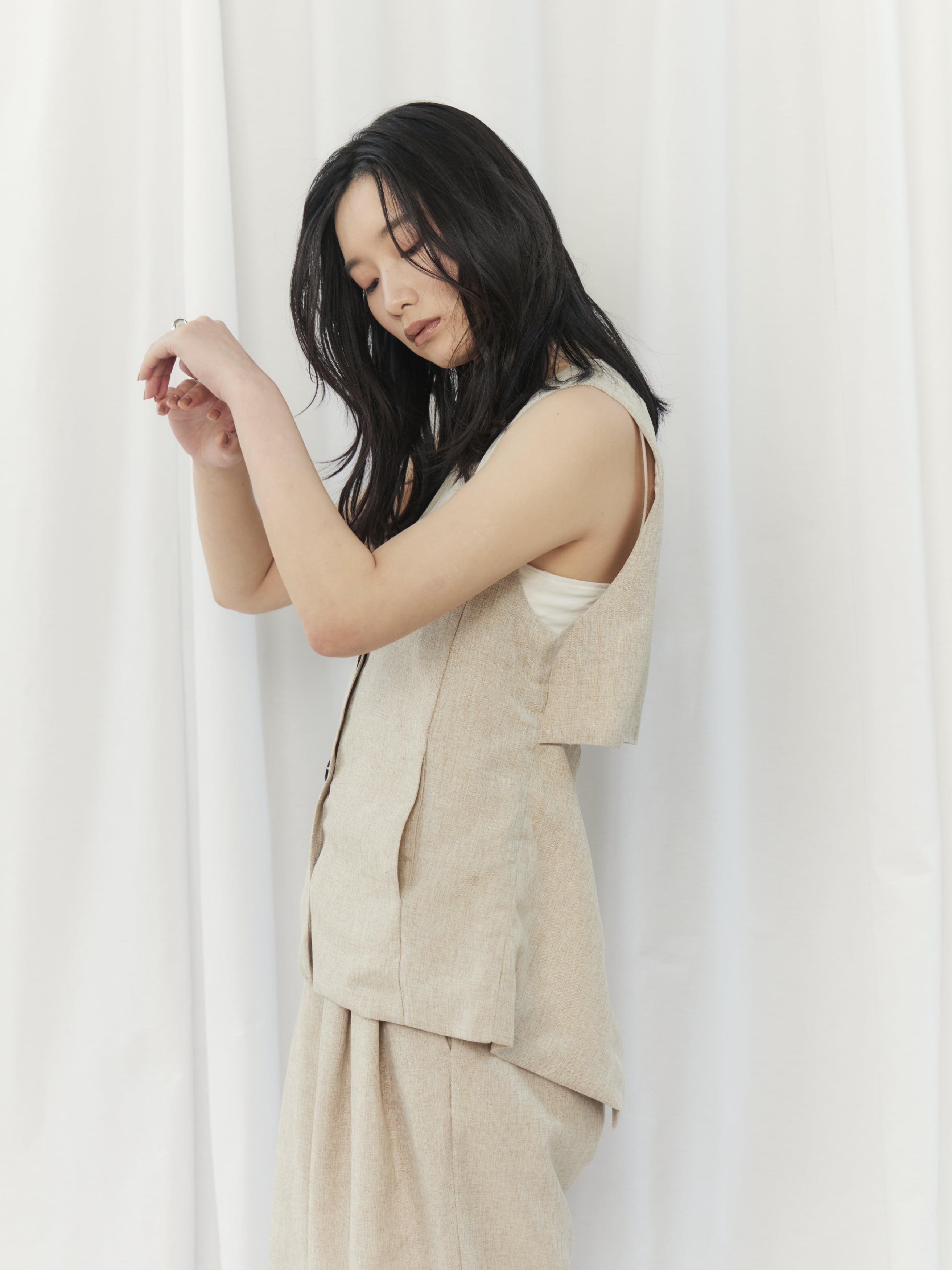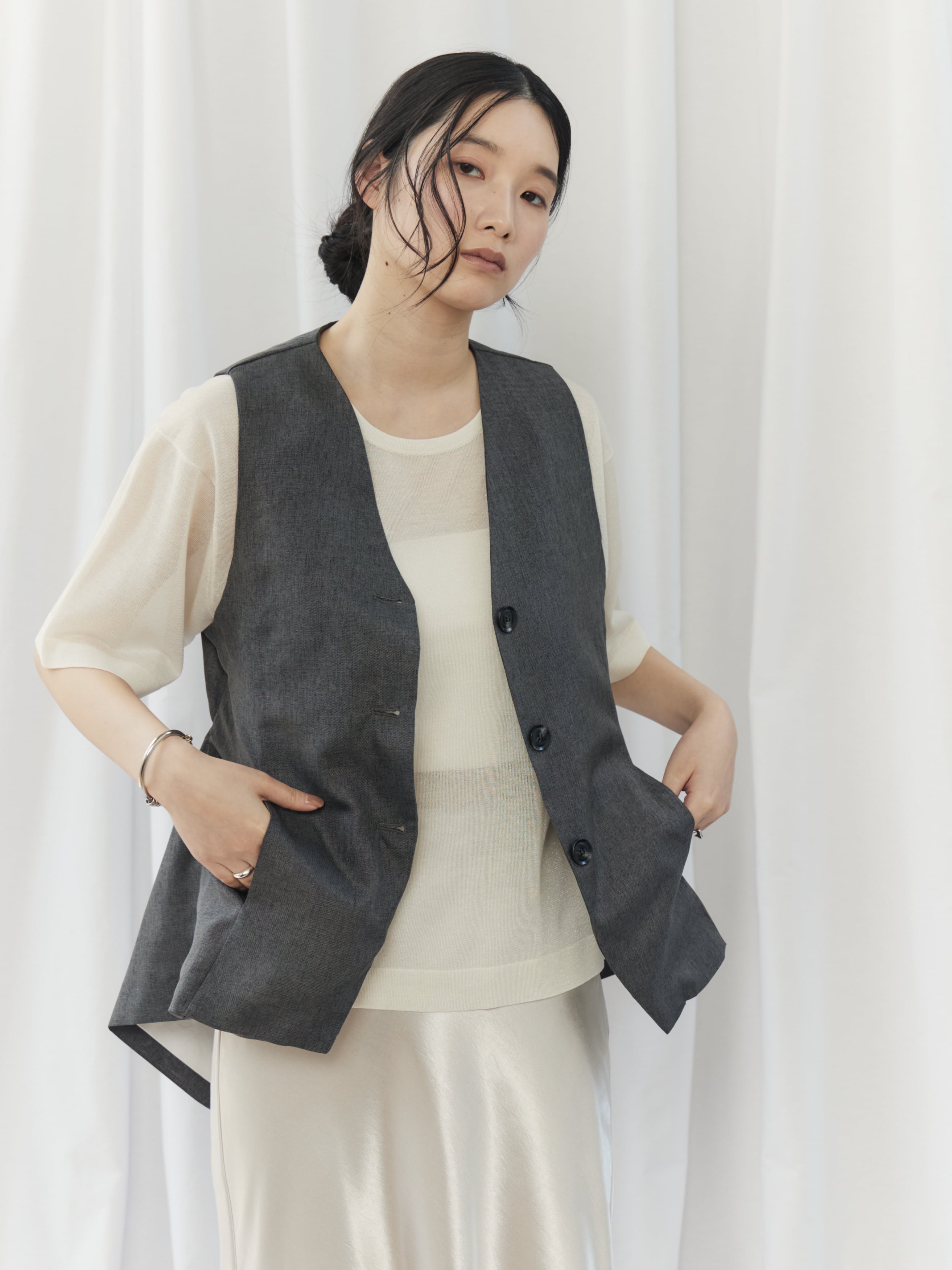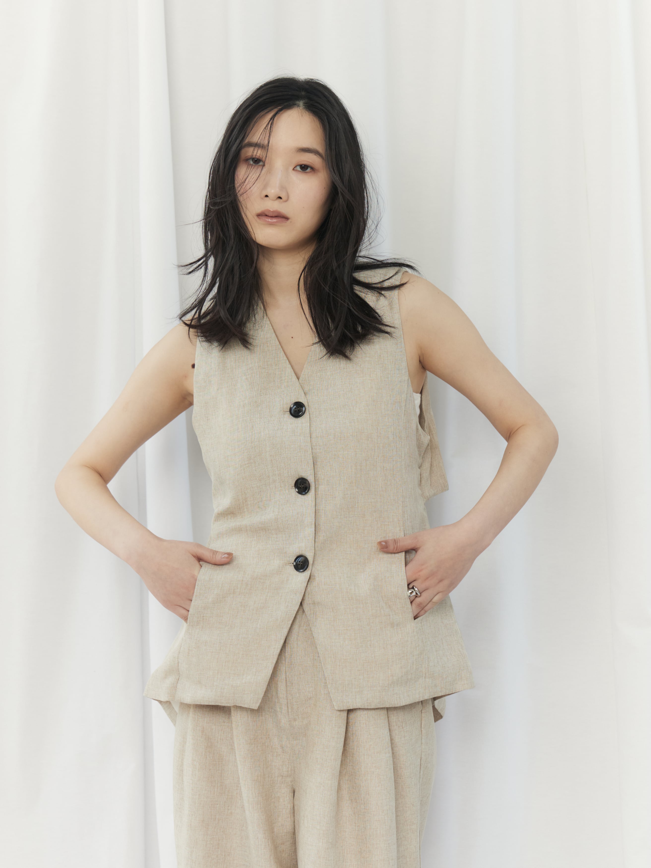 LINEN LIKE BACK OPEN VEST(リネンライクバックオープンベスト)【3276100】