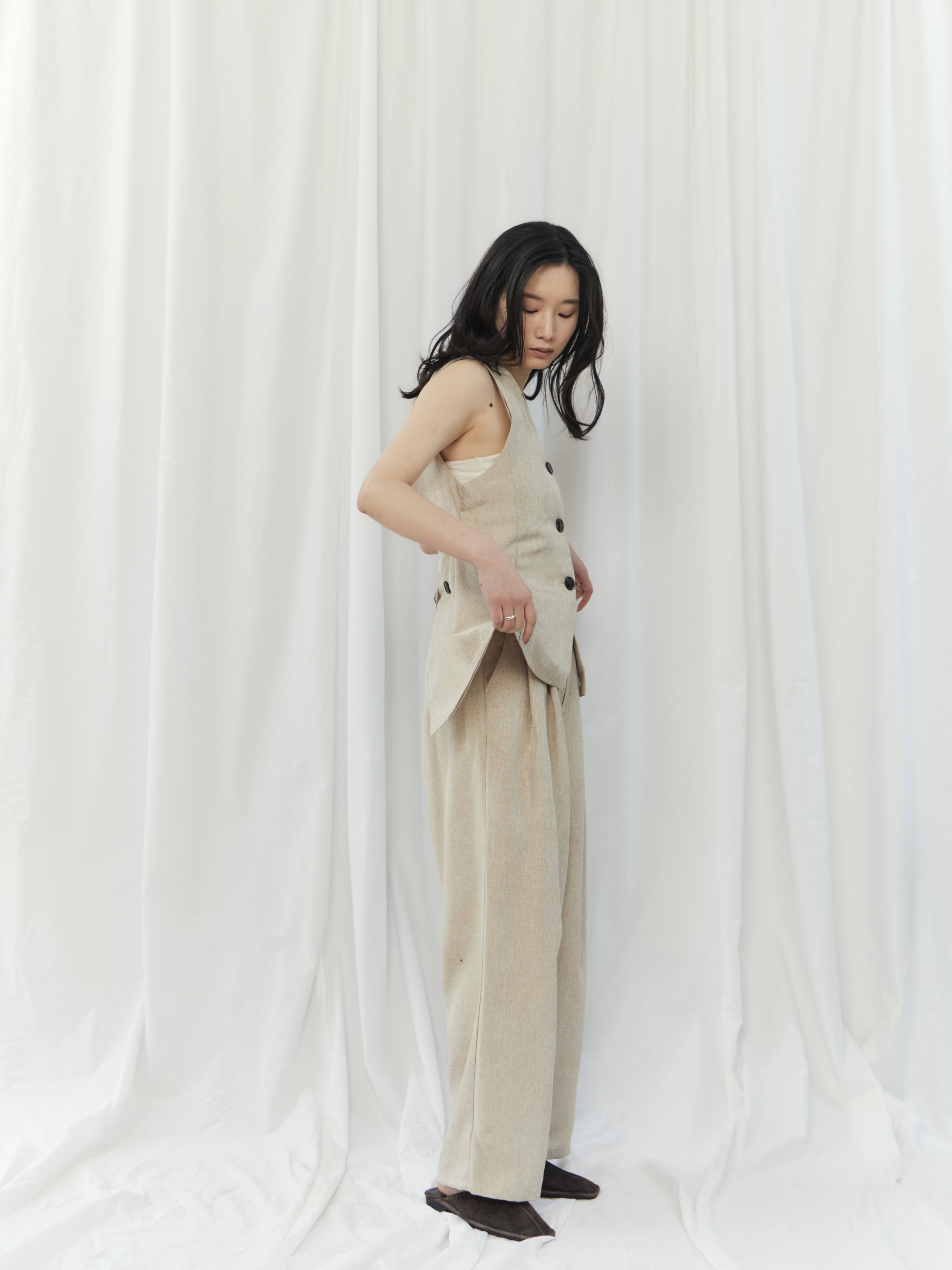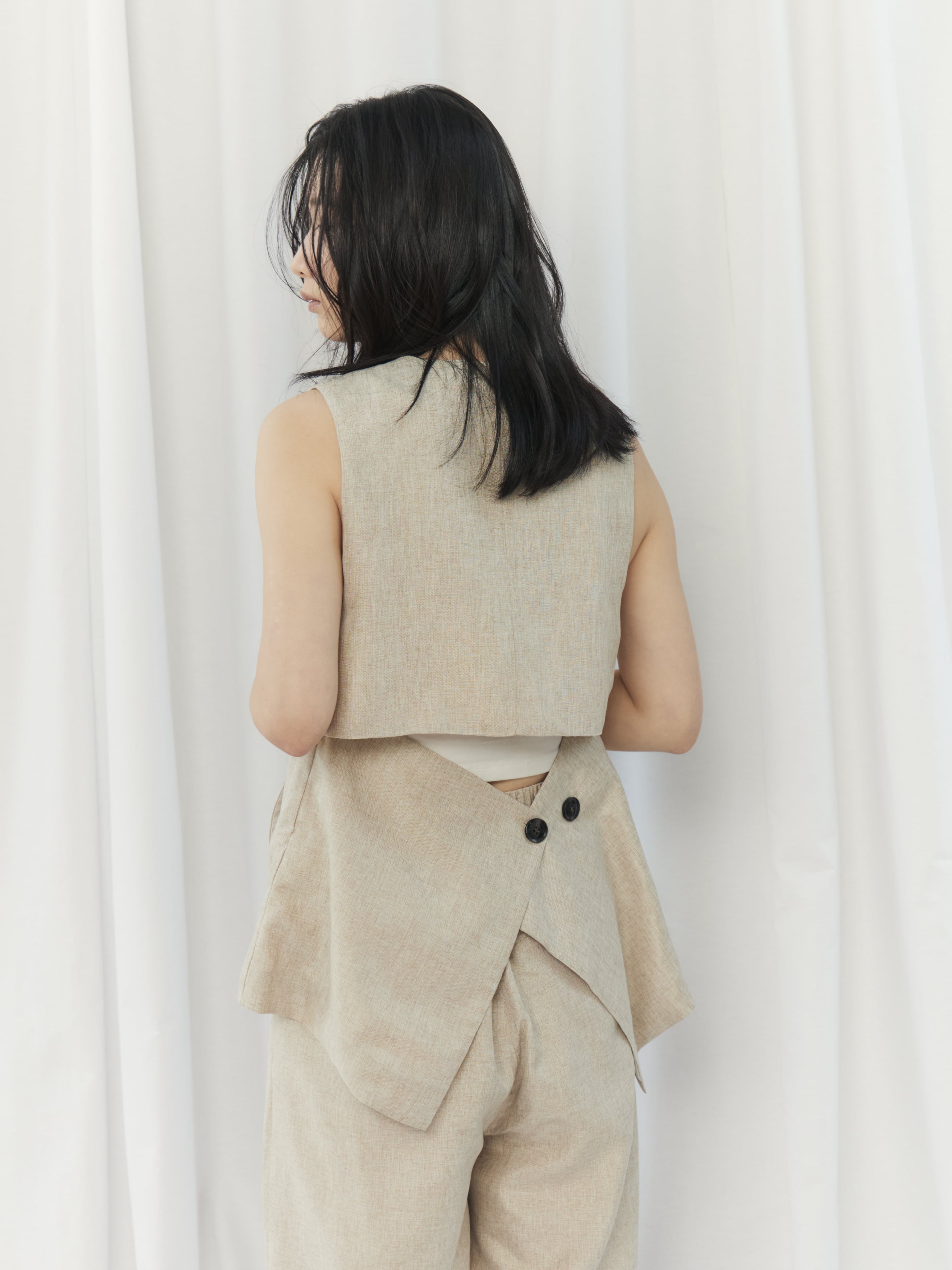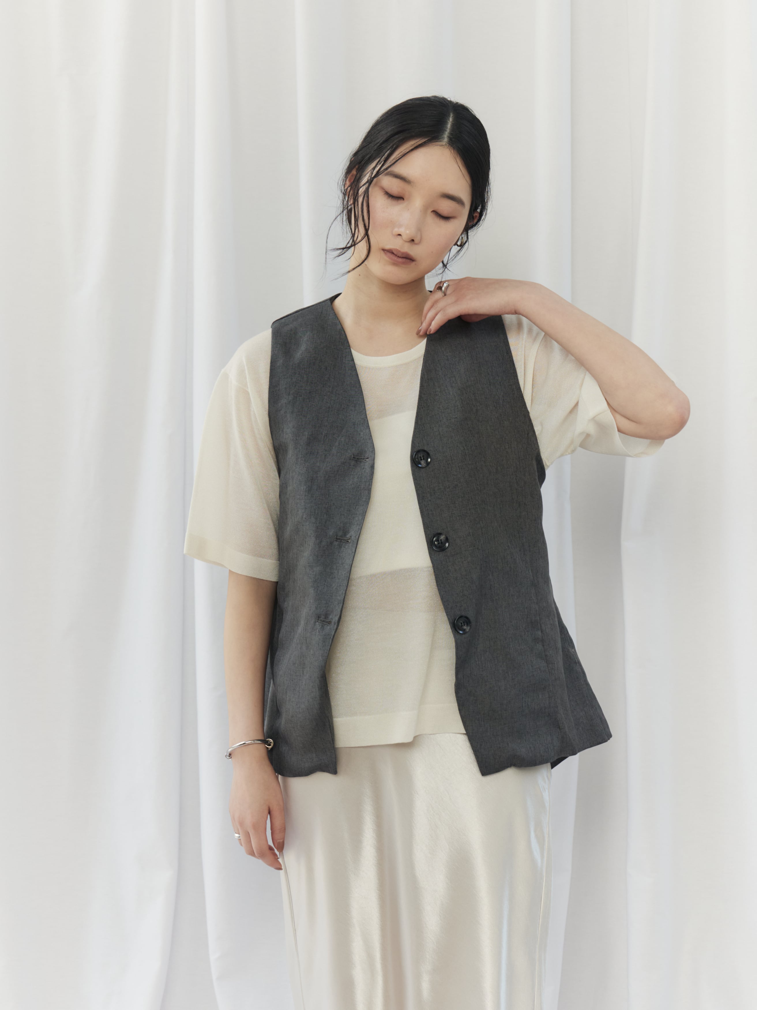 LINEN LIKE BACK OPEN VEST(リネンライクバックオープンベスト)【3276100】