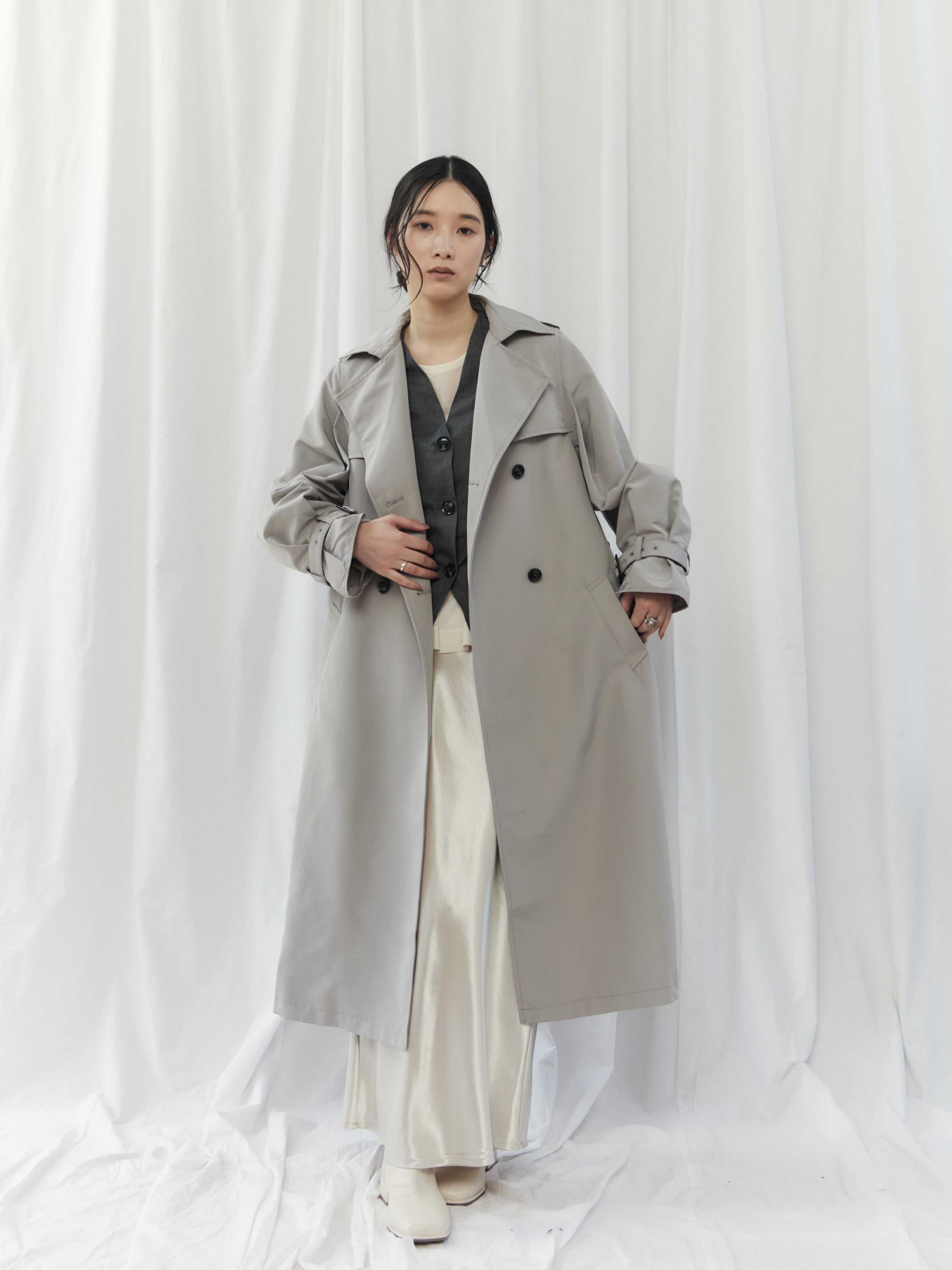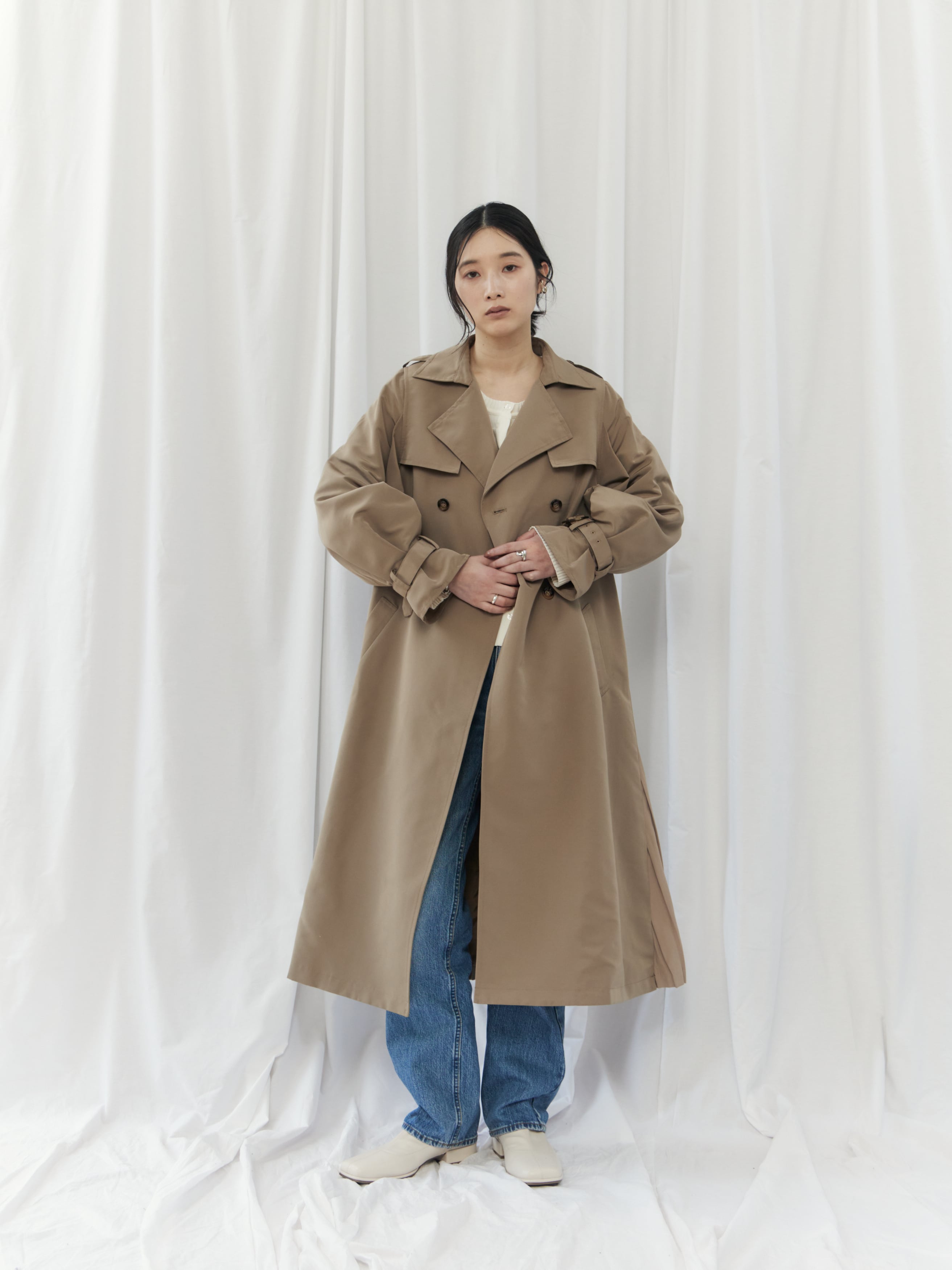 ロング丈の存在感を活かし、シンプルなインナーと合わせることでバックプリーツの美しさが際立つ着こなしに仕上がります。デニムやワイドパンツと合わせれば程よく力の抜けた大人のカジュアルスタイルに、ナロースカートやロングスカートと合わせると縦のラインが強調され、洗練された女性らしい印象に。前を開けて羽織ることで軽やかで動きのあるシルエットが生まれ、ベルトでウエストマークすればメリハリのある上品な雰囲気に。ワントーンコーデの上から重ねると、後ろ姿のプリーツがさりげないアクセントとなり、シンプルながら印象的なスタイルが完成します。
