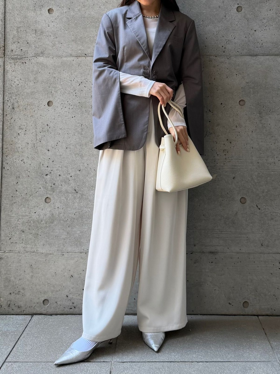 落ち感のある素材と縦のラインが得意なストレートさんにぴったり。トップスはジャストサイズ〜ややコンパクトなものを合わせると、すっきりとした着こなしに。