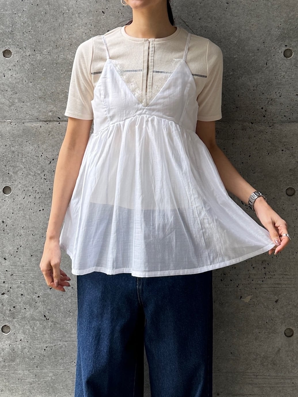 一枚でさらっと着るのはもちろん、ジャケットやキャミソールのインナーとしても活躍するアイテム。ワイドパンツと合わせることでメリハリが生まれ、バランスの取れたスタイリングに仕上がります。デニムと合わせてラフに着こなしたり、タイトスカートと合わせて女性らしくまとめるのもおすすめ。シンプルなデザインだからこそ、小物やレイヤードで幅広い着こなしが楽しめます。