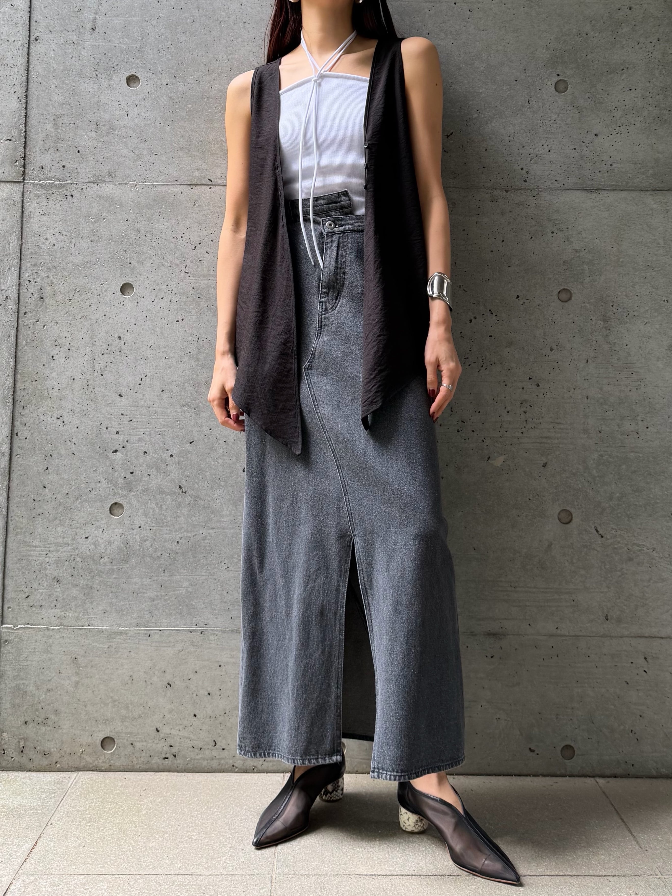 前後を逆にしてジレ風に着たり、華奢なインナーをレイヤードするスタイリングがおすすめです。