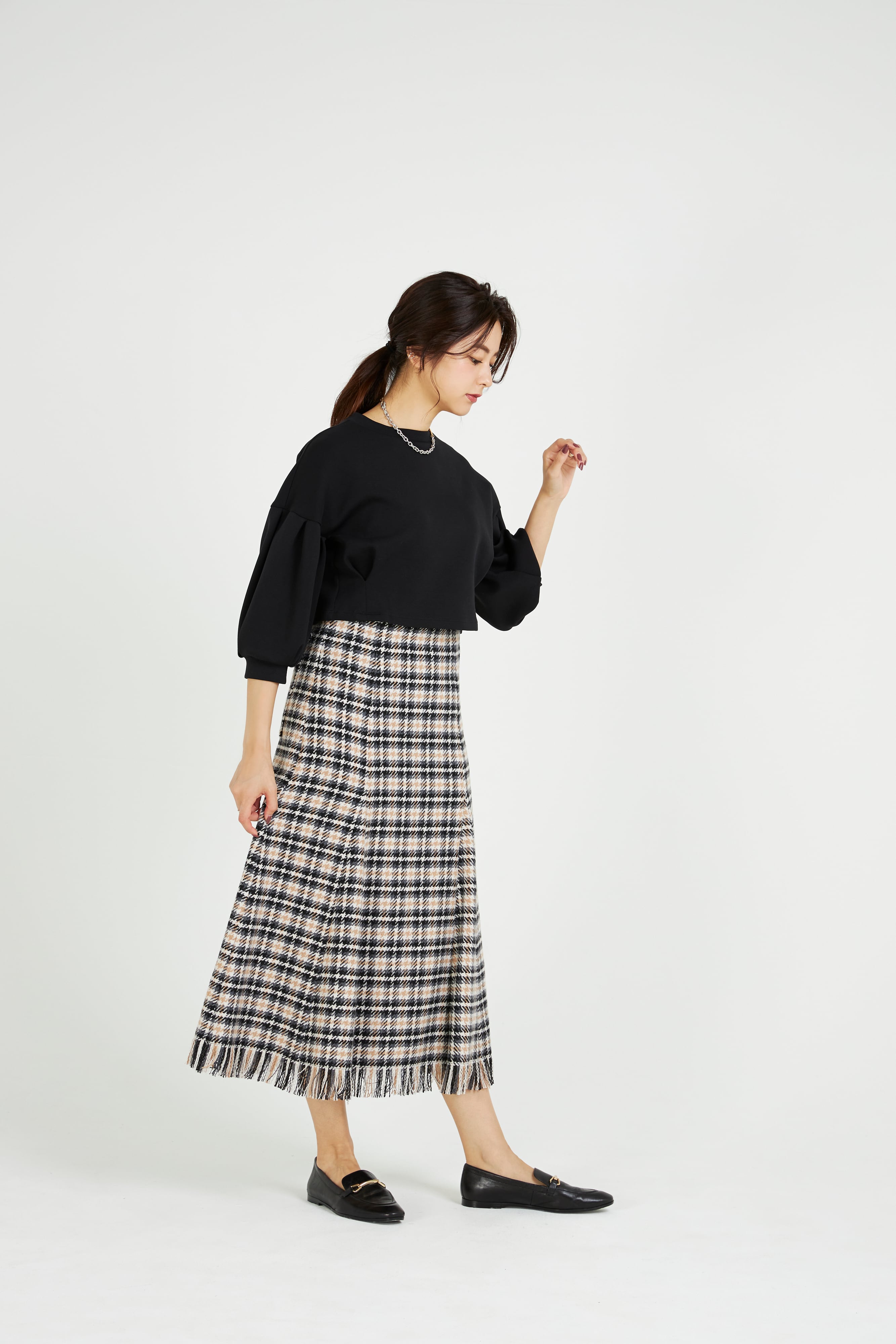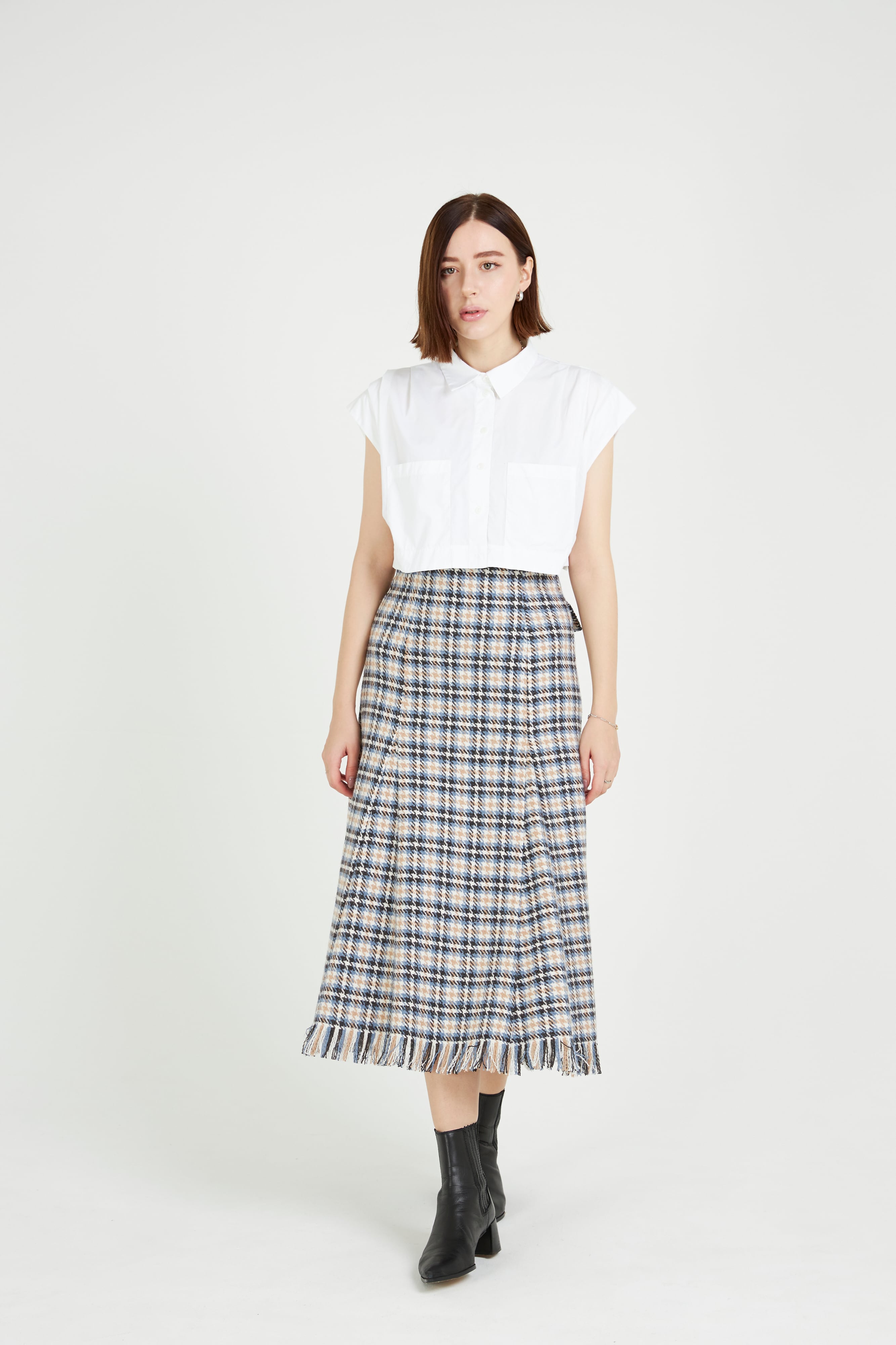 昨年度ご好評いただいておりました、チェックスカートをさらに洗練されたシルエットでリバイバル 。ウエストまわりがスラット痩せてみえるシルエットにこだわりました。肉厚素材でこれからの時期に活躍。サイドチャックが目立ちにくく、inしてもoutしても着まわせます。