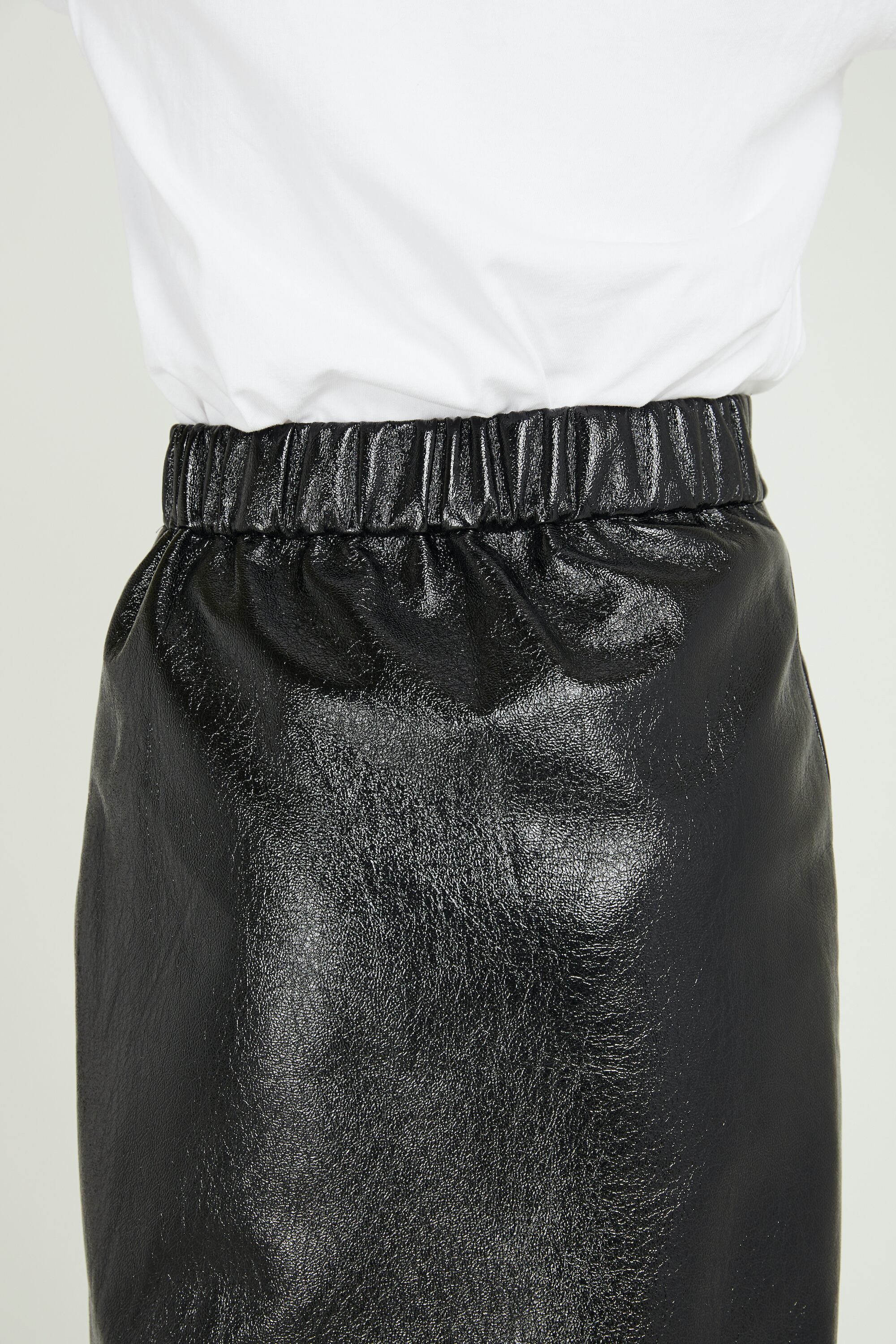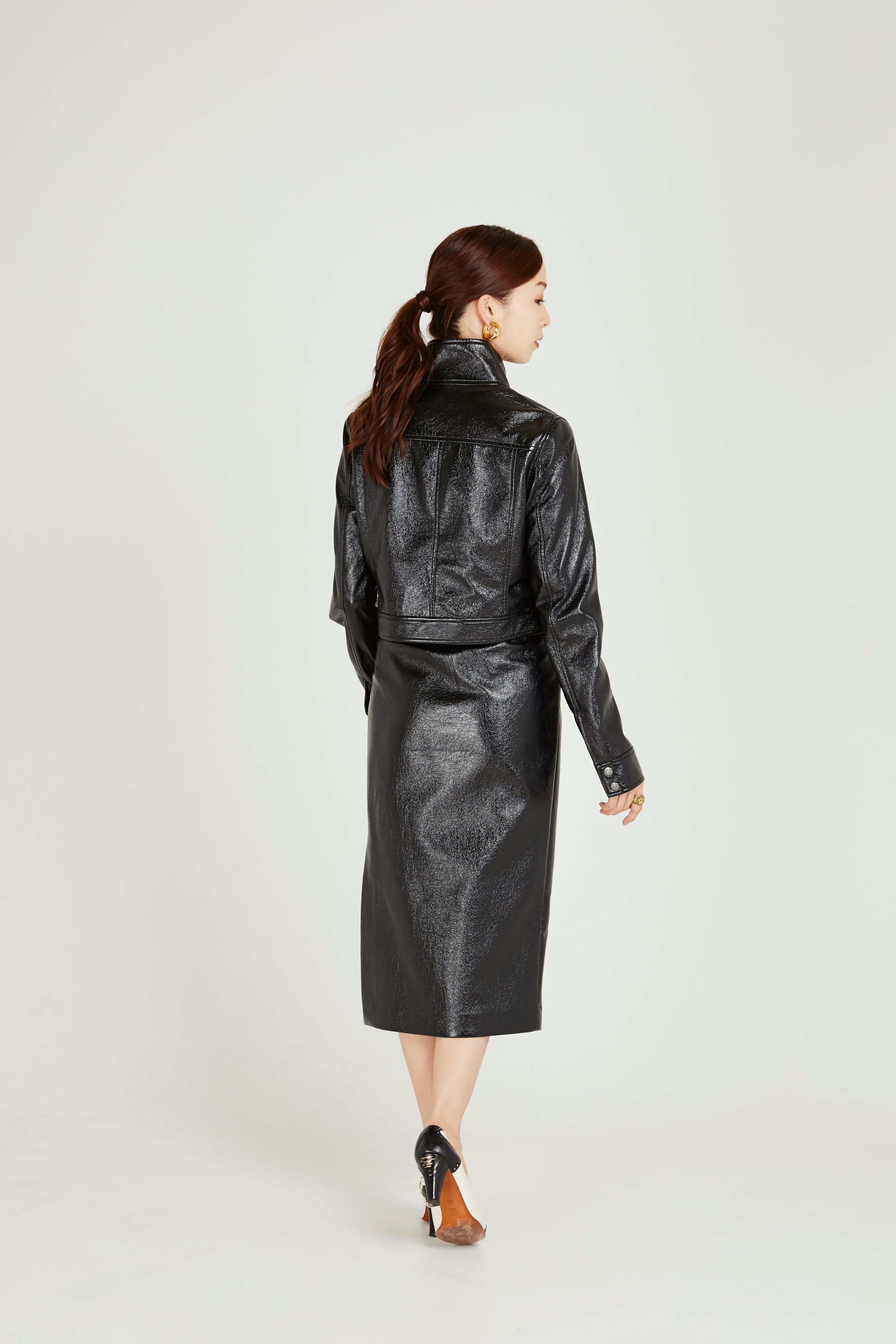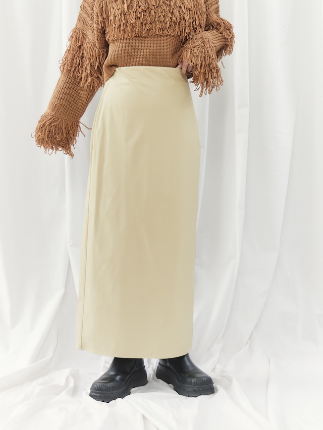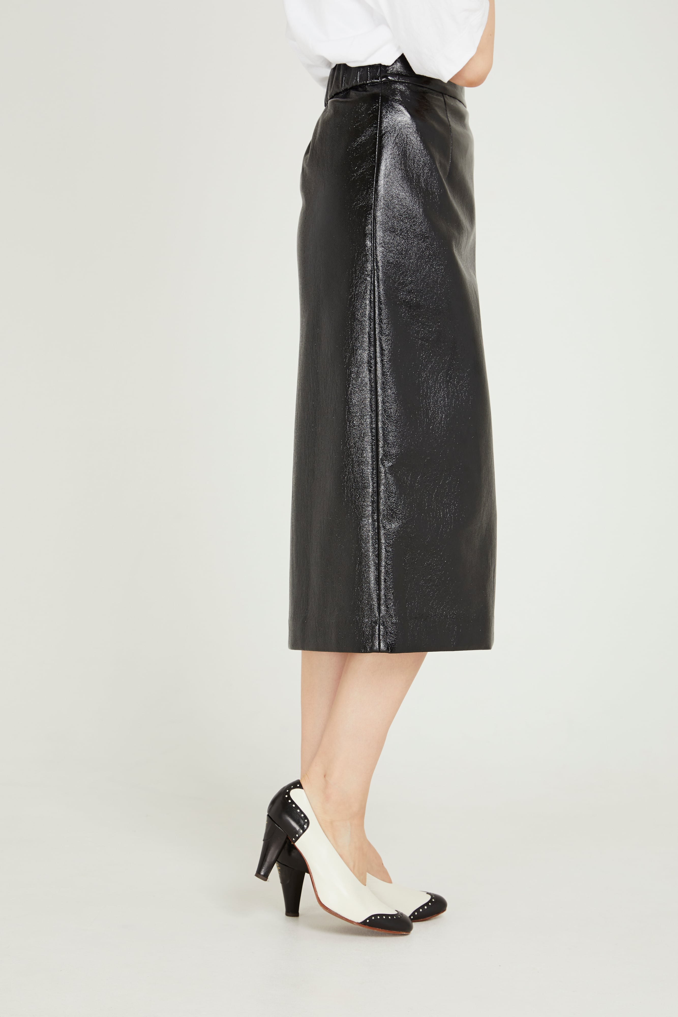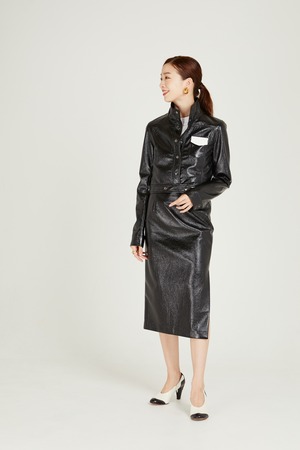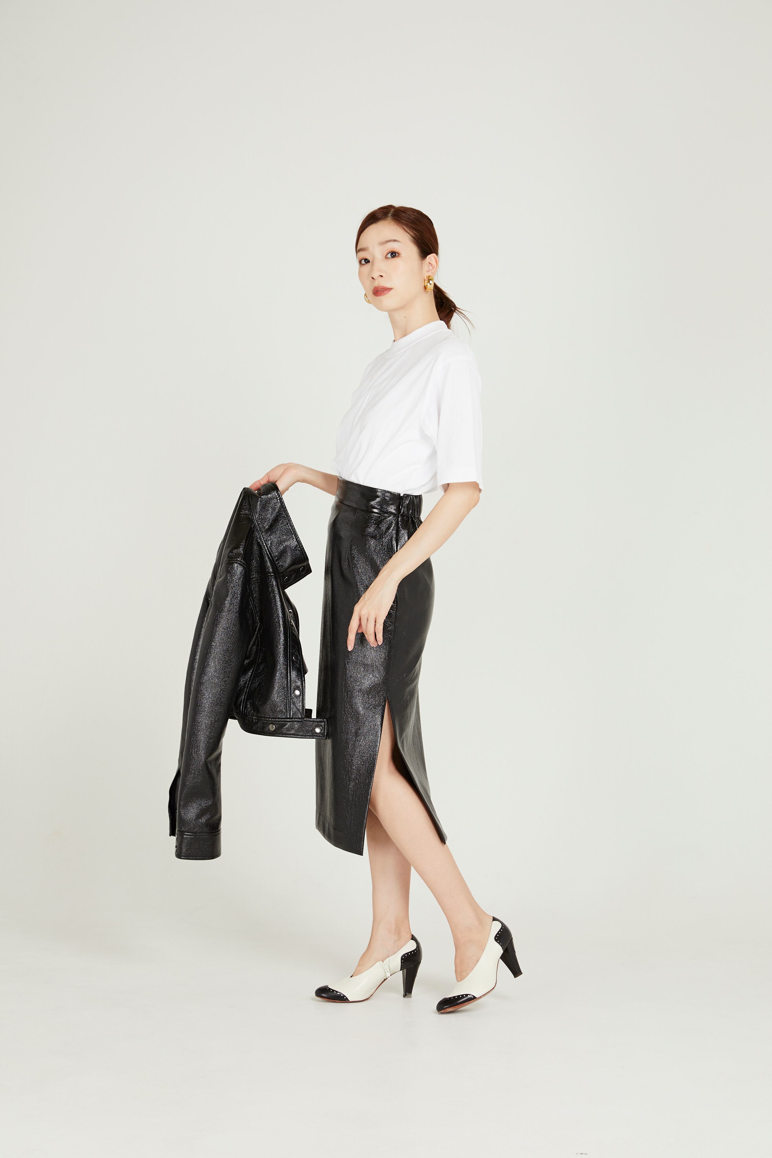 サイドスリットで美脚ラインを演出してくれるペンシルスカート。エナメル素材が今年らしさを加速させます。シンプルなルックスでスニーカーやブーツなど幅広いシューズとの合わせを楽しめます。