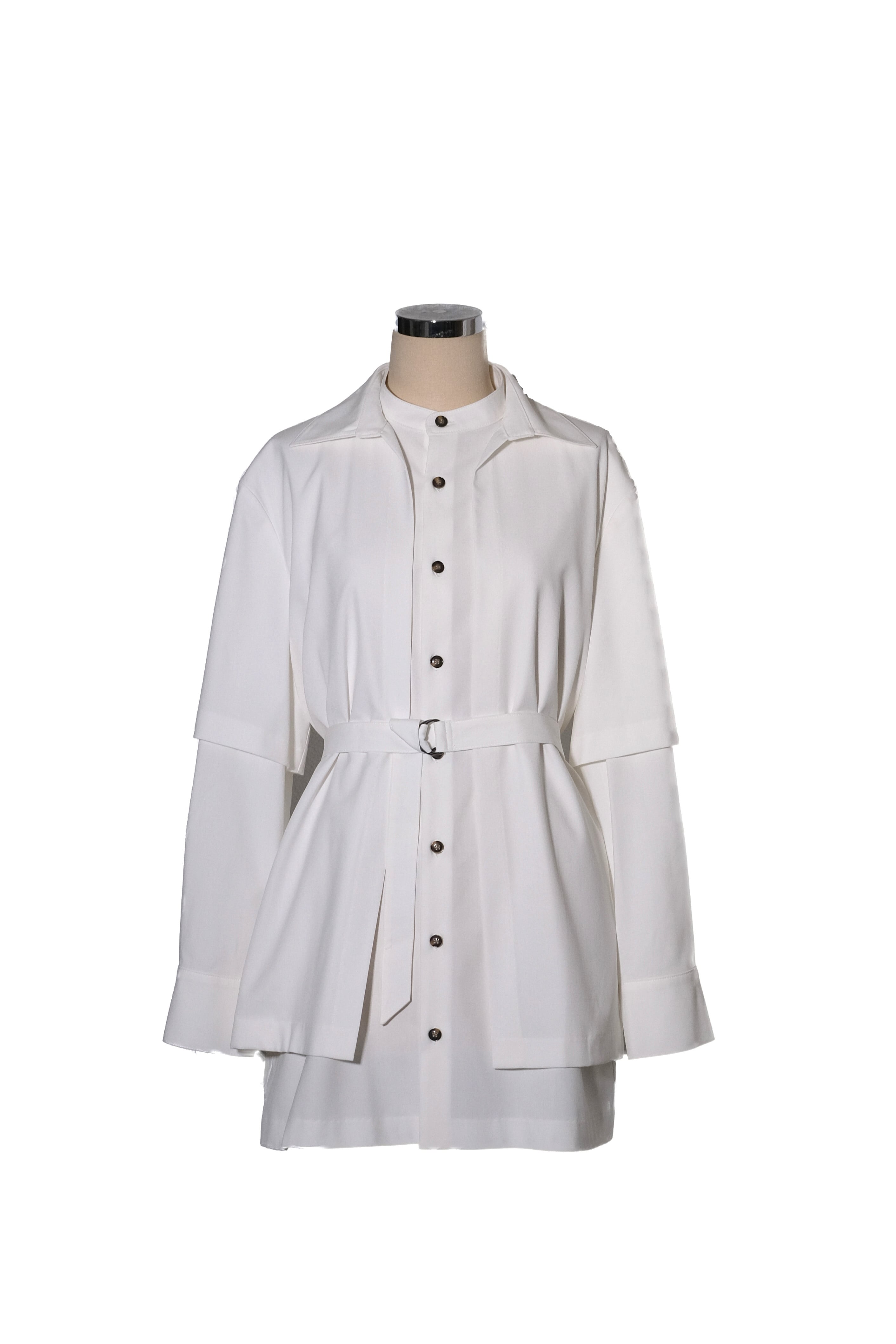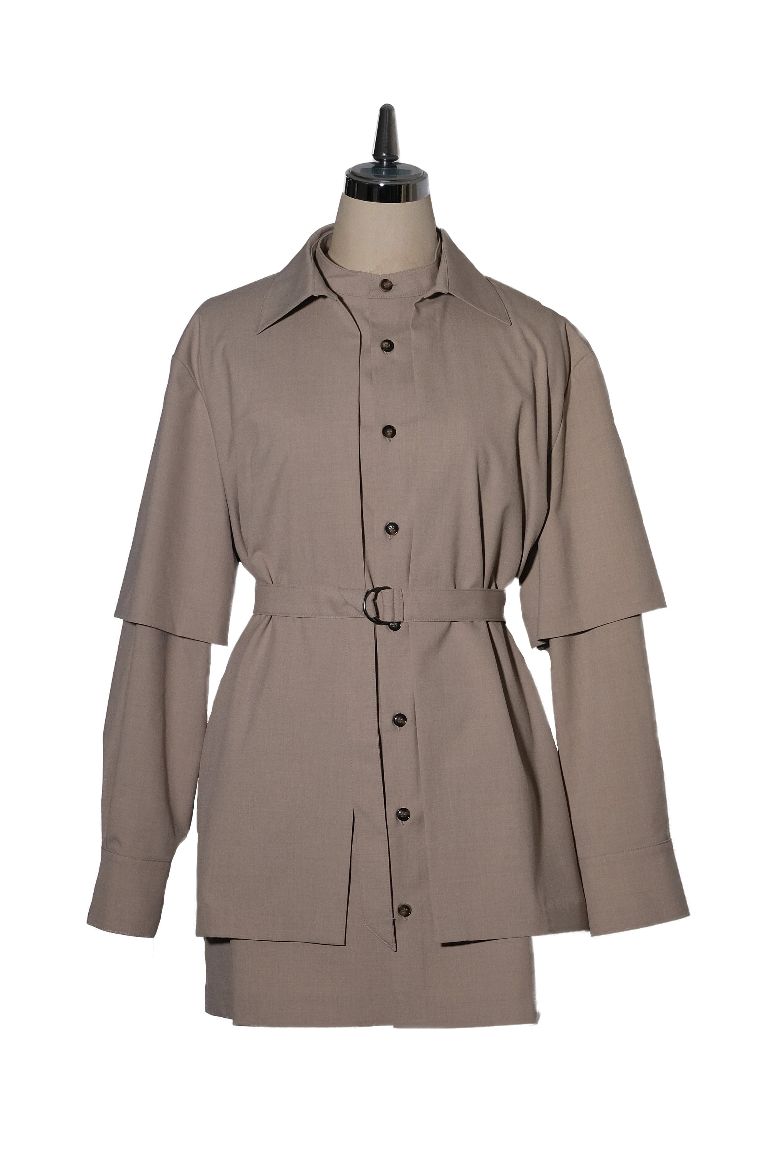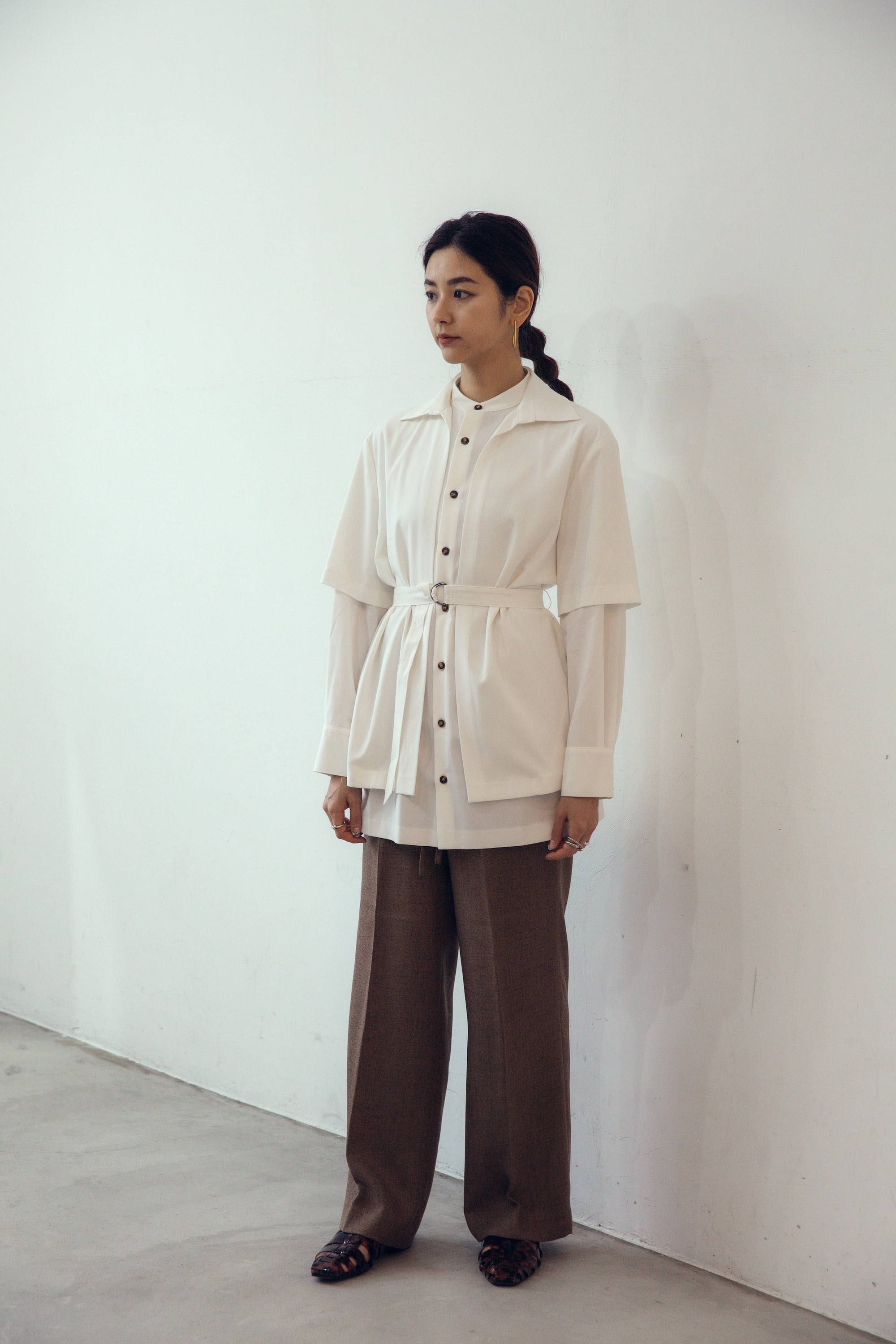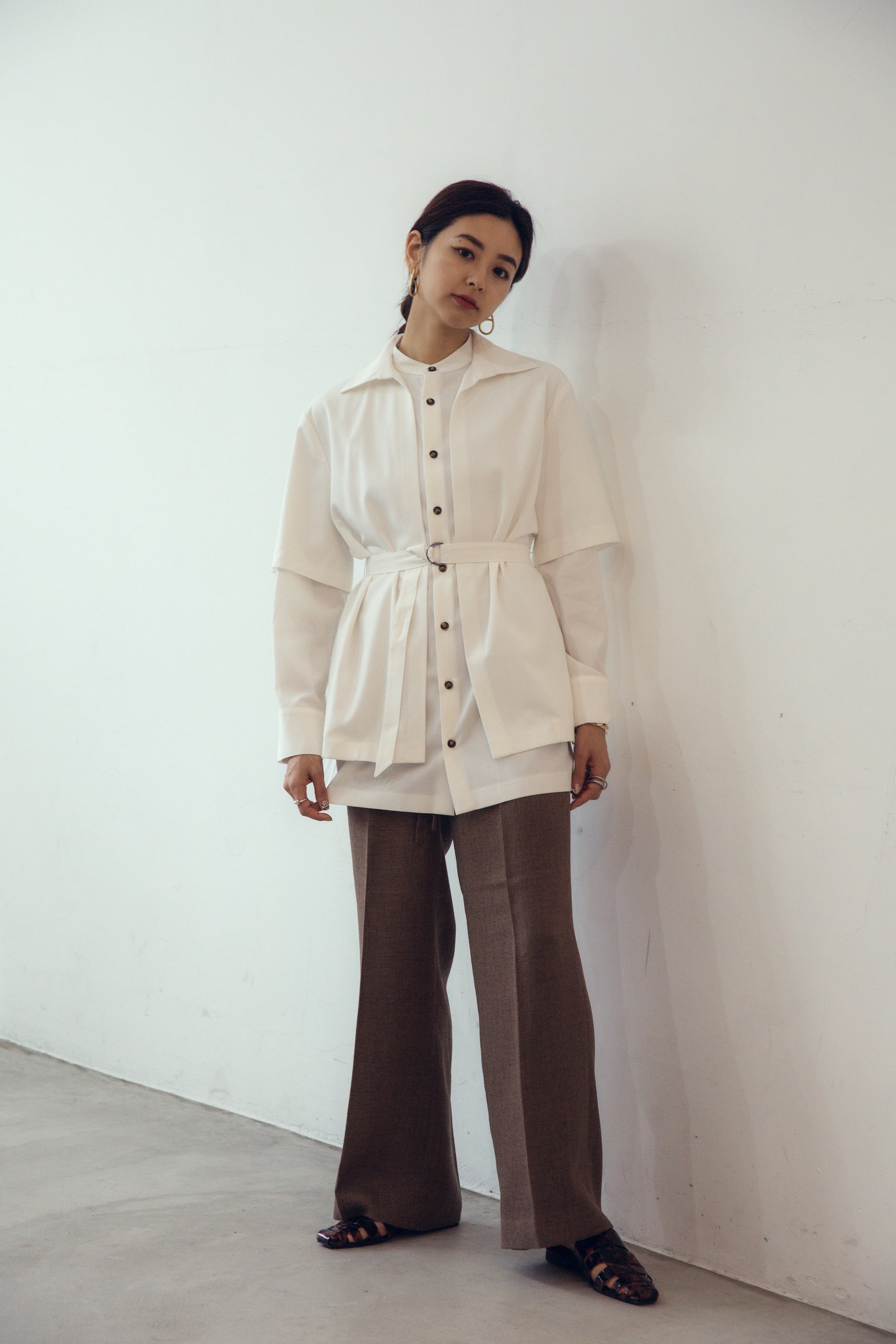 ストレートタイプの方はベルトをして、首元のボタンを2つほどお外しいただくと上半身をすっきりと見せてくれます!