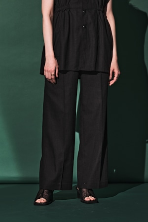 フロントはすっきりと、後ろのみゴムになってるのでフィット感も◎INしたスタイリングでハイウエストなスタイリングをお楽しみください。