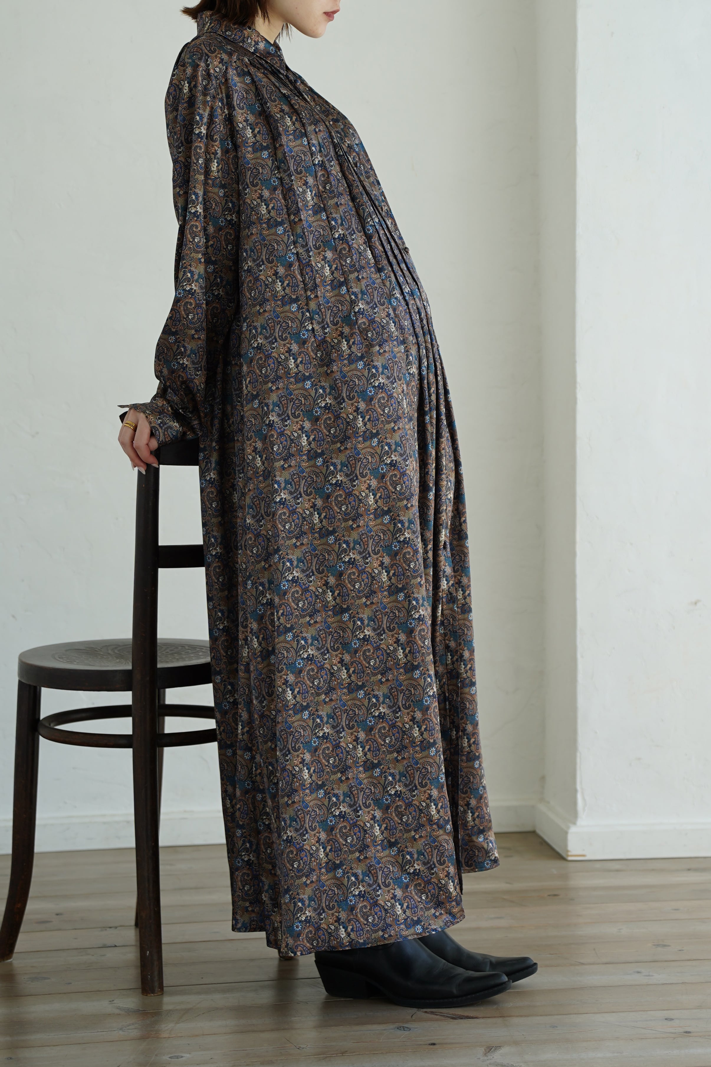 ヴィンテージ感溢れるペイズリー柄がぱっと目をひくドレスワンピ。CIEL'AIRオリジナルプリントがでたっぷりの生地で仕立てました。ふわっと広がるシルエットとボリュームでリッチ感漂いシティー使いはもちろんのことパーティーシーンでも活躍してくれます。贅沢なプリーツ加工で1枚でさらっと着ても着太りもせずご着用いただけます。