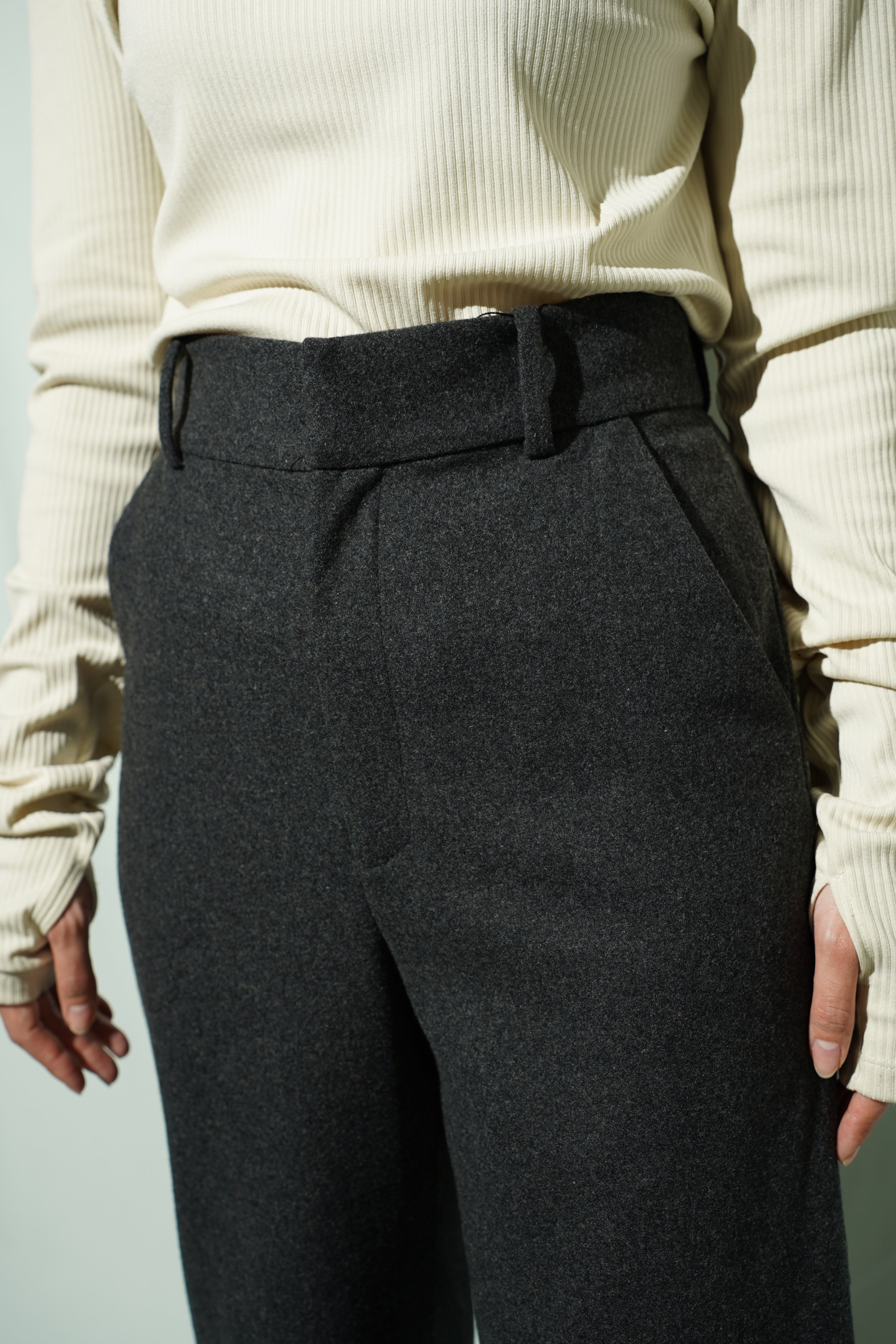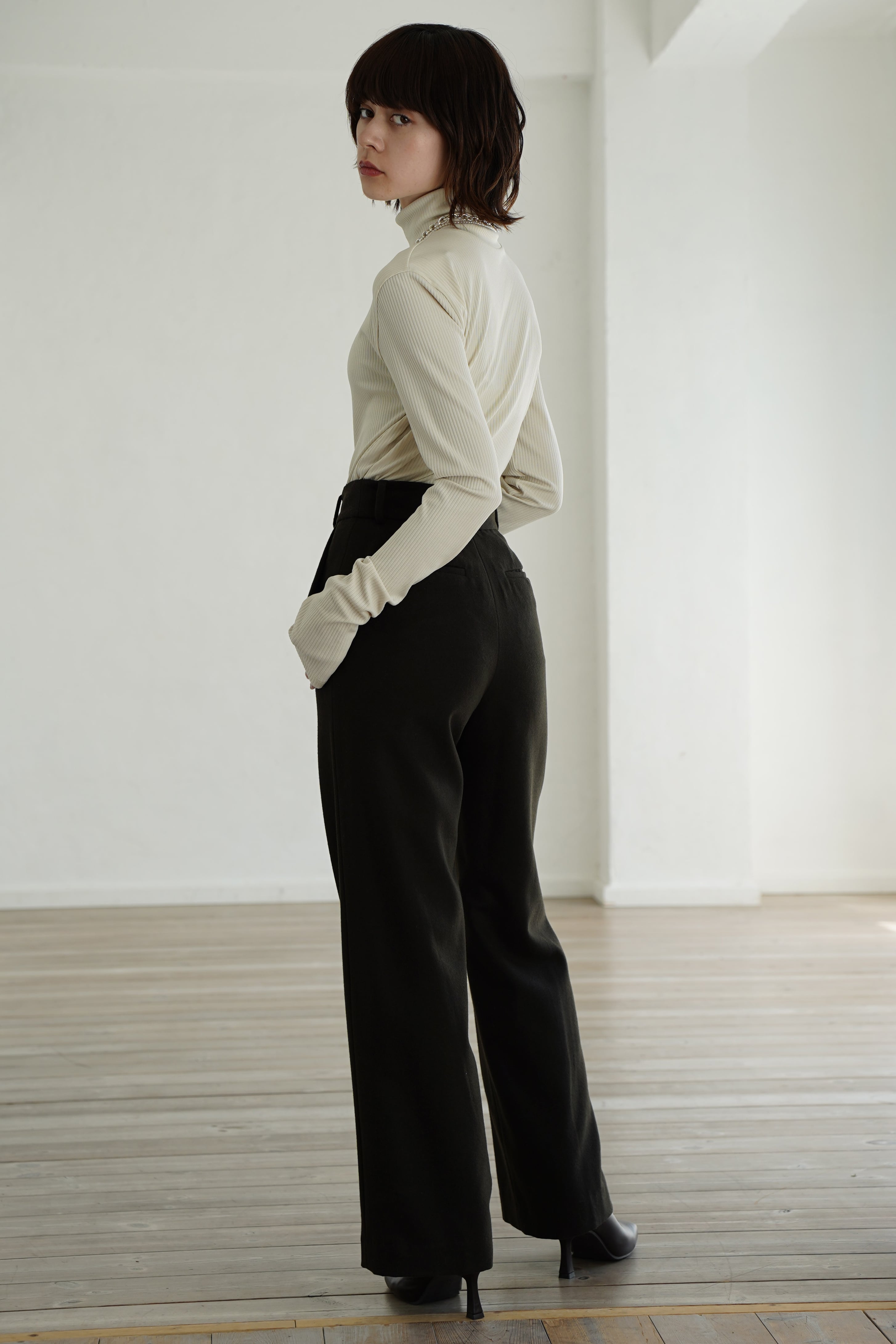 CIEL'AIR定番のバイカラーのセットアップパンツ。今シーズンは温かみある素材でスタイリッシュに展開。ワイドストレートなシルエットで美脚ラインを追求。股上も深く、腰回りもすっきりと魅せてくれます。裏地もしっかり付いているのでこれからの季節暖かく着用可能です◎