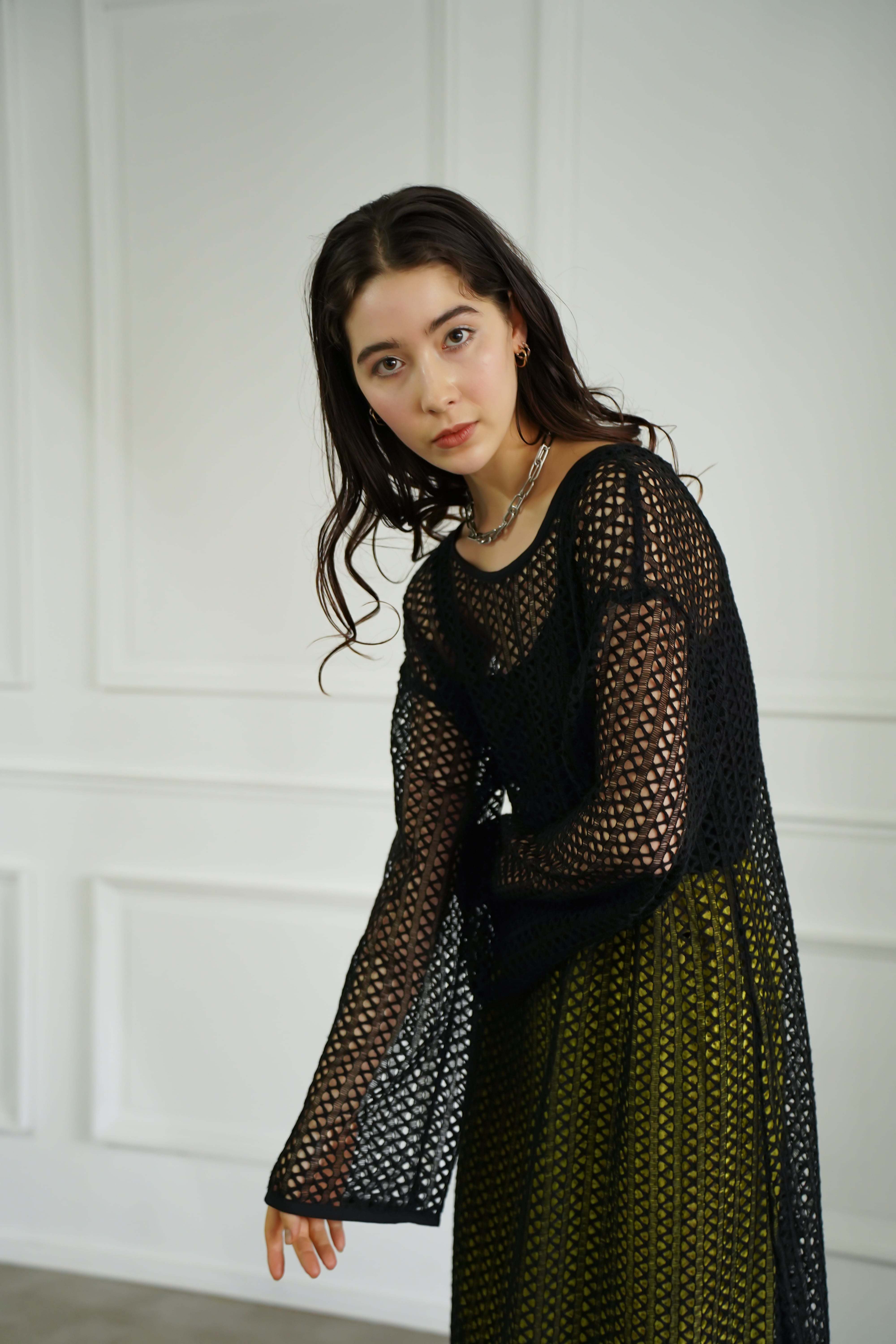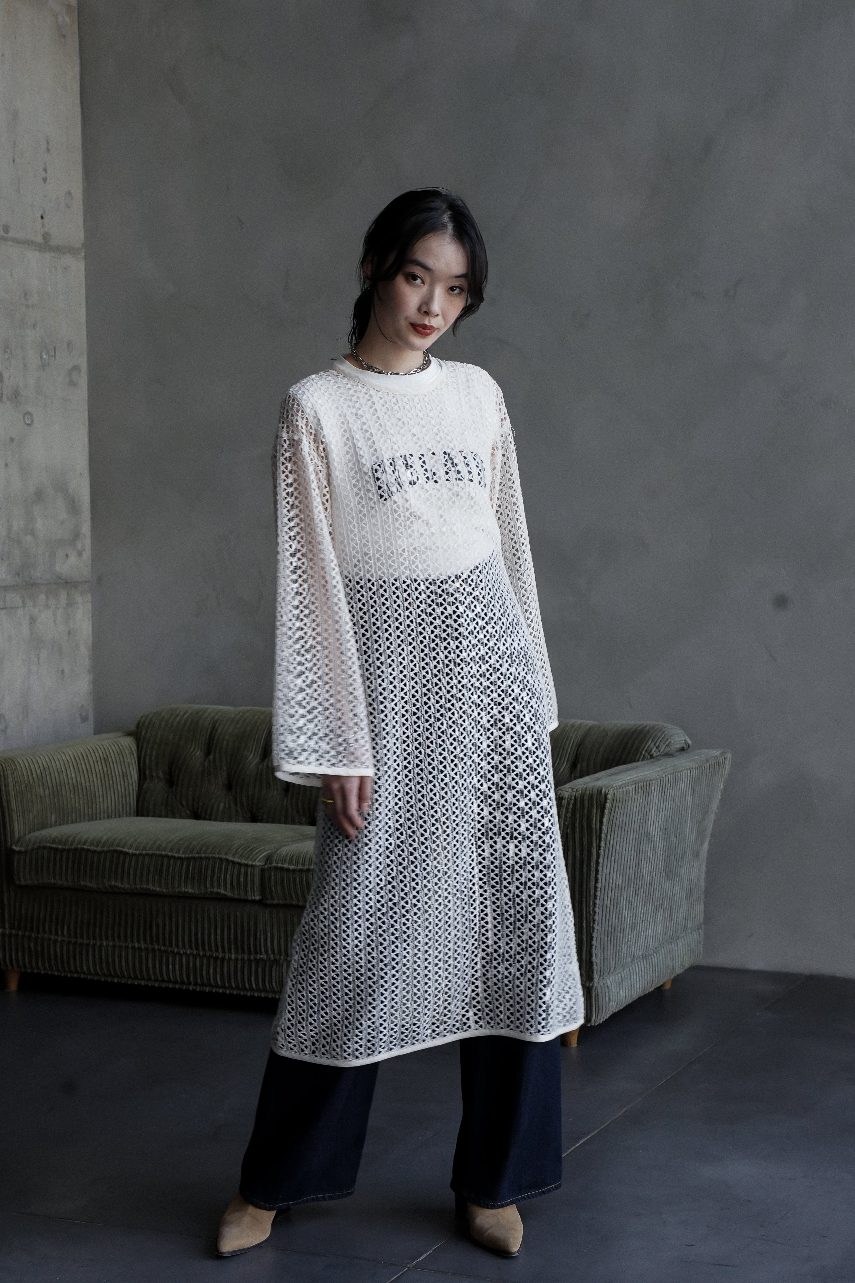 マルチにレイヤードスタイリング楽しめるクロシェ編み風の生地のフレアワンピースの登場です。袖にむかってふわっと広がるシルエットでざっくりとレイヤードスタイルが楽しめます。