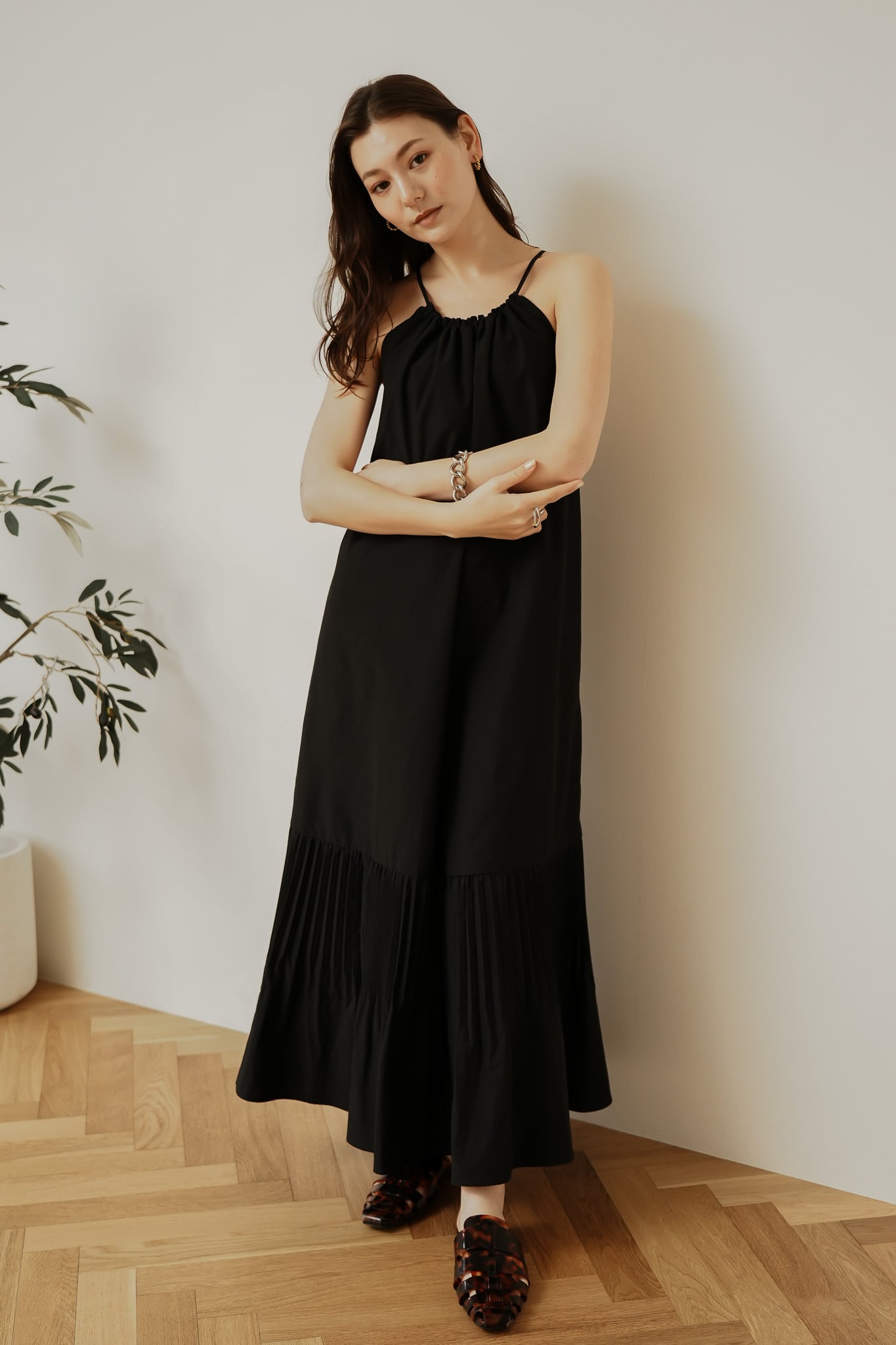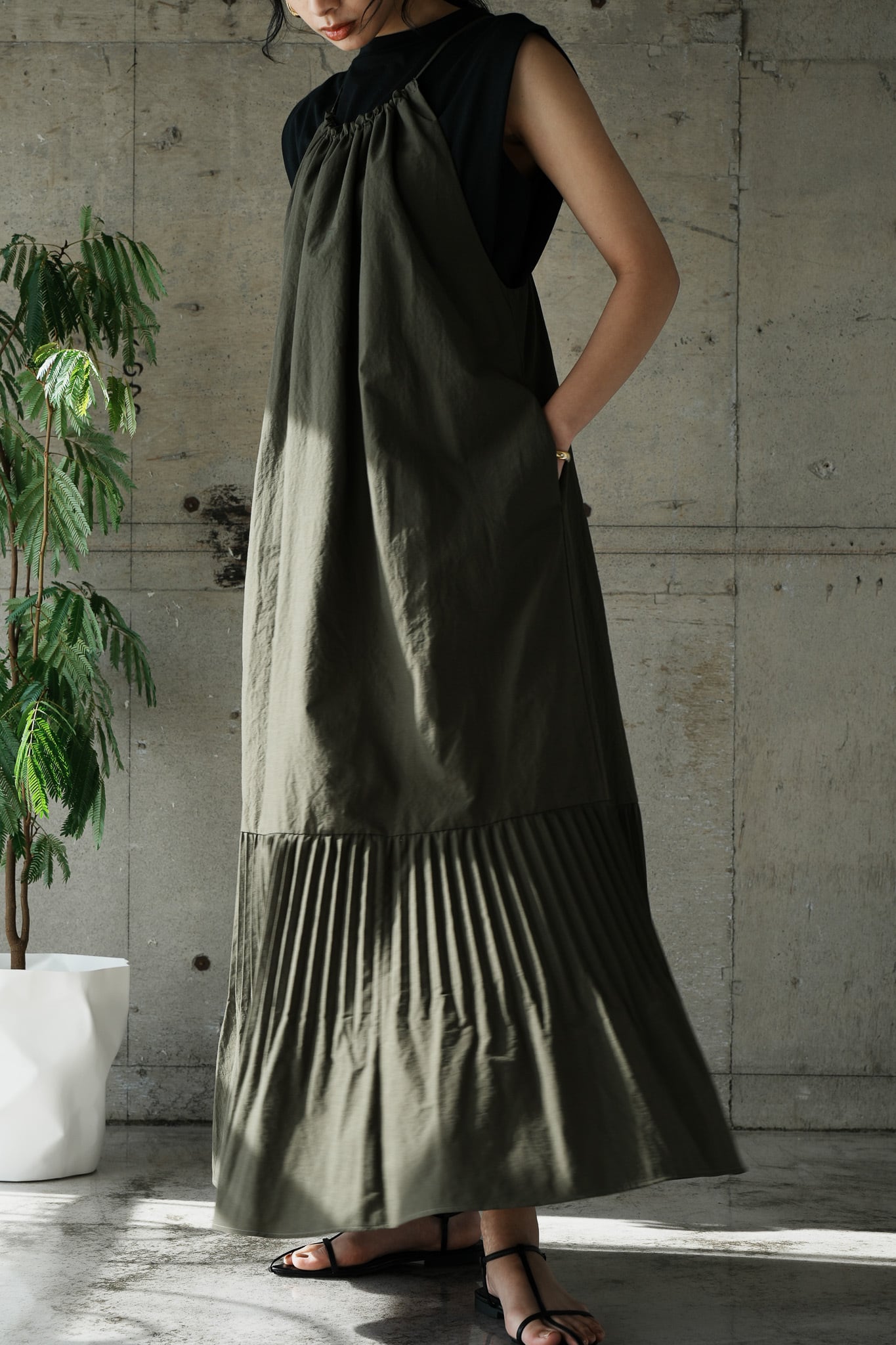 BACK OPEN PLEATED CAMIDRESS 【CA3S-O419】