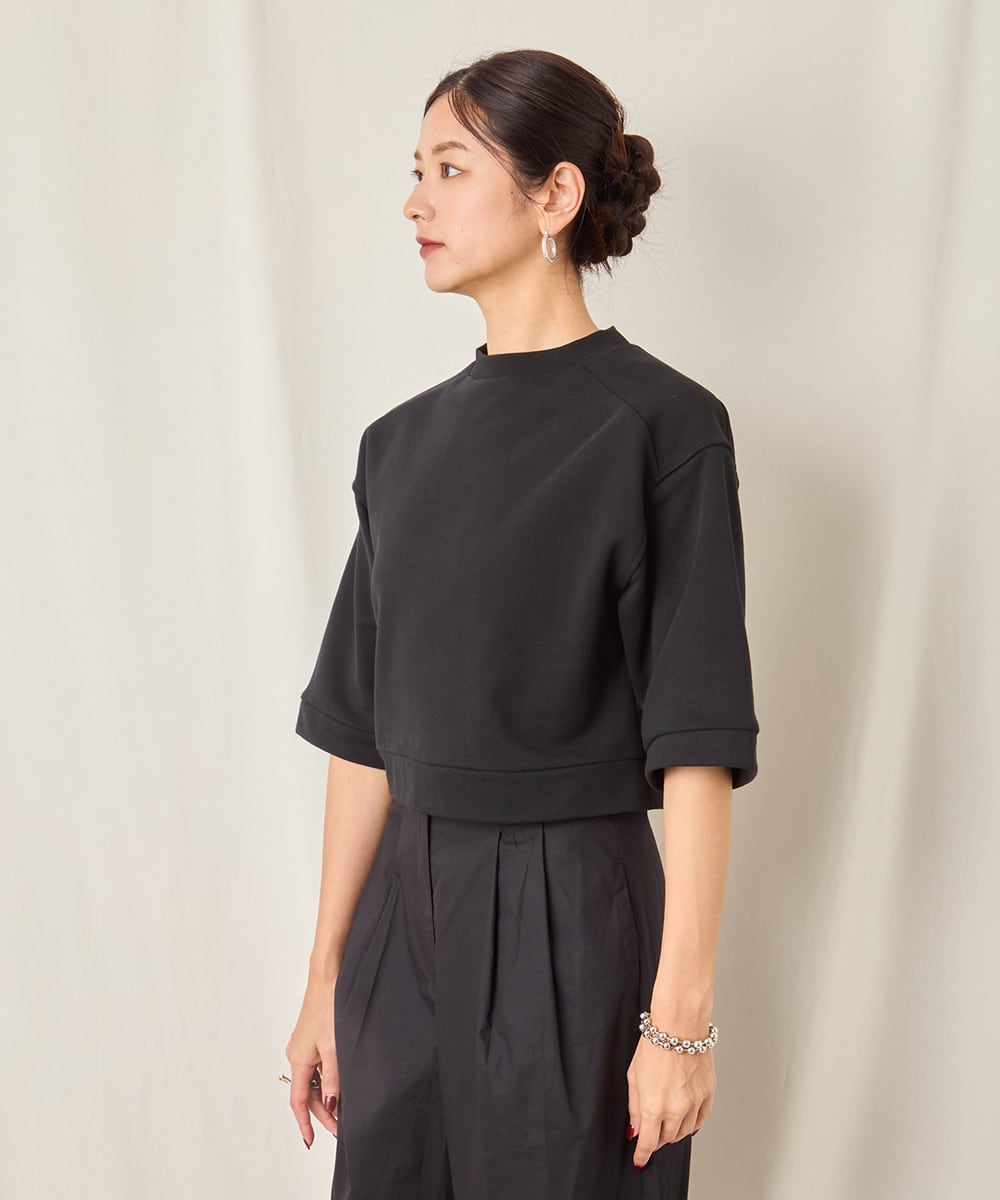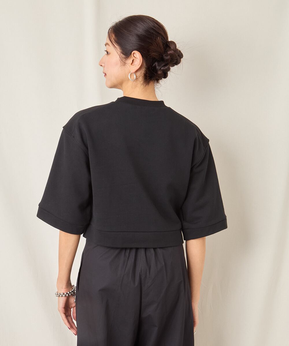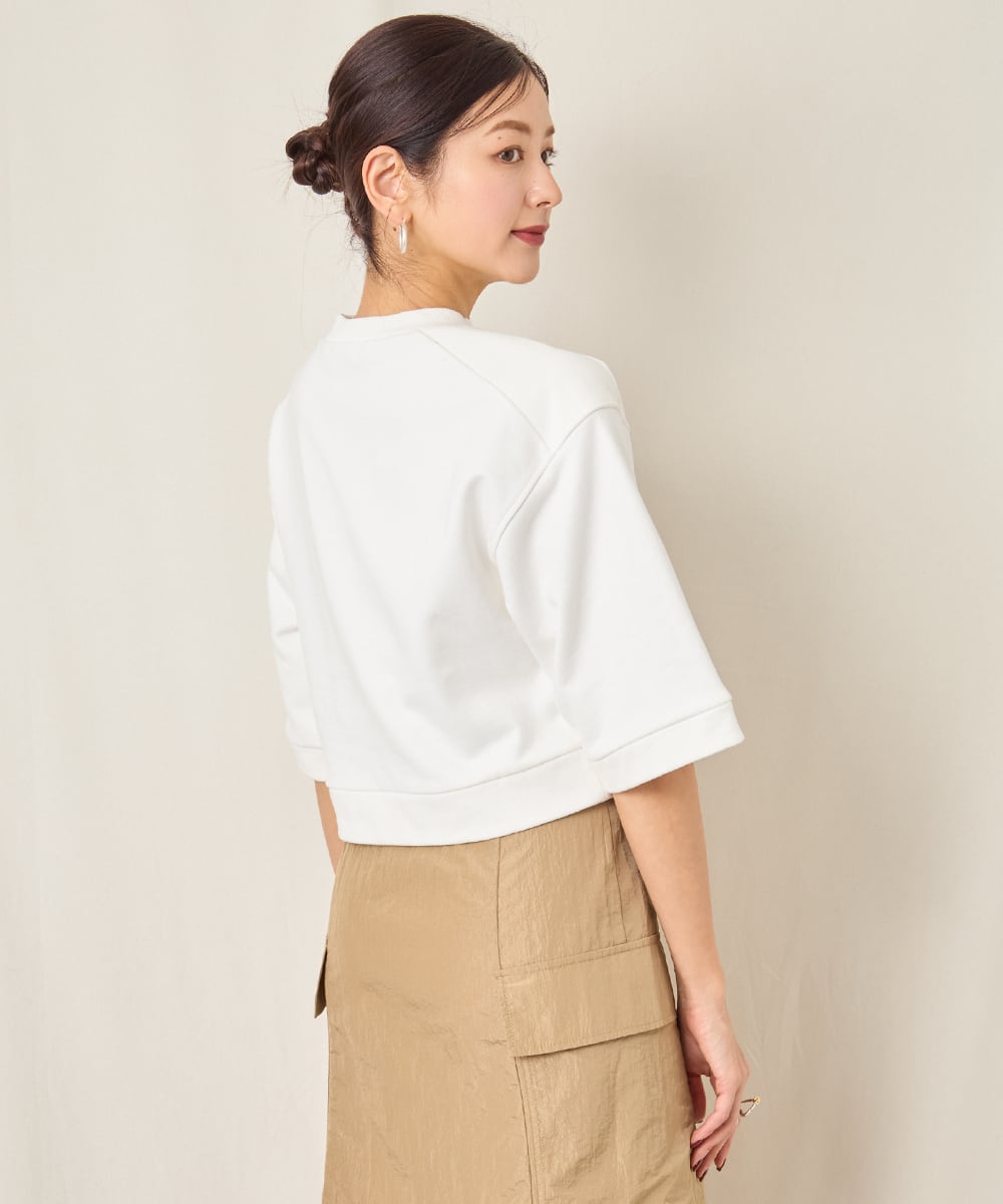 旬なショート丈トップスが足長効果抜群にスタイルアップ叶えます。中肉厚の素材で高魅せ効果あり、スカートやパンツなど幅広いアイテムとコーデ可能です。