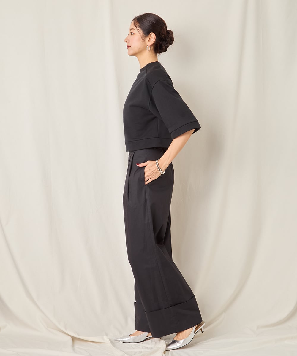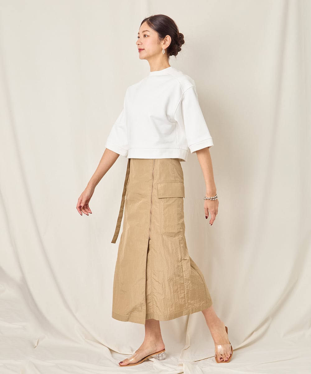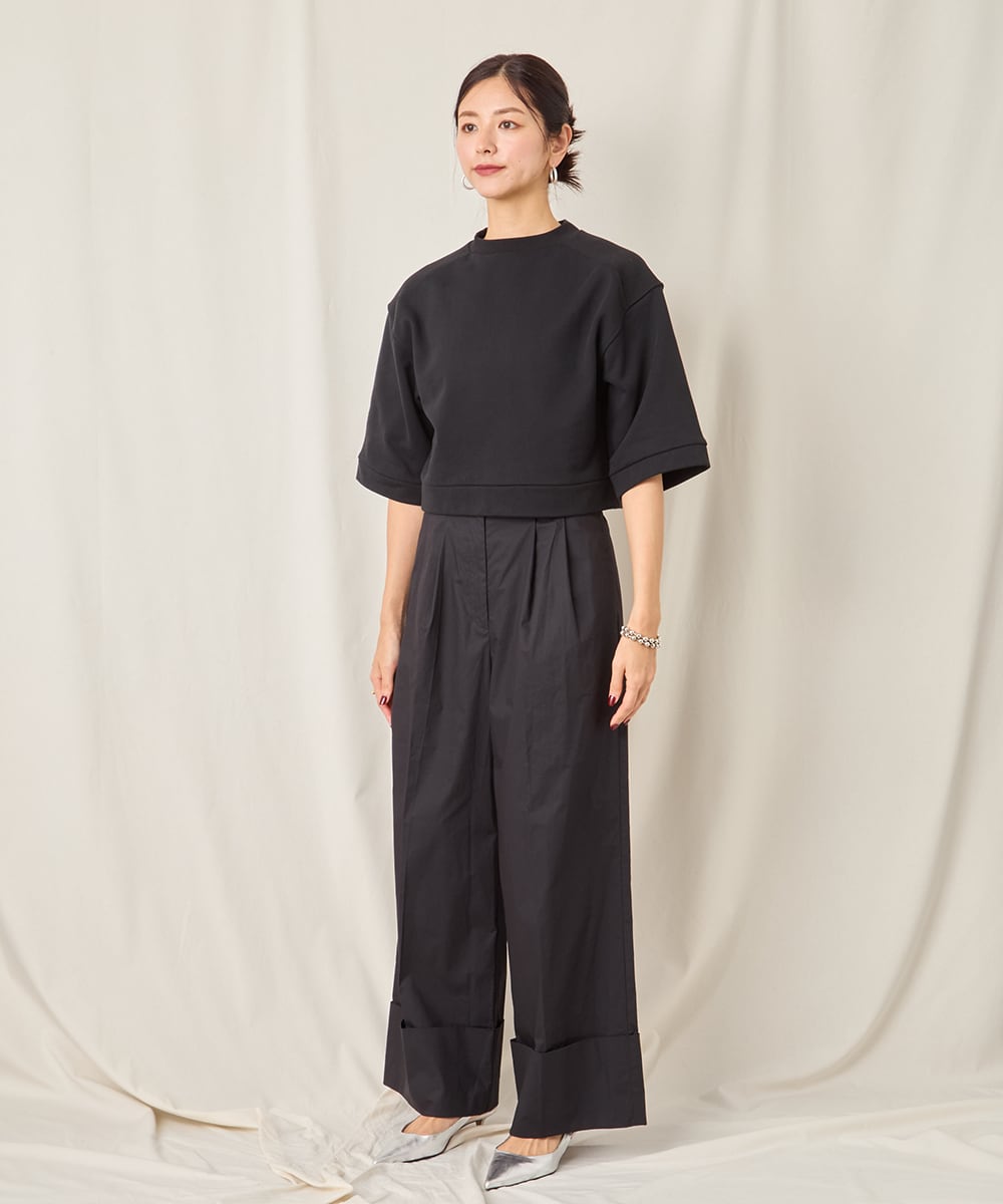 旬なショート丈トップスが足長効果抜群にスタイルアップ叶えます。中肉厚の素材で高魅せ効果あり、スカートやパンツなど幅広いアイテムとコーデ可能です。