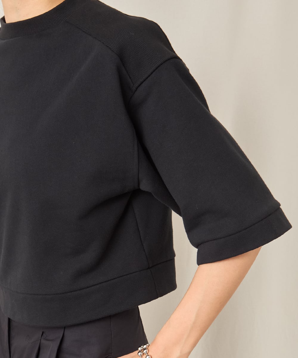 シンプルかつ無駄のないデザインで、合わせるアイテムを選ばすにスタイリング可能で◎6部丈のほどよいバランスで二の腕をほっそりと演出。肩部分はリブ異素材ミックスにしこだわりました。中肉厚の素材で長期にわたり活躍してくれます。
