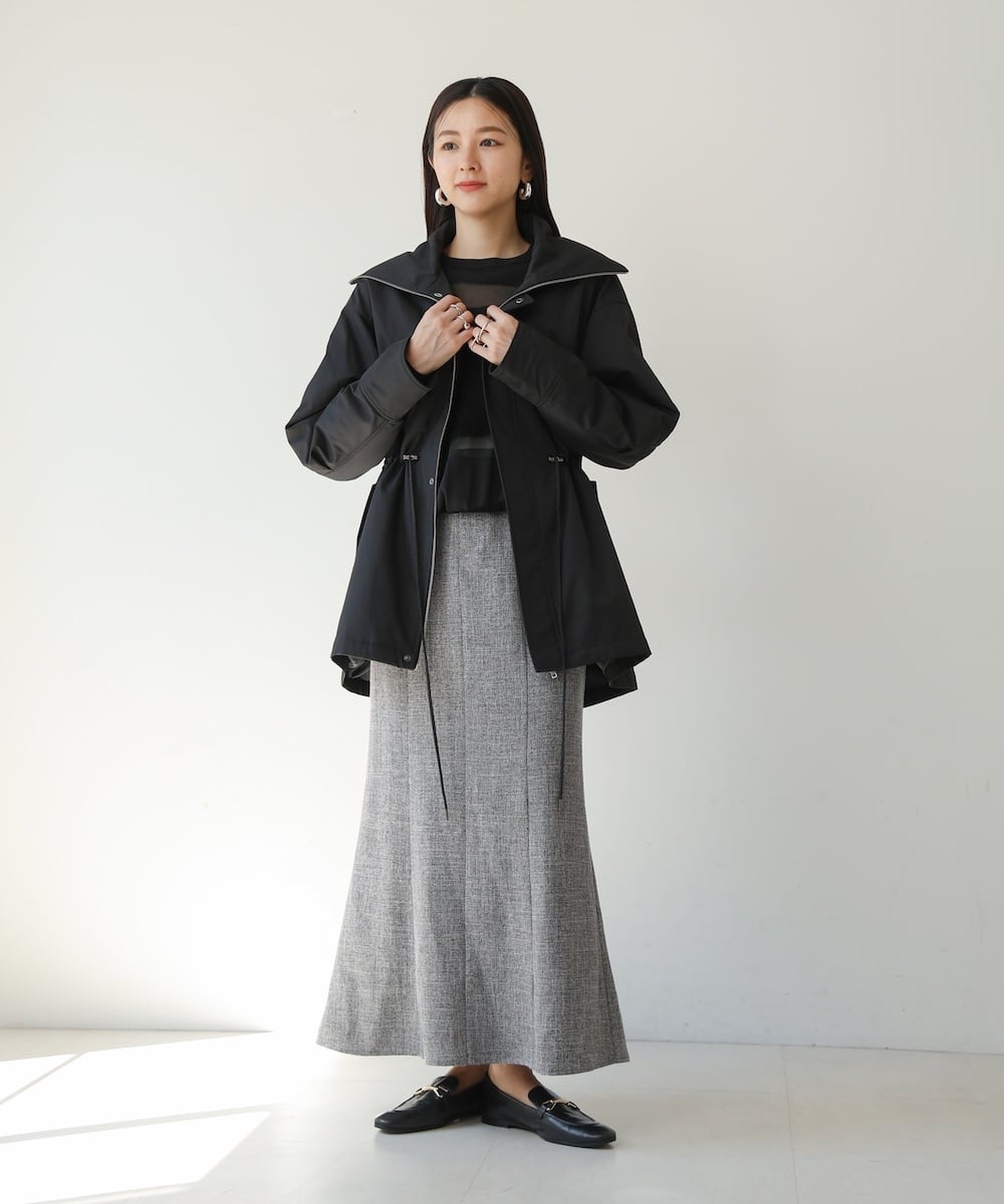 ・ハイウエストボトムのコーディネートが非常にお似合いなウェーブタイプさんはウエストを絞ることで大優勝アイテムです。絞られたアウターは着せられてる感を出さずにスタイルアップしてくれる優れもの。ワンピースやAラインのスカートなどと合わせたスタイリングもおすすめです。