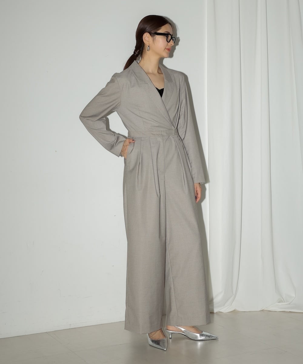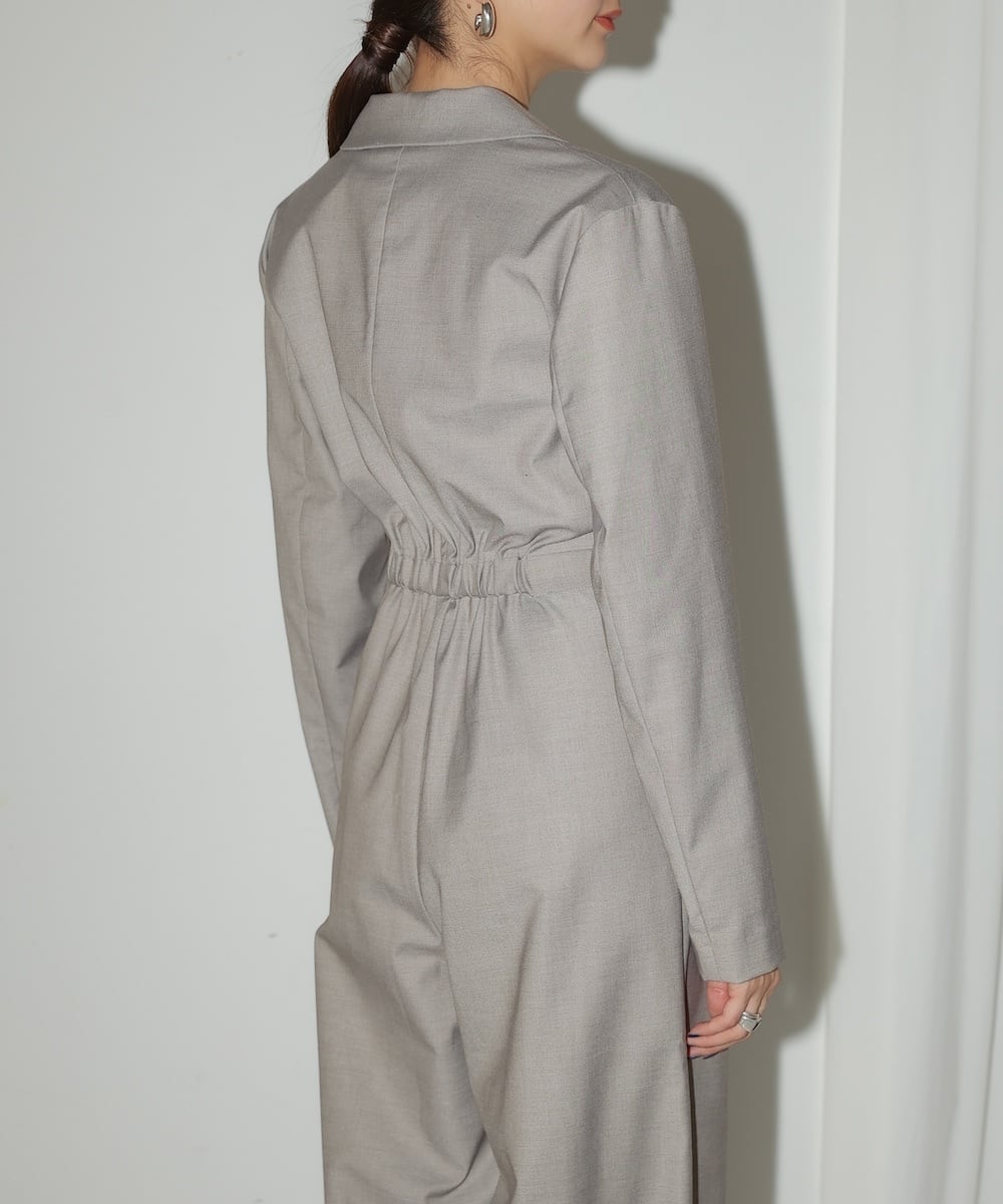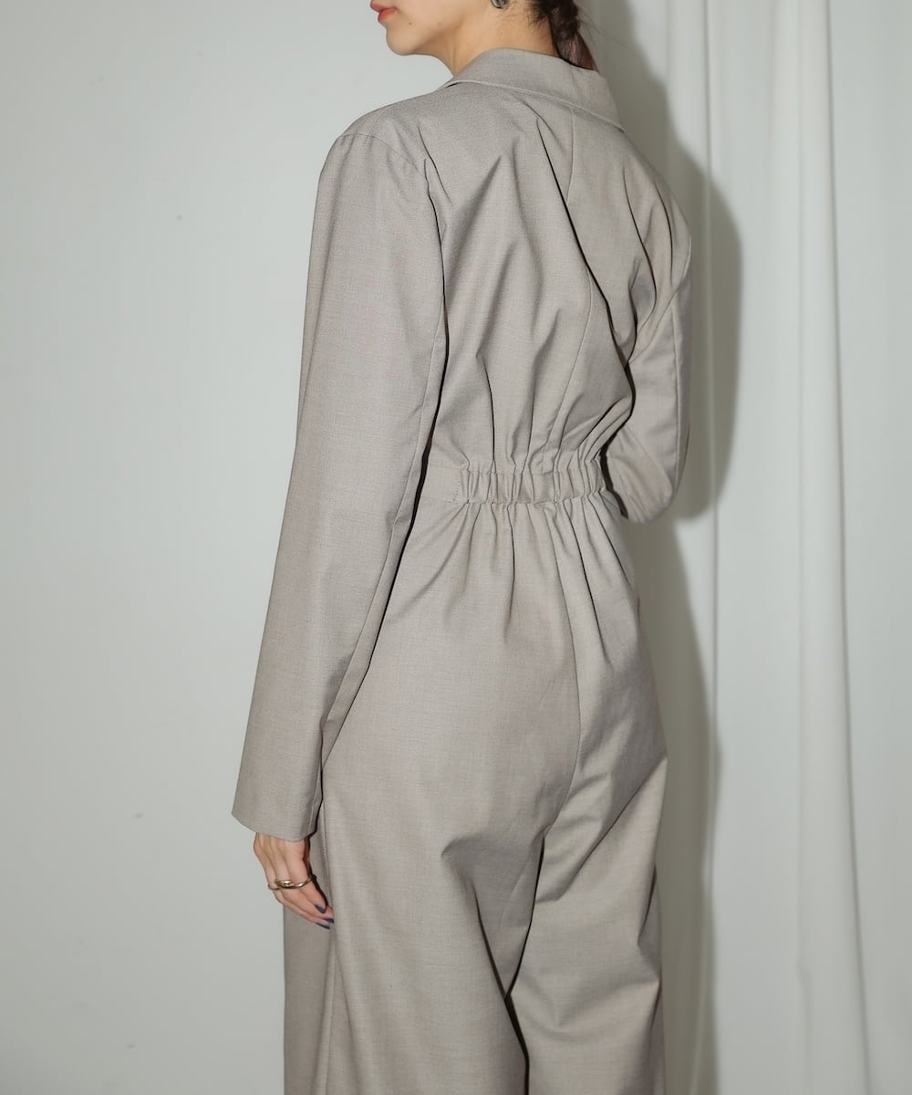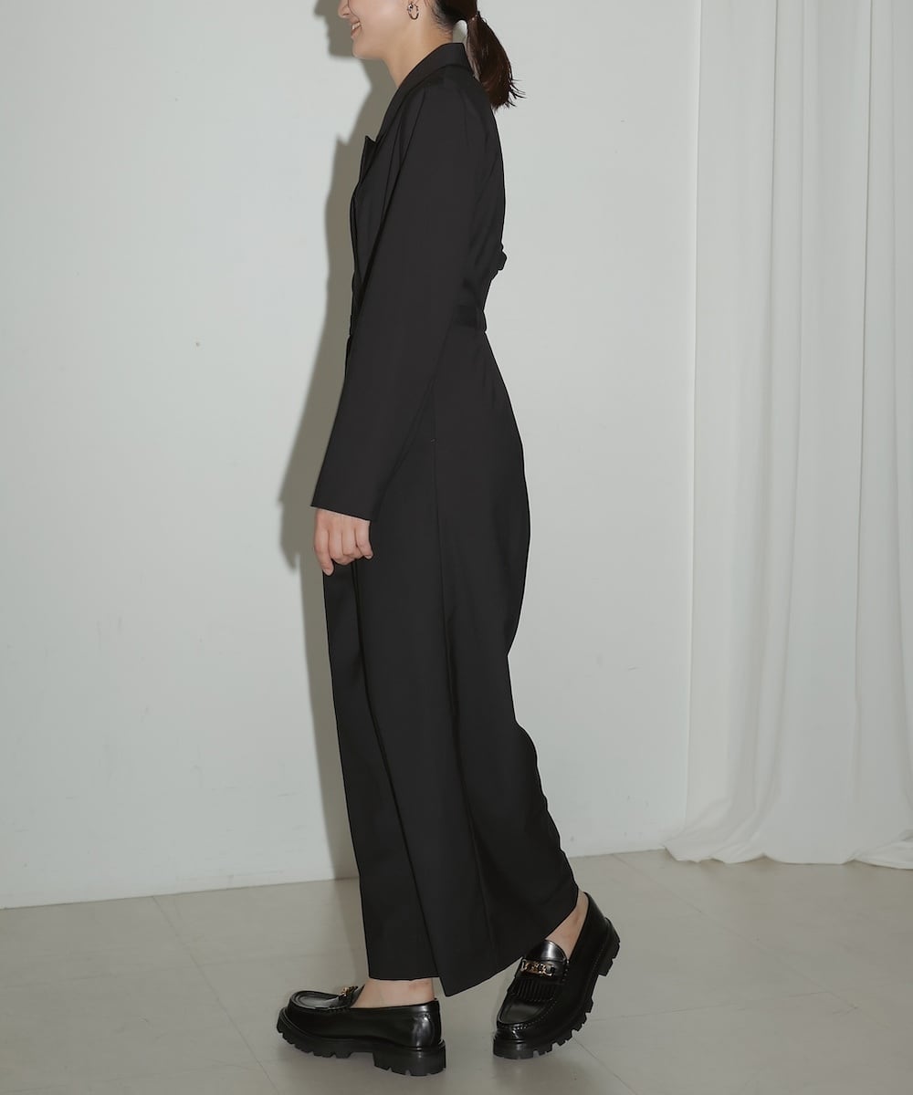 モードな雰囲気楽しめスタイリングの主役となるジャケットロンパース。ウエストはやや高めの位置で設定しているので足長効果満載です。OFFの日はもちろん、かちっとさせたいパーティーやお食事のシーンにも最適です!