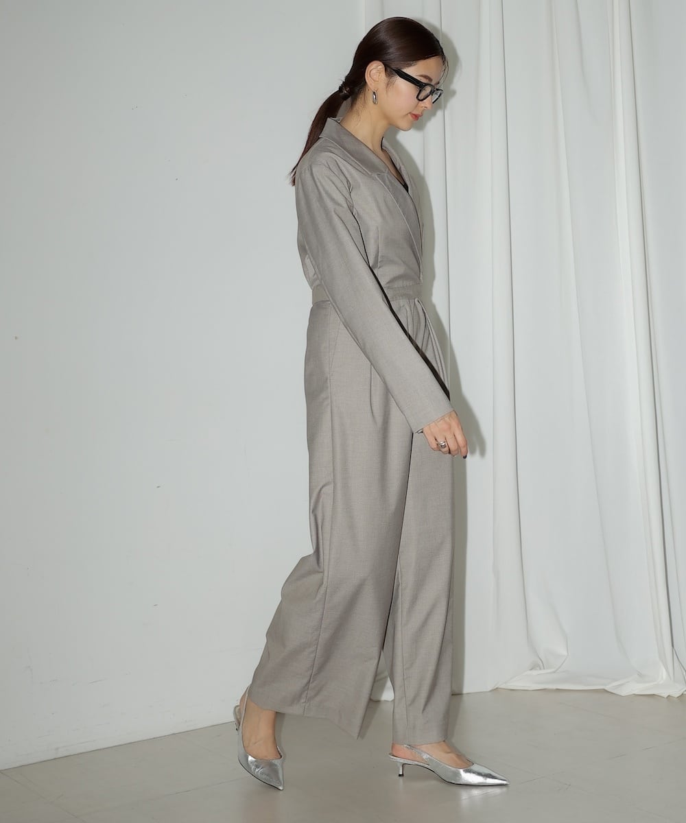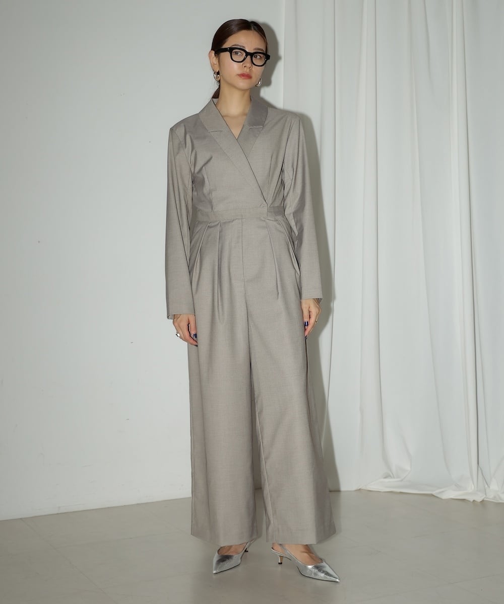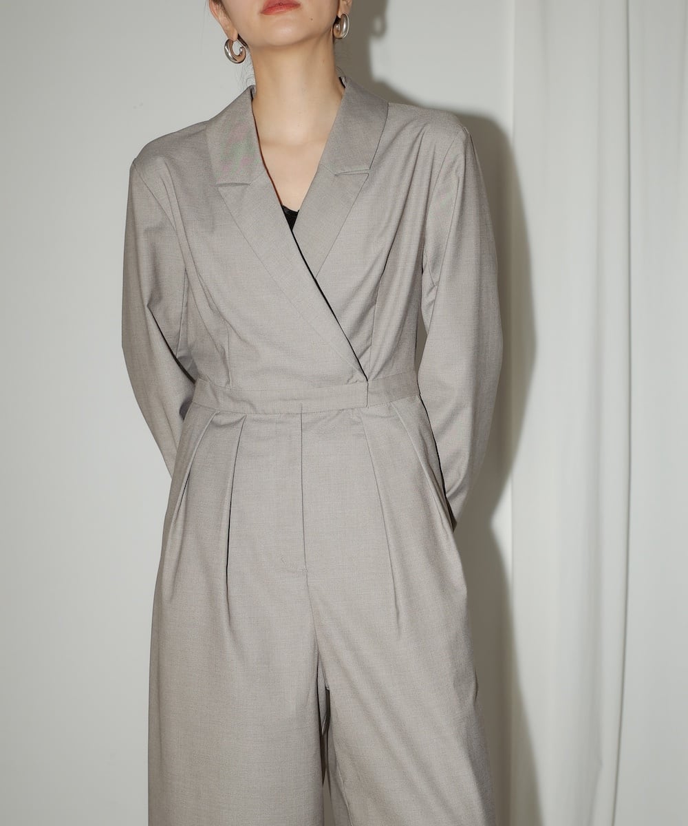 モードな雰囲気楽しめスタイリングの主役となるジャケットロンパース。ウエストはやや高めの位置で設定しているので足長効果満載です。OFFの日はもちろん、かちっとさせたいパーティーやお食事のシーンにも最適です!
