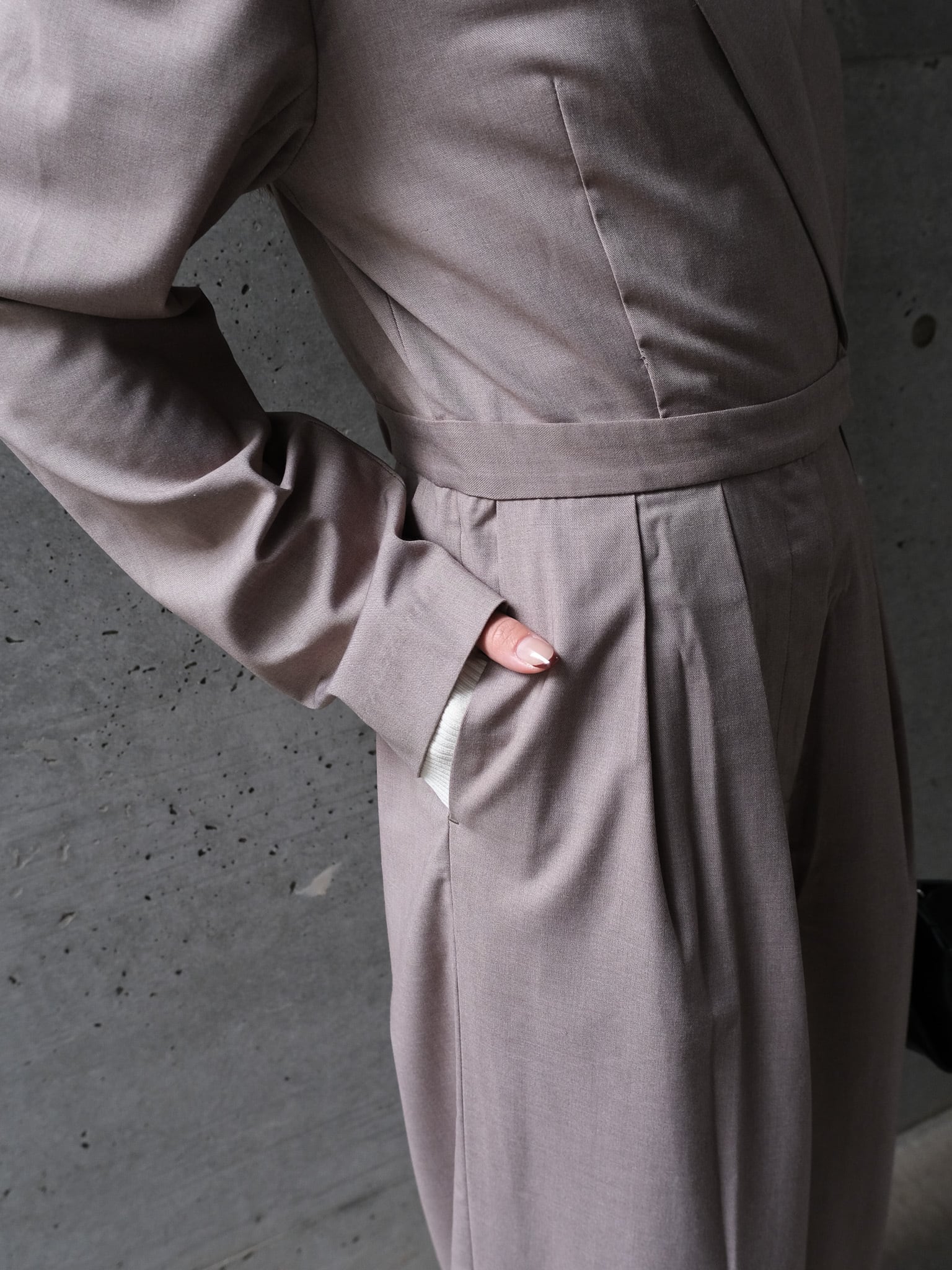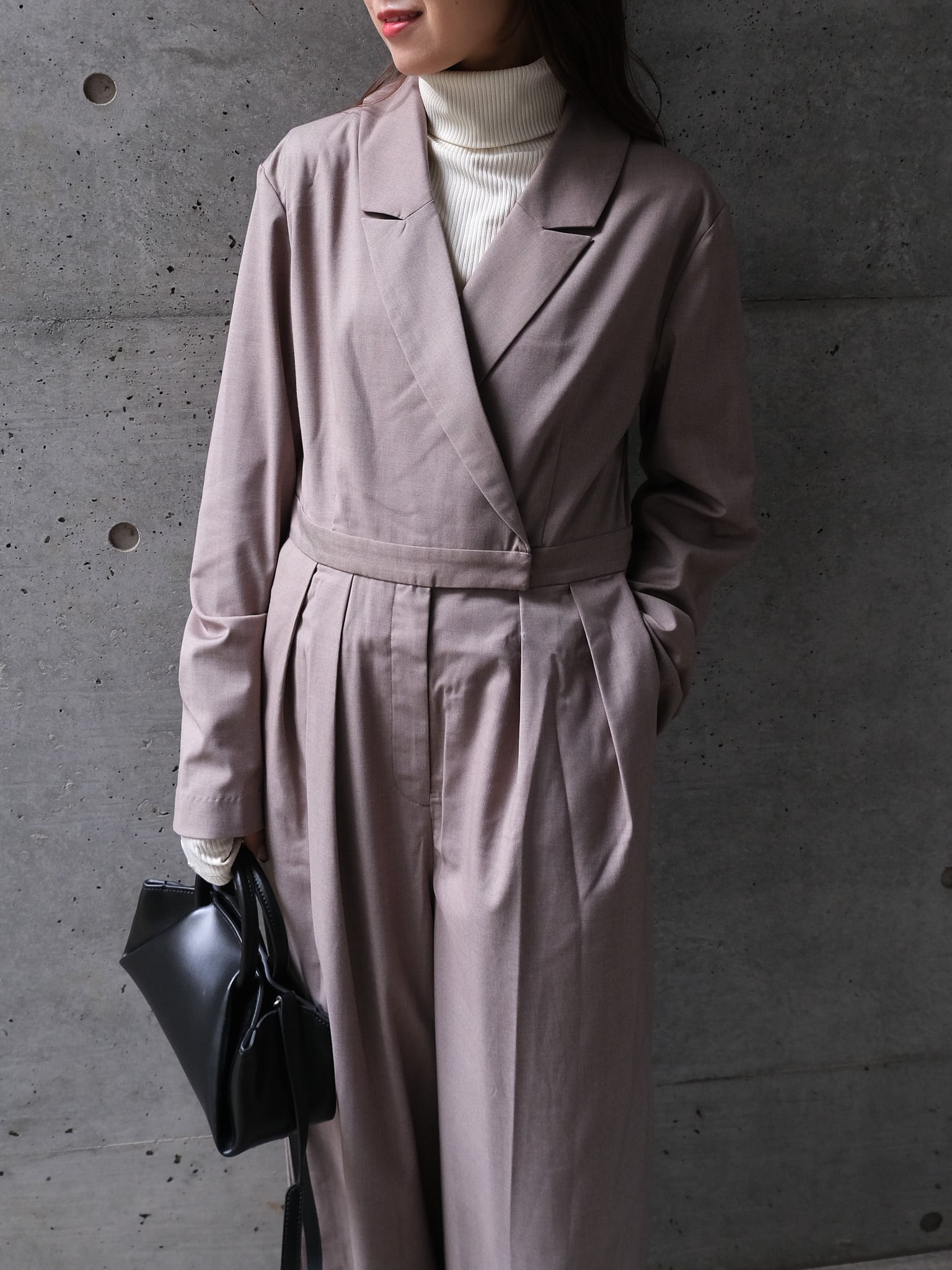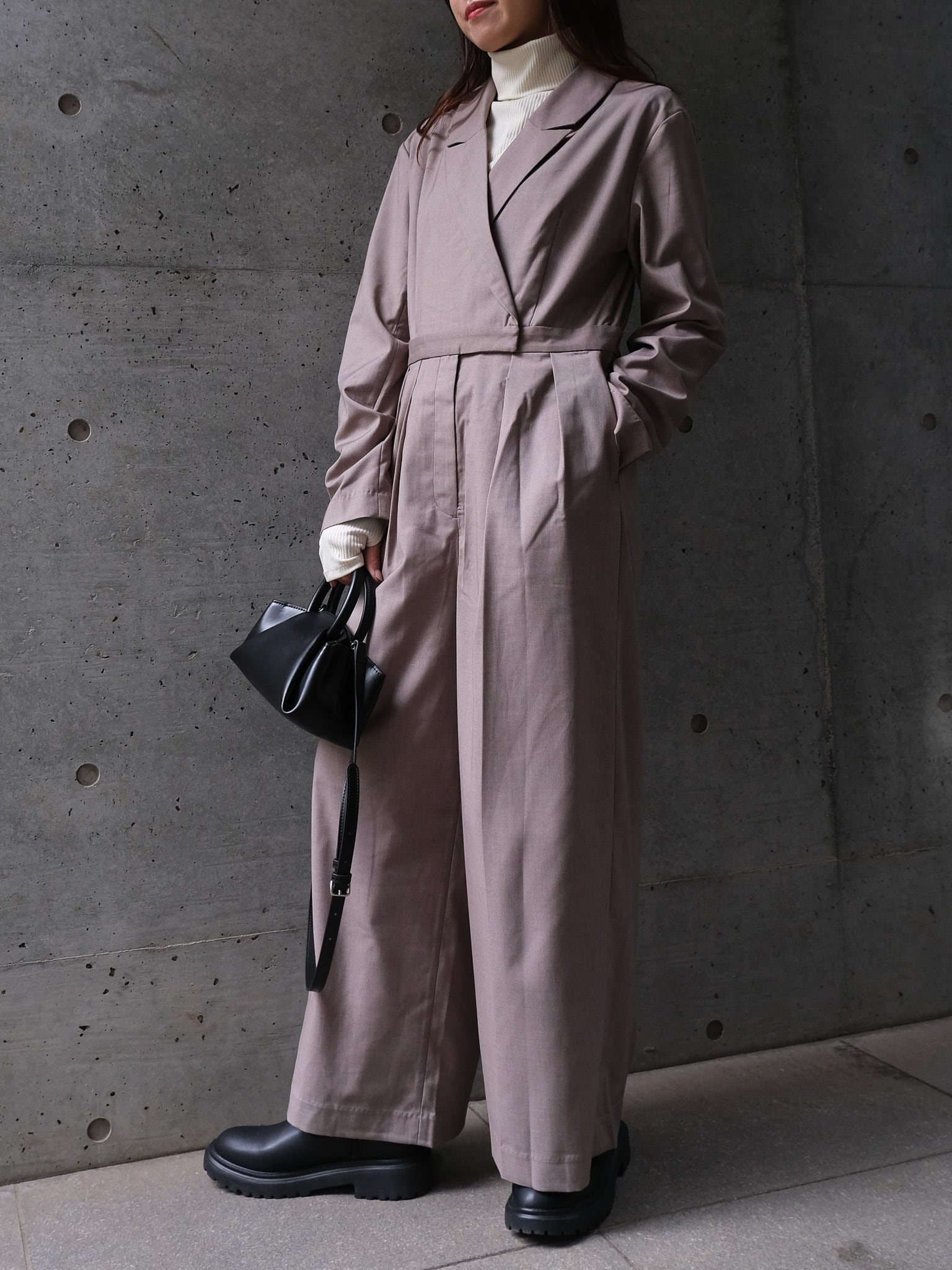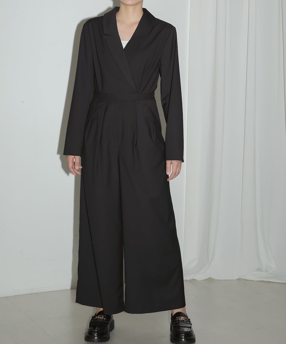 モードな雰囲気楽しめスタイリングの主役となるジャケットロンパース。ウエストはやや高めの位置で設定しているので足長効果満載です。OFFの日はもちろん、かちっとさせたいパーティーやお食事のシーンにも最適です!