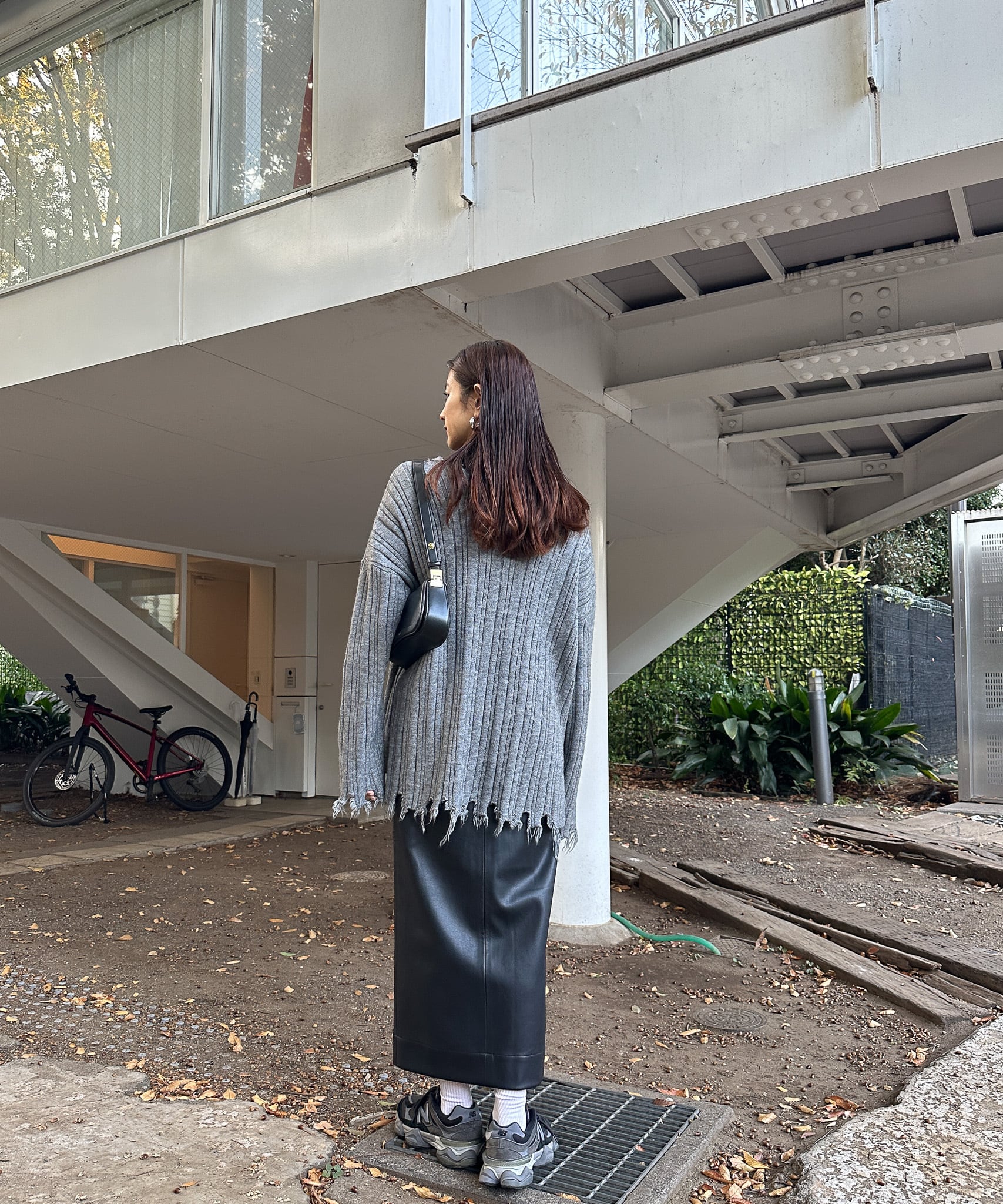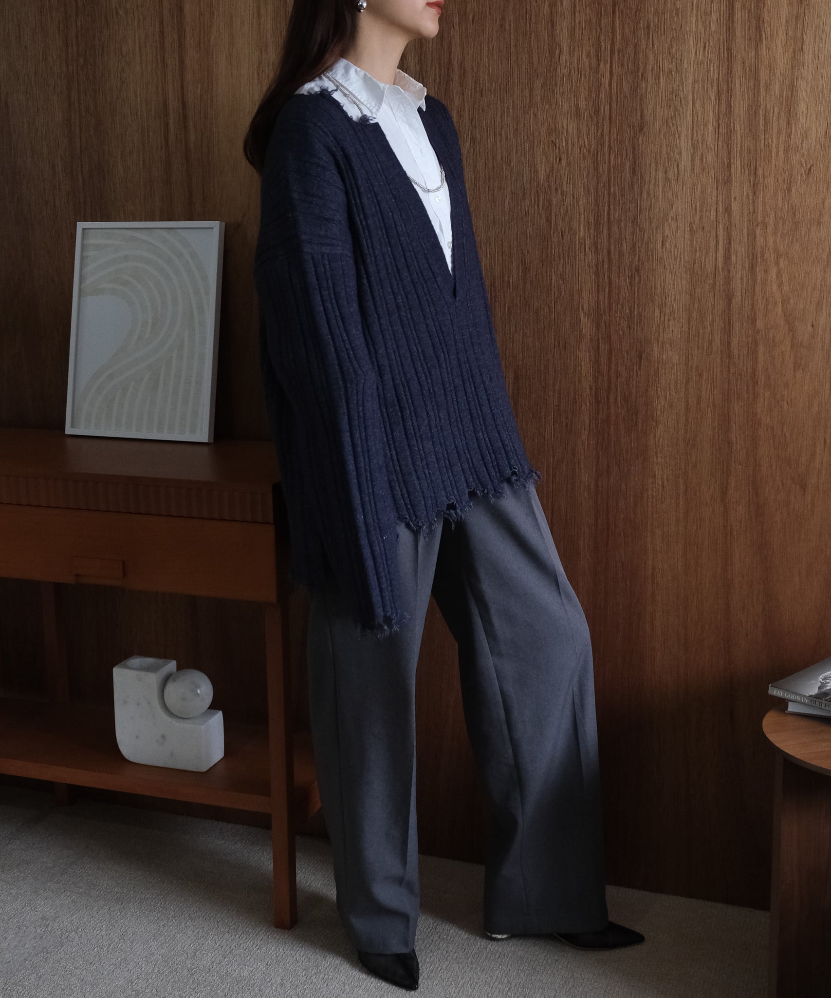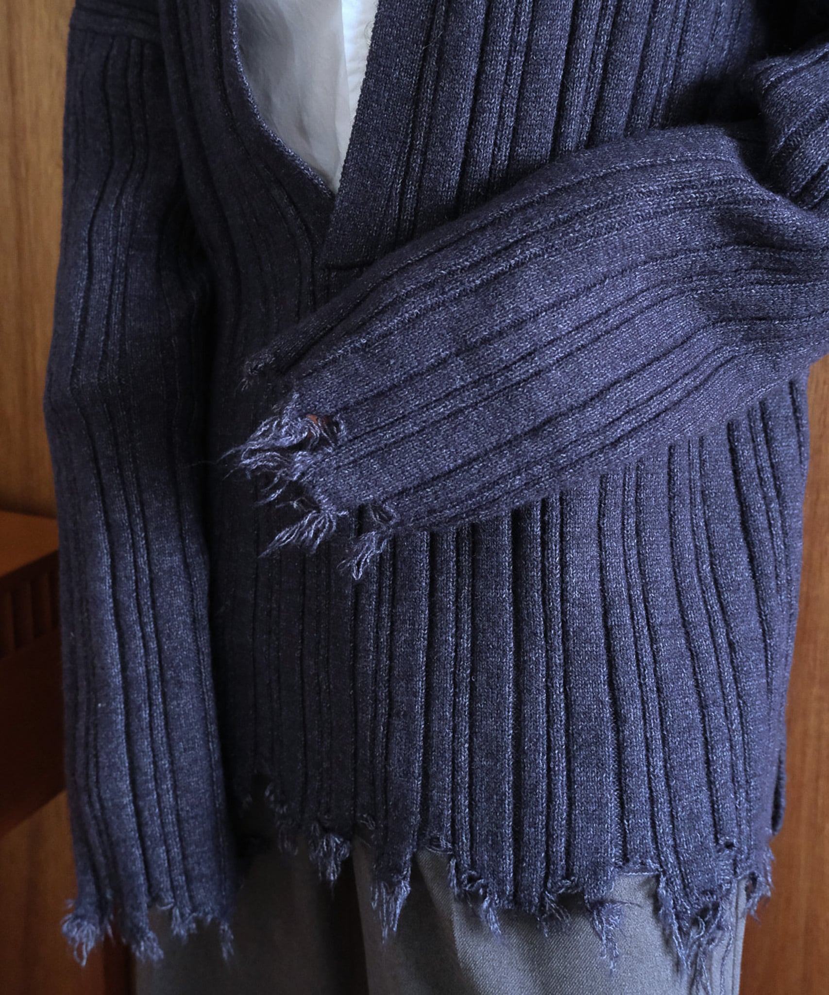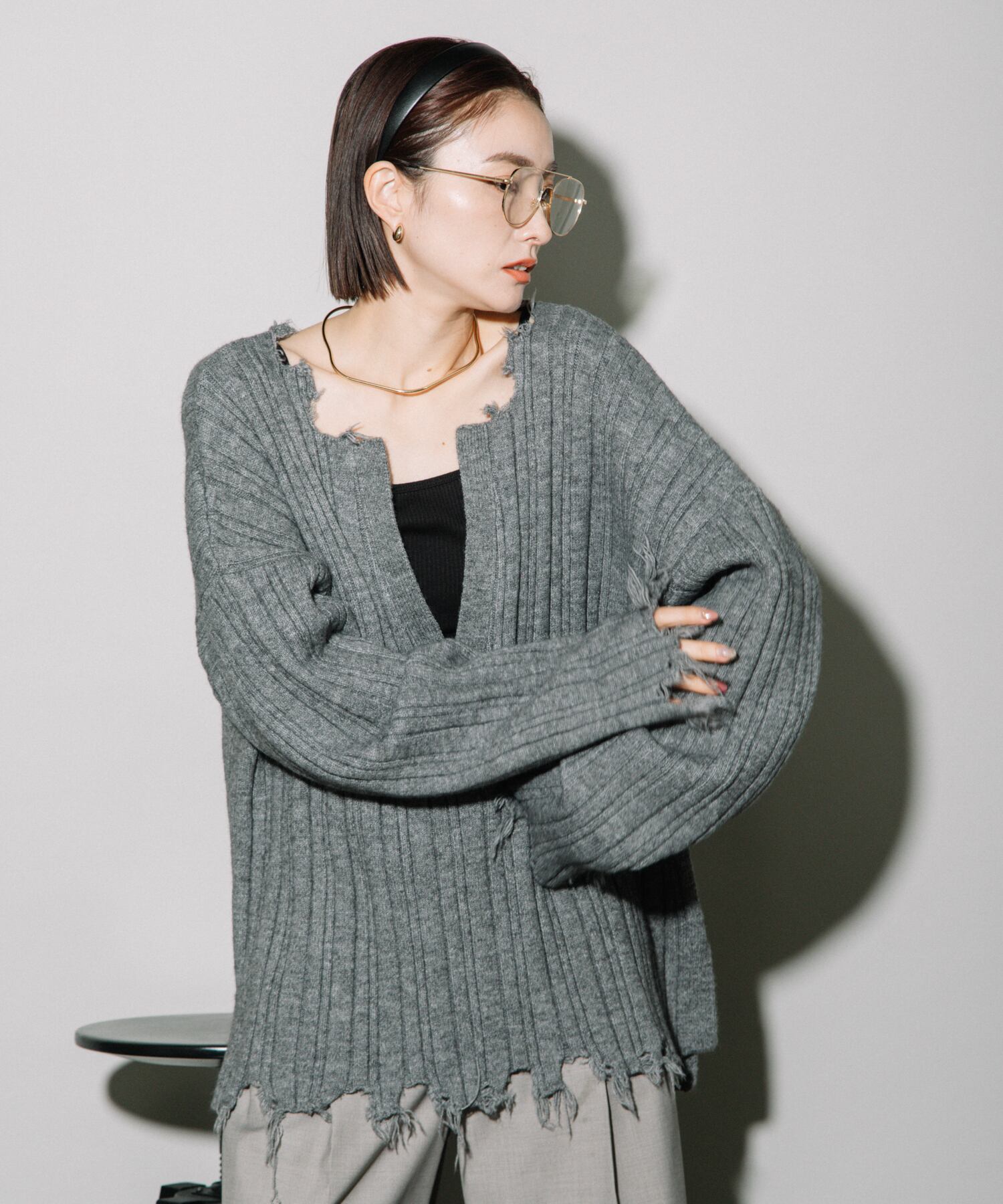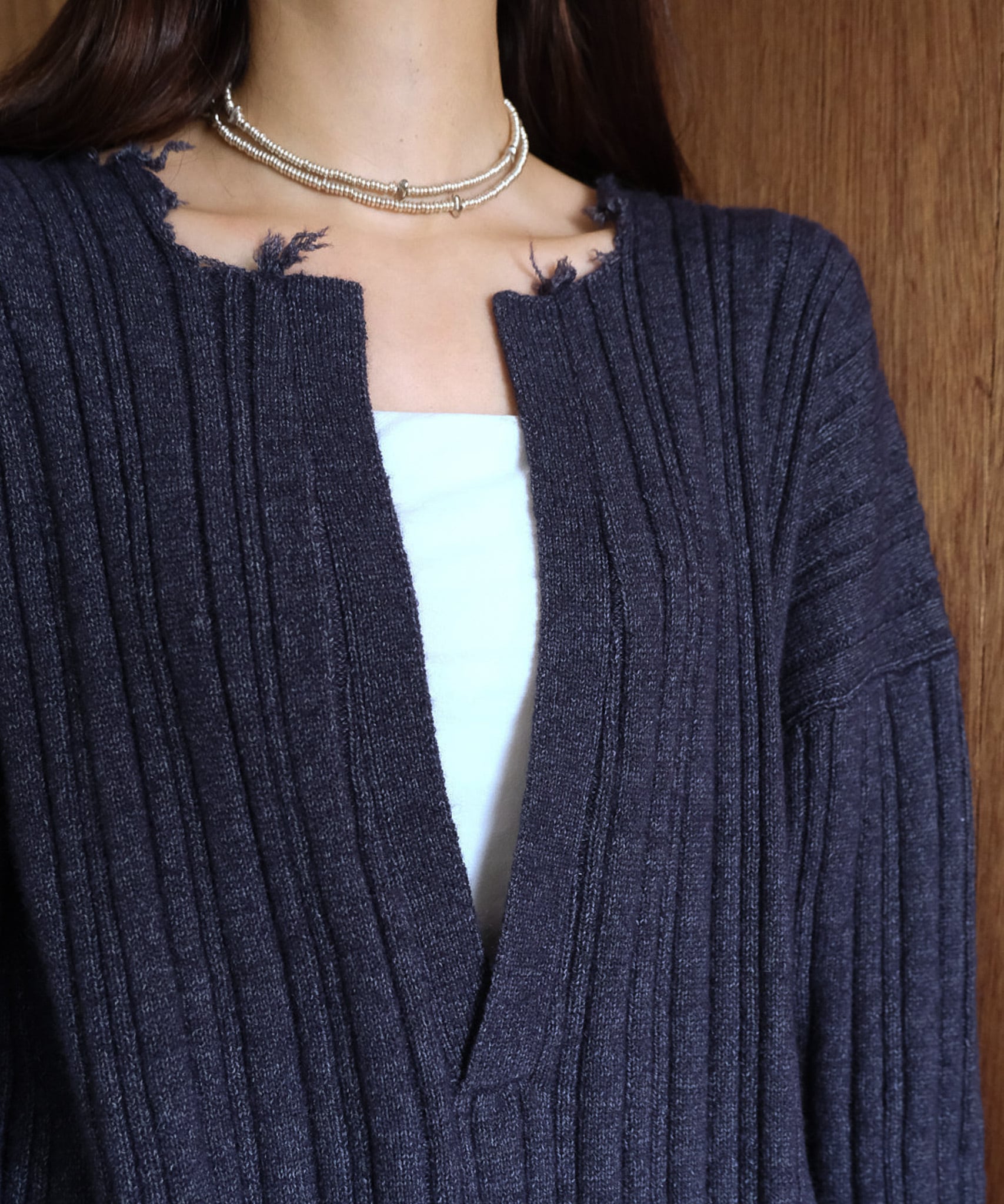 \手洗い可能/VINTAGE感楽しめる大胆なダメージデザインが特徴のニット。裾は伸ばしても折り返しても2WAYでお楽しみいただけます。ちくちくとしない着心地で旬なコーデが完成します。丈感は長めなので、気になる腰回りをすっぽりとカバー。インナー次第でロングシーズン着回し可能なアイテムです。