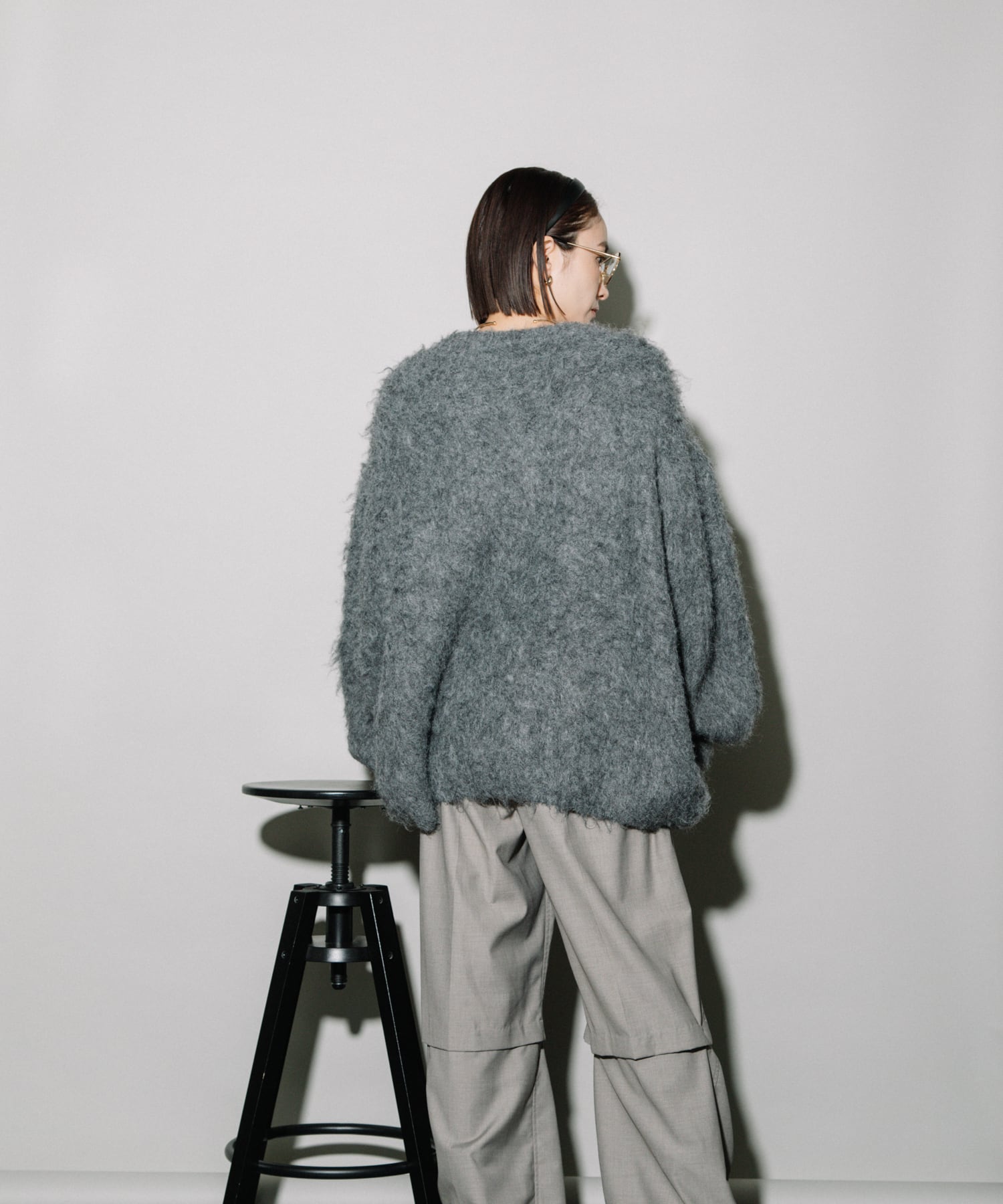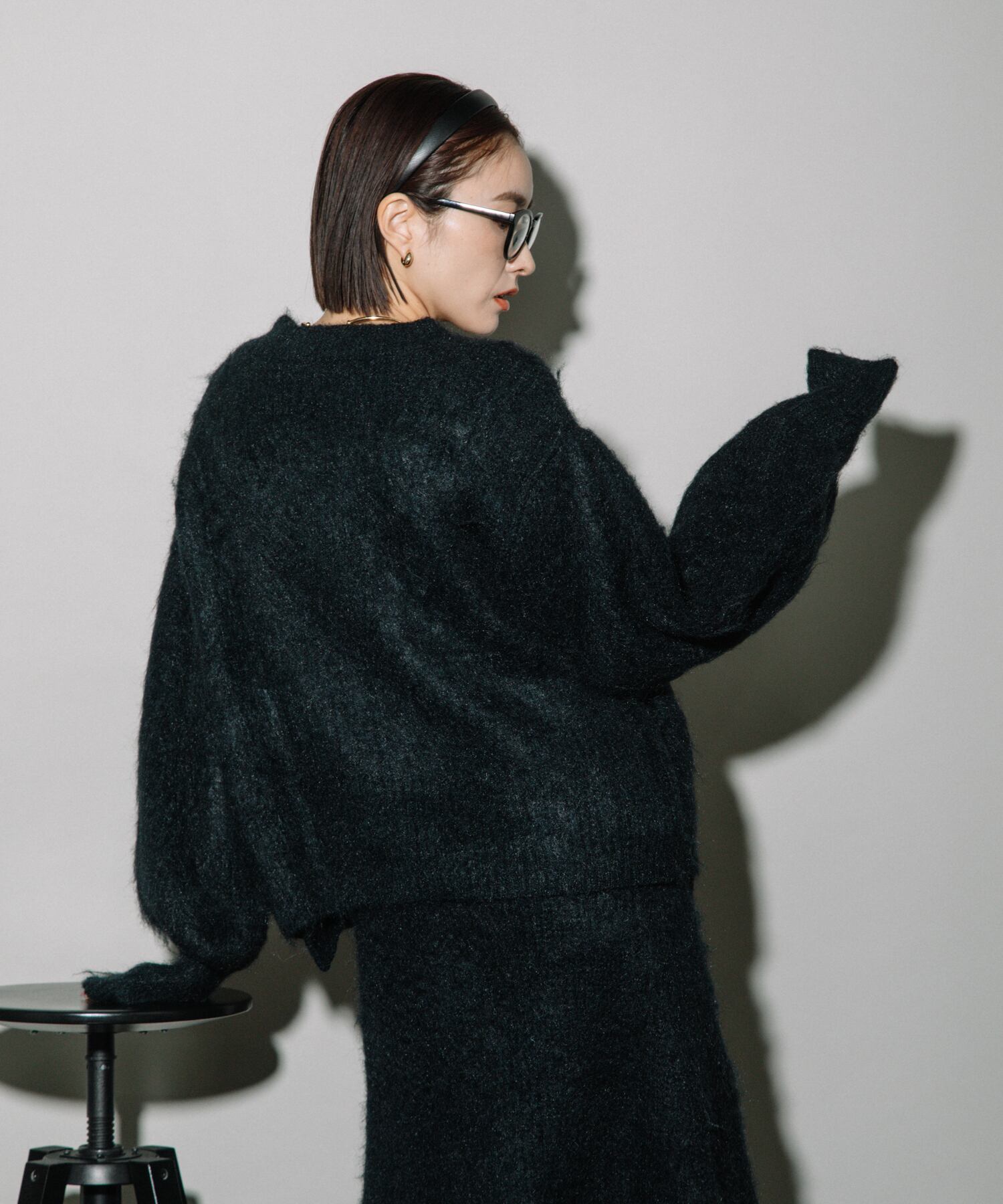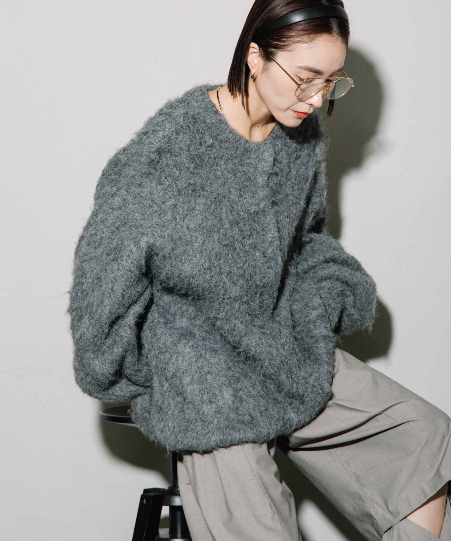 フェザーニット素材が得意な骨格ウェーブさん。デコルテ周りが寂しくならないようにハイネックのインナーと合わせるとよりバランスが出て◎。腰回りまで隠れるサイズ感なのでパンツスタイリングにもハマります。足元に重心が来ないように、靴はヒールのあるものや足首が見えるようなものを合わせるとさらにこなれ感も。
