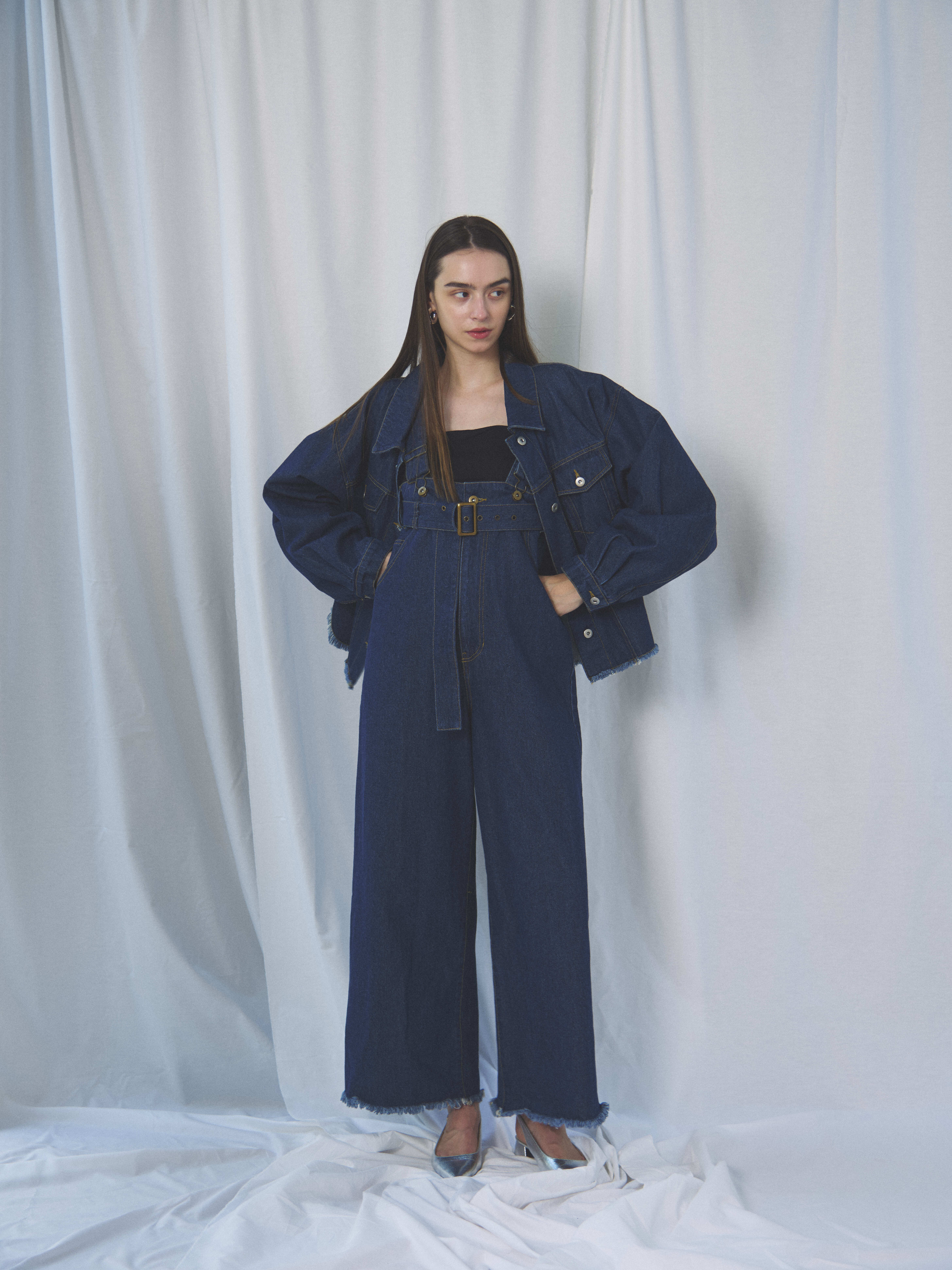 DENIM OVERALLS(デニムオーバーオール) 【55513037】との相性がよく、セットアップでのスタイリングが可能です。綺麗めにパンツと合わせても、ボリュームのあるスカートと合わせても、程よい丈感で足長効果があります。