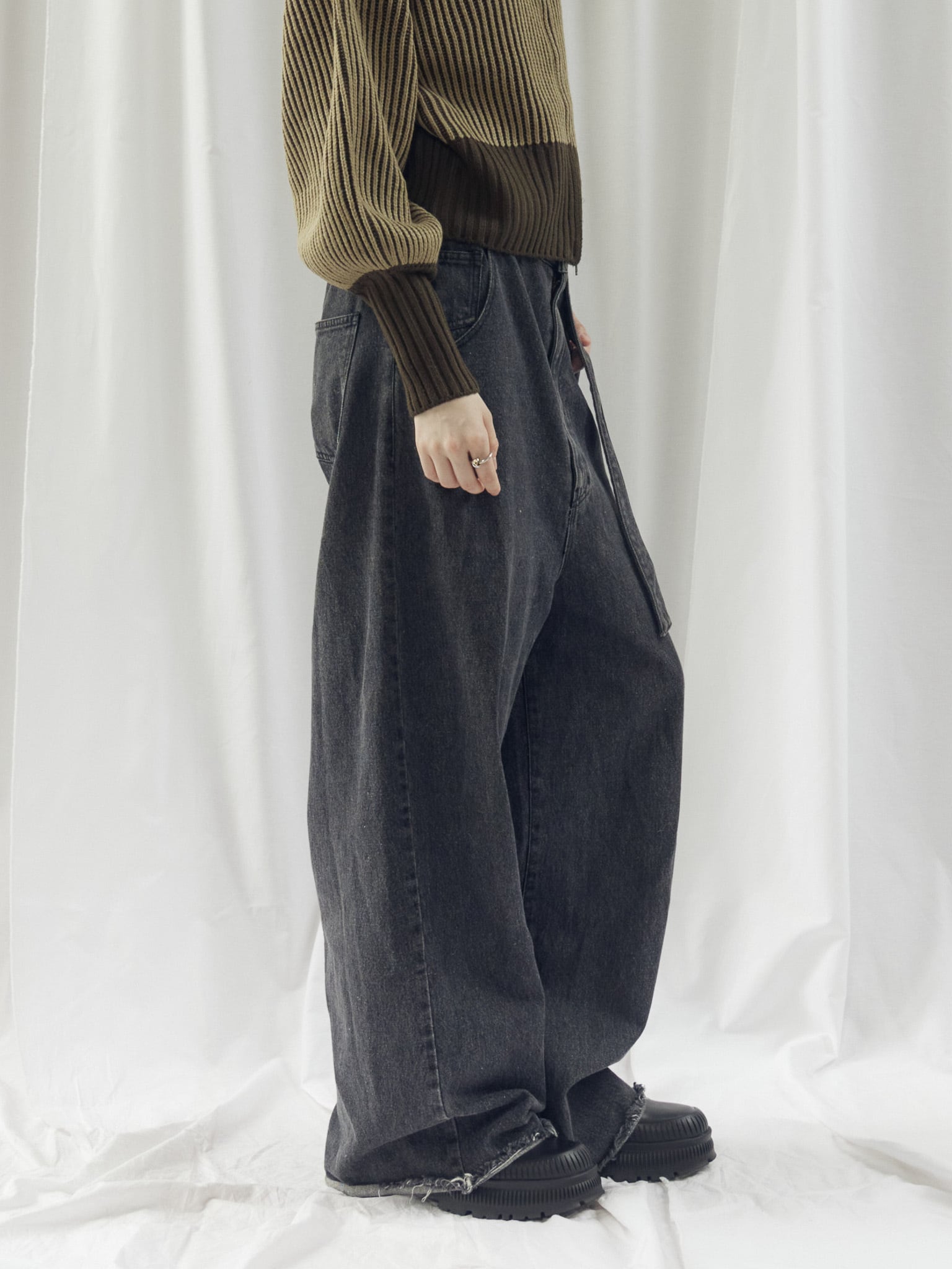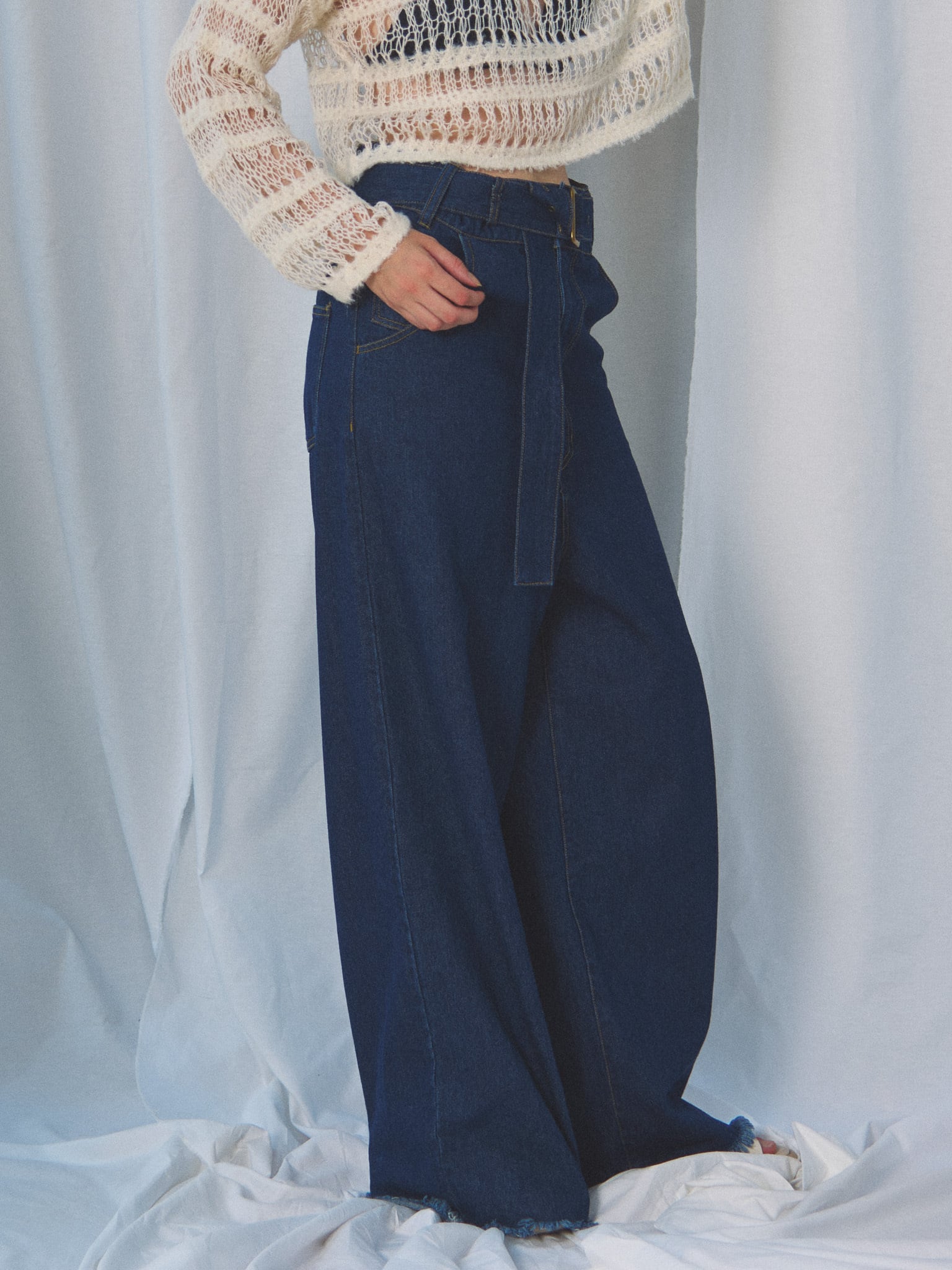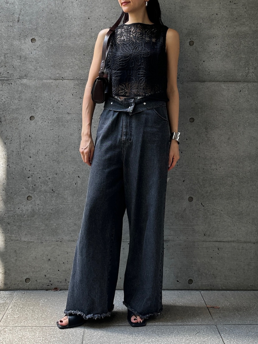 FRINGE DENIM JACKET(フリンジデニムジャケット)【5513027】とのセットアップスタイルがおすすめです。ボトムスにボリュームがあるので、トップスはコンパクトにすると着膨れしません。Tシャツ・シアートップス・ブラウス・トレーナー・セーターなど幅広いアイテムとのコーディネートをお楽しみください。