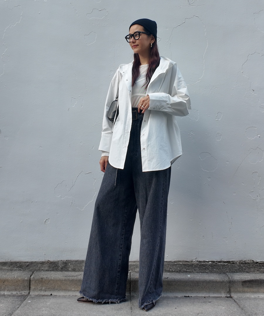 骨格ナチュラルの方はワイドパンツが得意!四角い腰回りをきれいにカバーしてくれます。ビッグシルエットなトップスと合わせて、とことんゆるっとカジュアルなスタイリングもこなれ感がでて◎